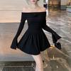 Vestido elegante de manga acampanada de alta gama, ligero y de verano para mujer, holgado y adelgazante, de longitud media, 2023