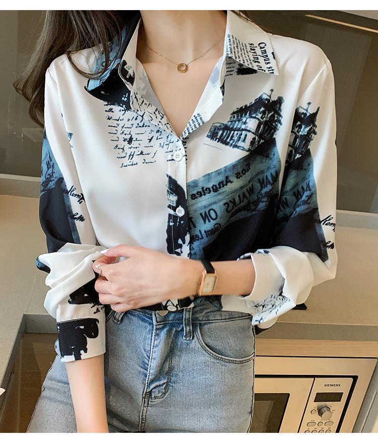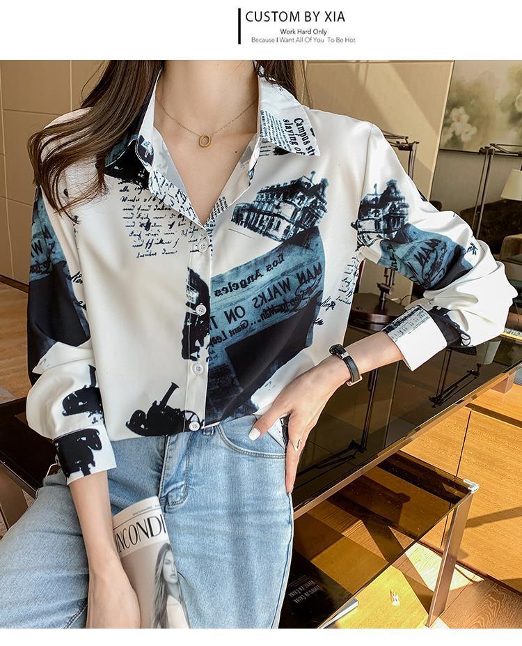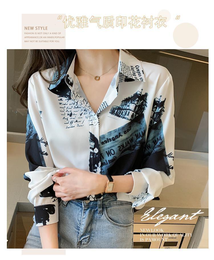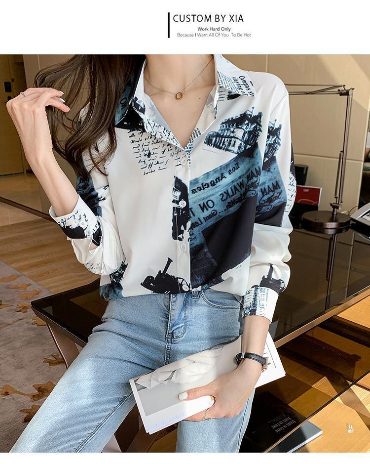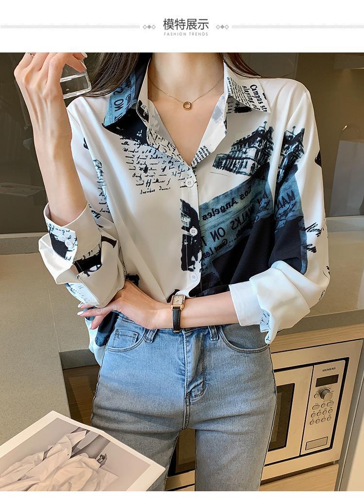 Camisa de gasa de manga larga estilo occidental con contraste de colores y estilo retro de Hong Kong para mujer, primavera y otoño de 2023, diseño con flores de nicho