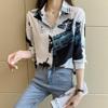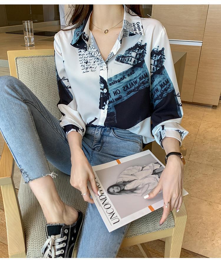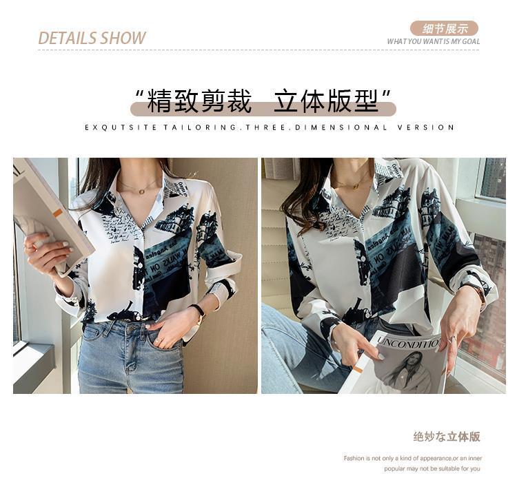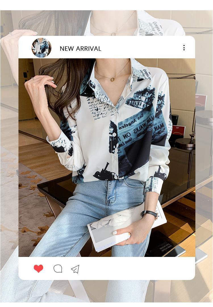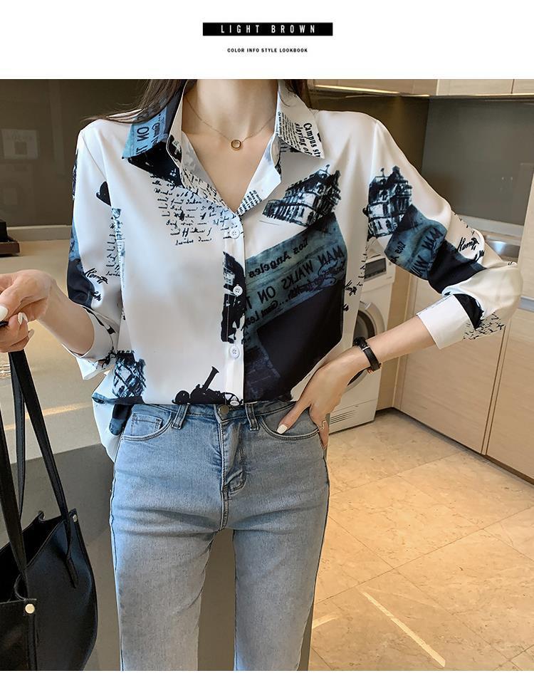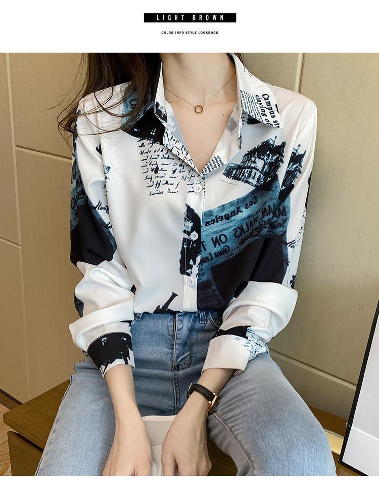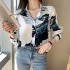Camisa de gasa de manga larga estilo occidental con contraste de colores y estilo retro de Hong Kong para mujer, primavera y otoño de 2023, diseño con flores de nicho