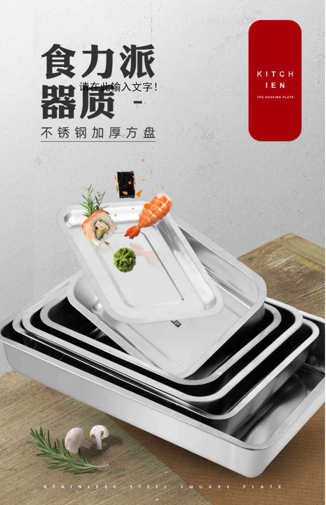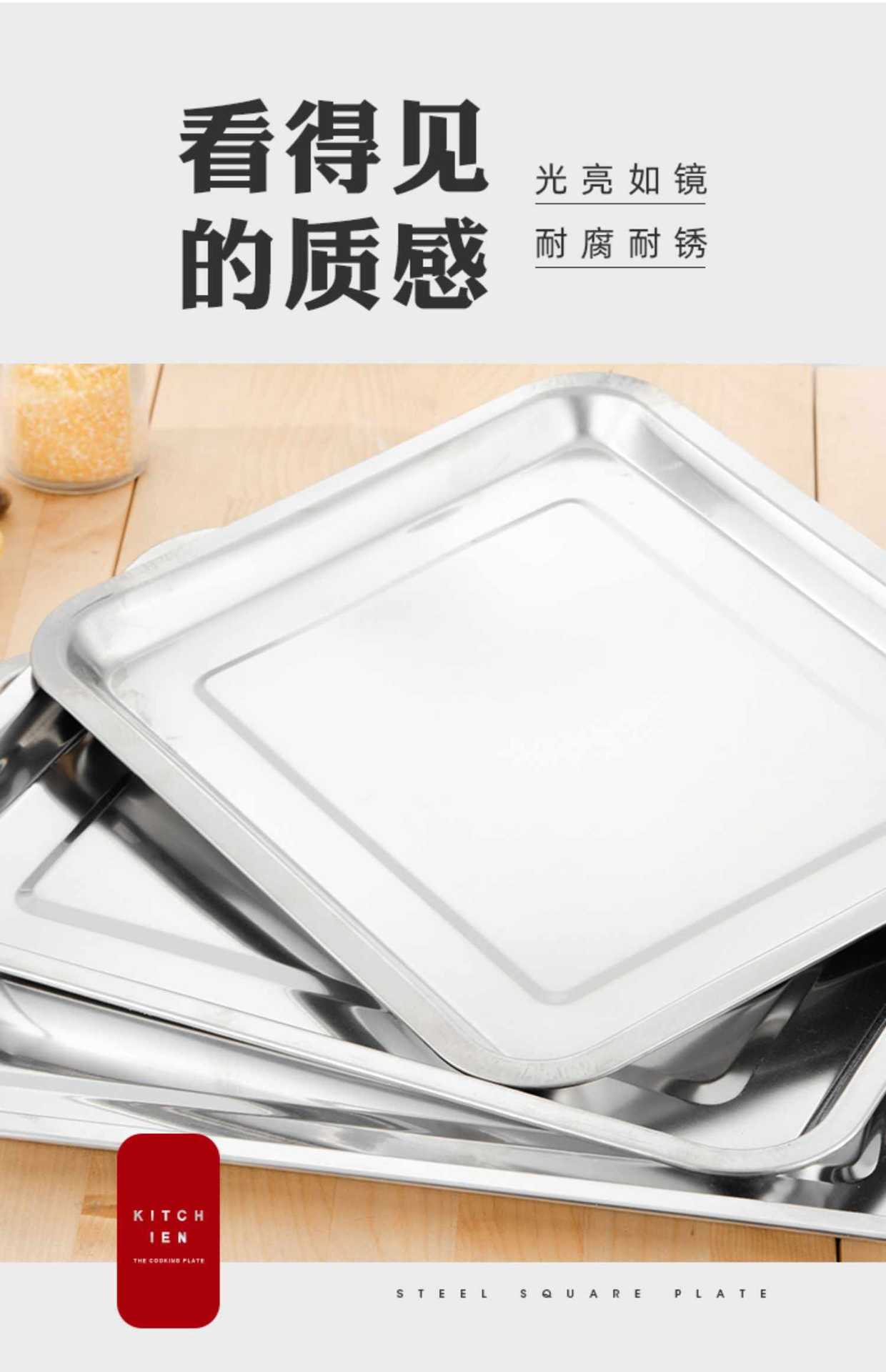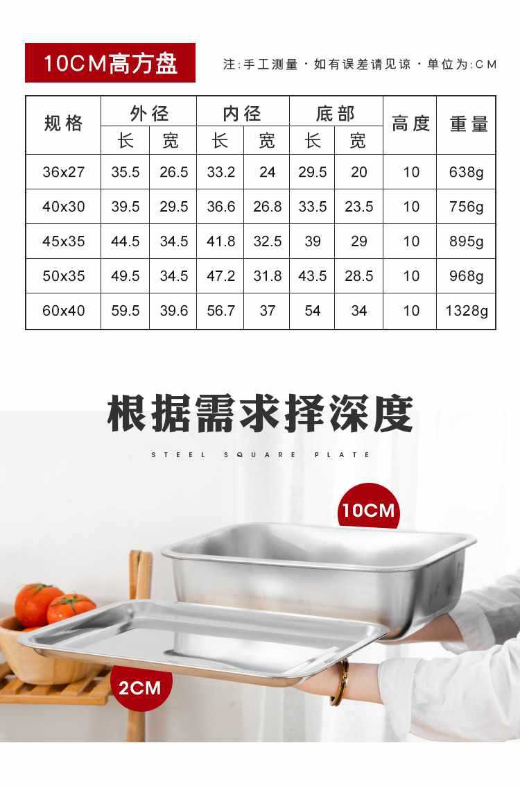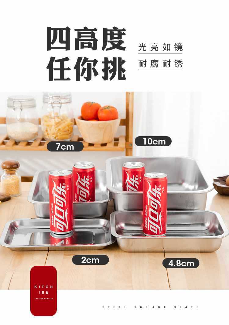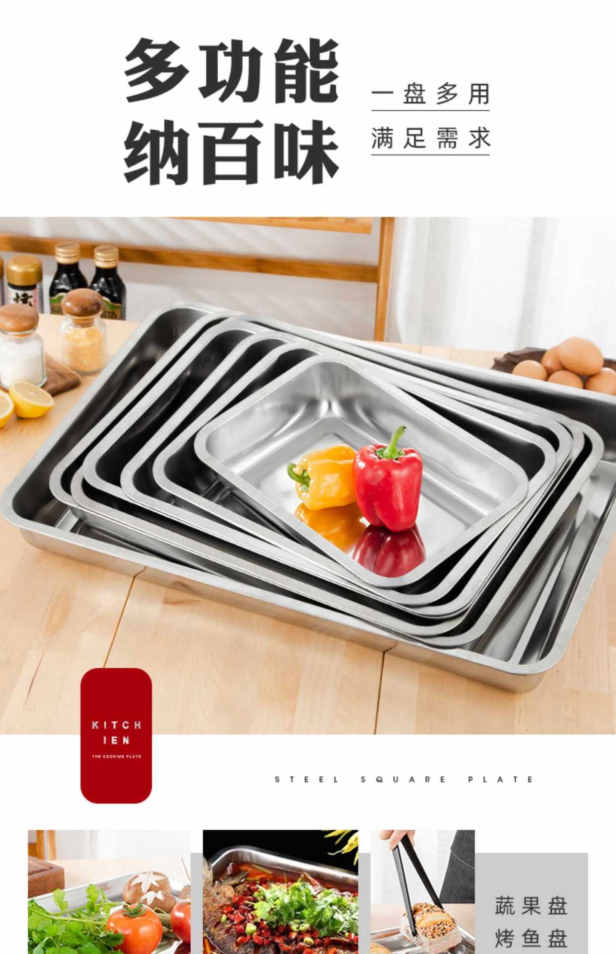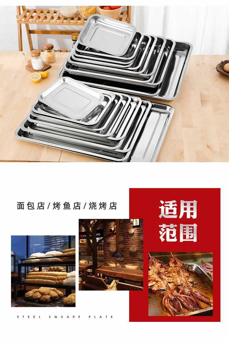 Bandeja de acero inoxidable, plato rectangular para plato frío, plato para pescado a la parrilla, plato de pescado doméstico, plato cuadrado para barbacoa comercial
