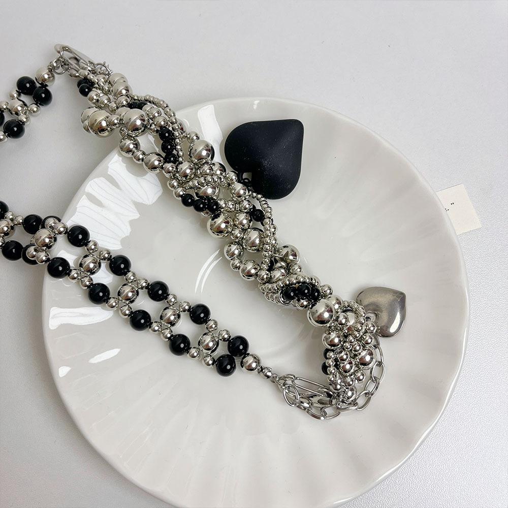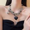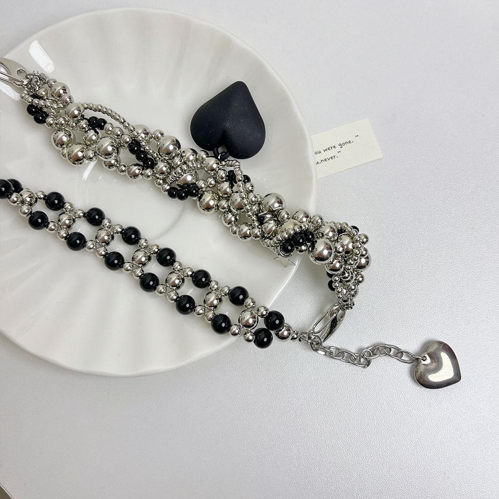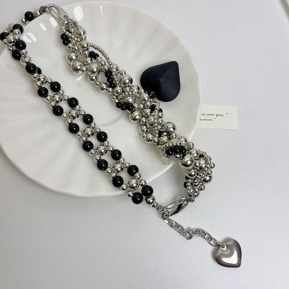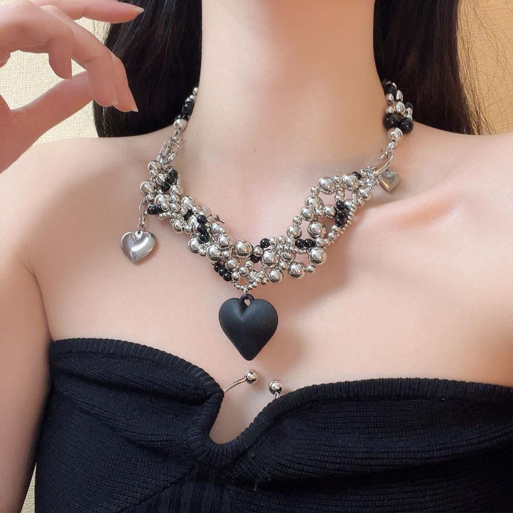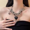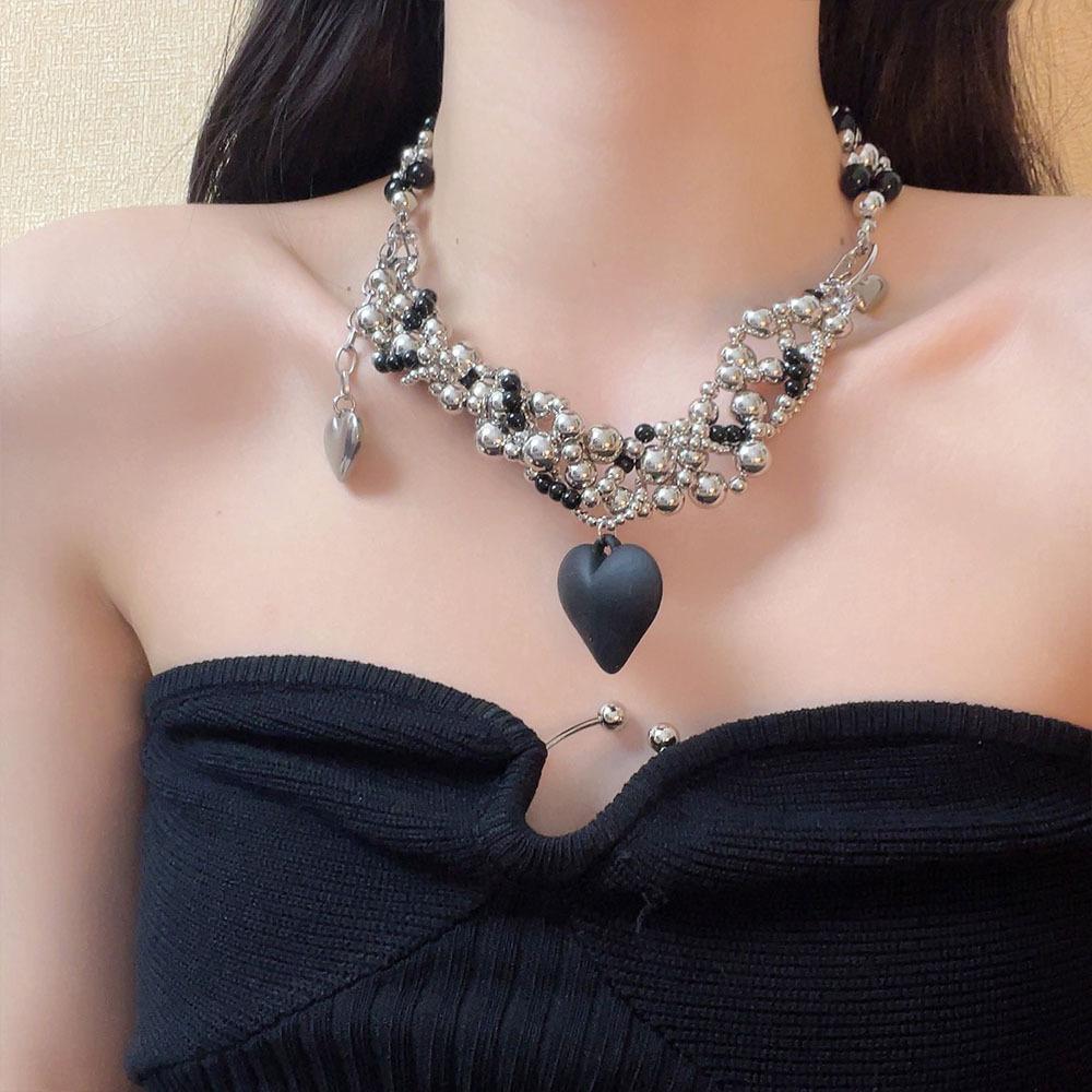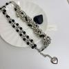 Collar de lujo americano con cuentas de amor negras, resistente, estilo punk, estilo frío, cadena de clavícula retro de alta calidad a la moda.
