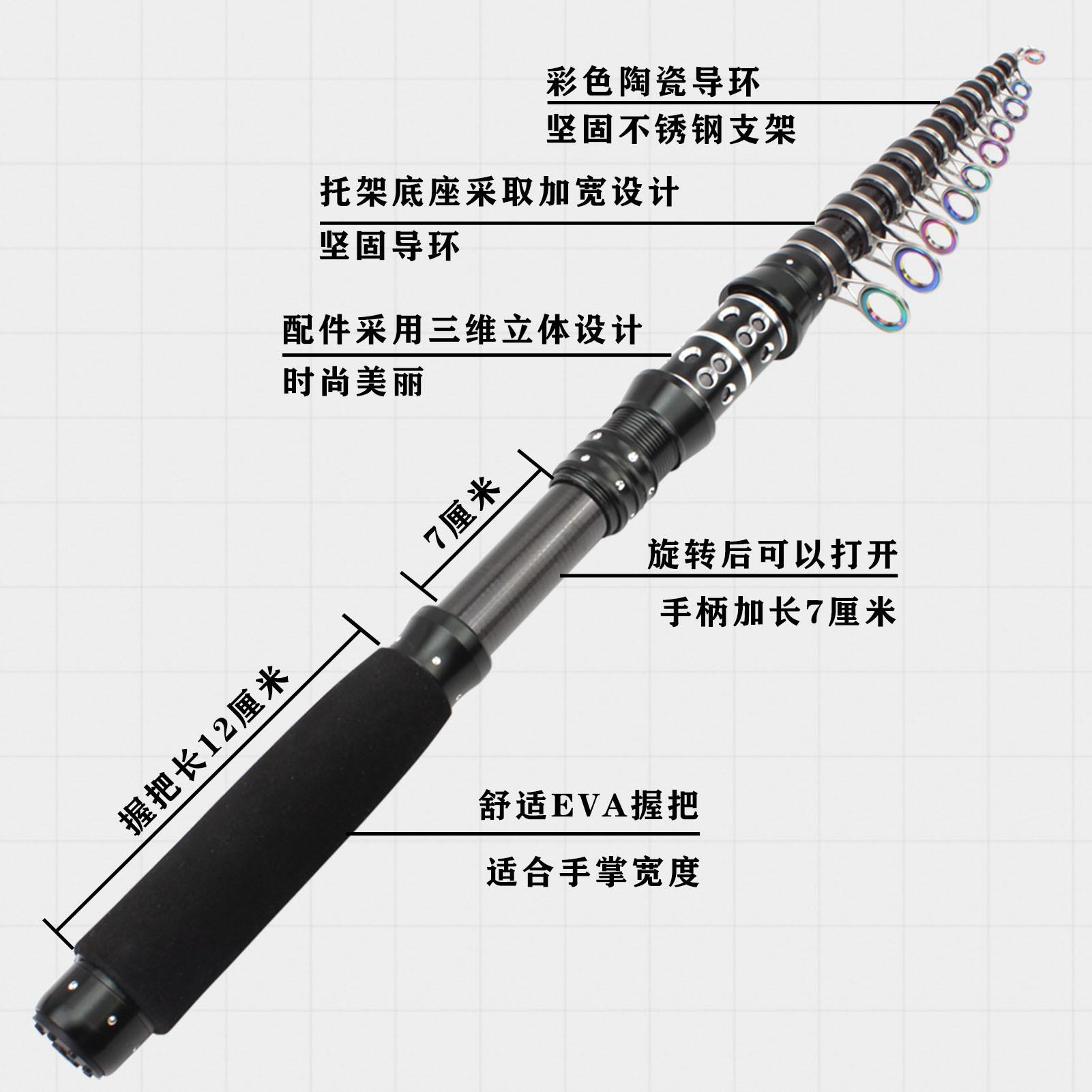 Nueva generación de comercio electrónico de cañas de pescar ultracortas y ultraduras de carbono de sección corta, cañas de mar pequeñas, juego de cañas cortas, caña de bolsillo con anillo guía grande