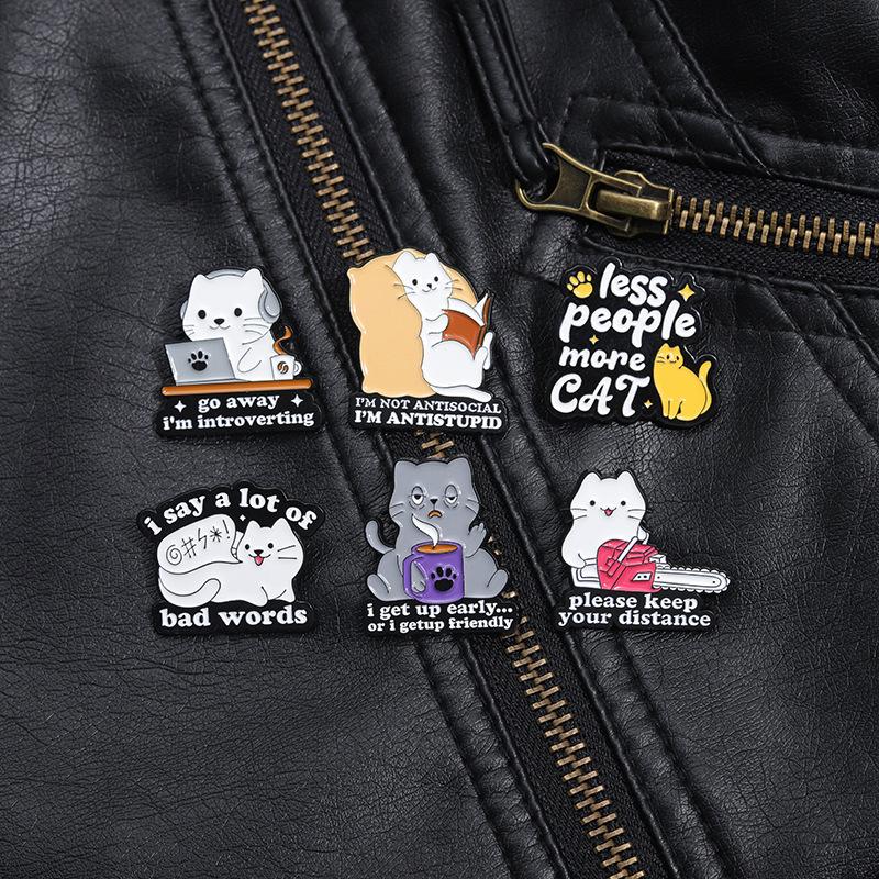 Broche Divertido y Gracioso Serie Animales Dibujo Animado Lindo Forma de Gato Chic Gama Alta Insignia Fija Decoración