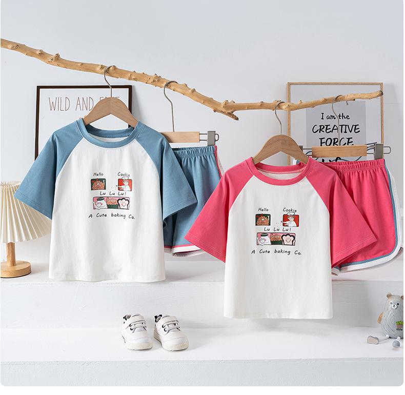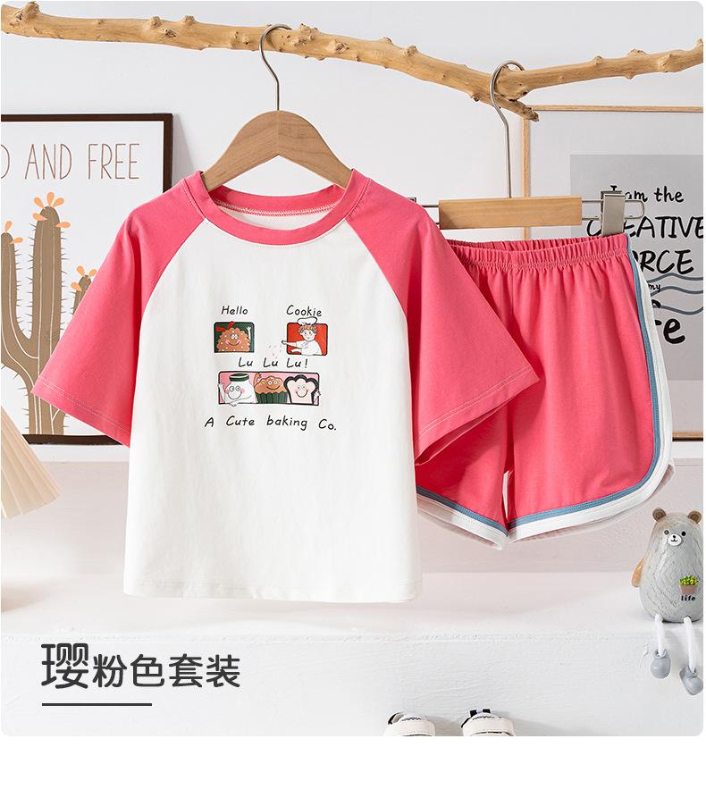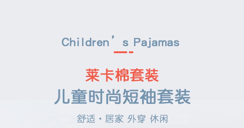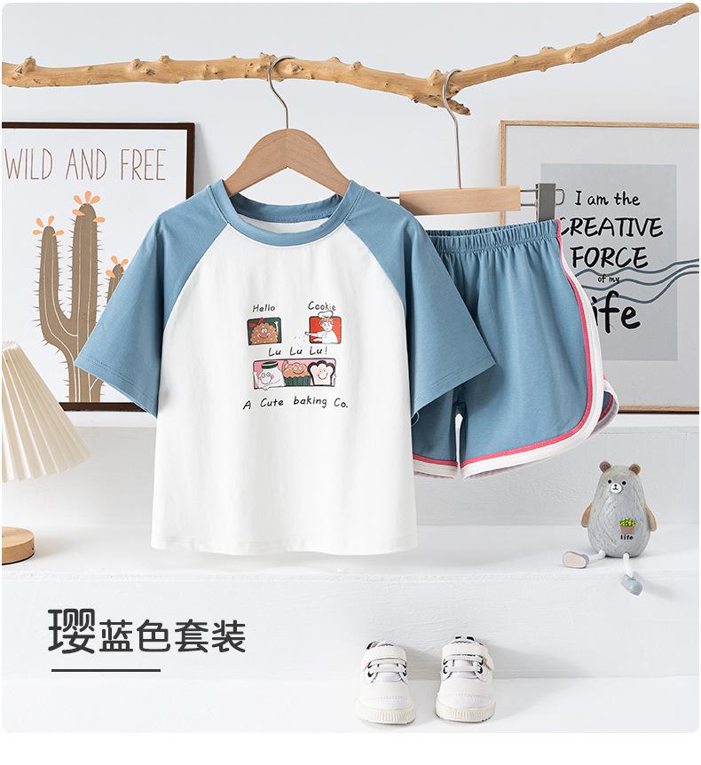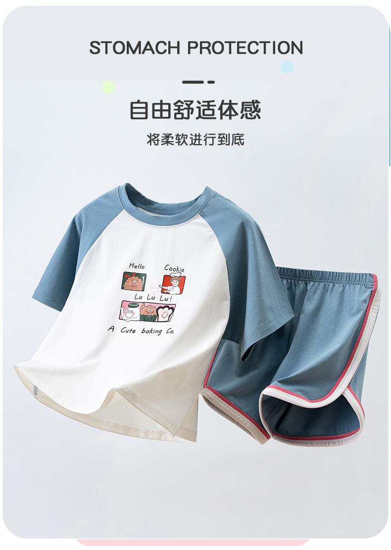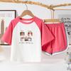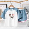 Conjunto de Verano Delgado Casual de Manga Corta y Shorts para Niños y Niñas, Pijama de Algodón Lycra con Dibujos Animados y Contraste de Color para el Hogar