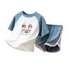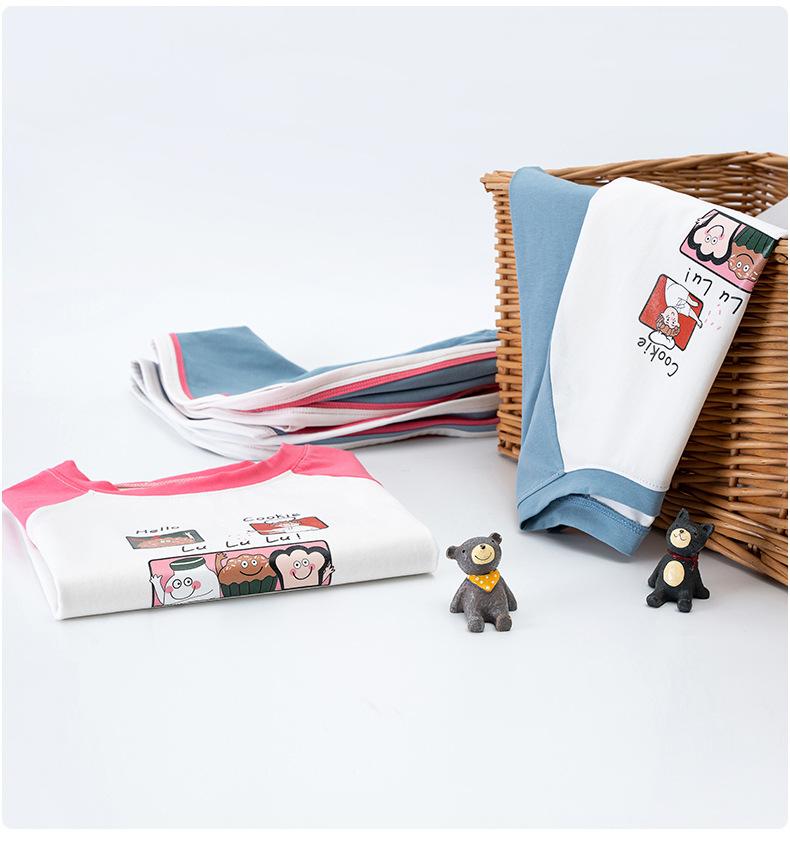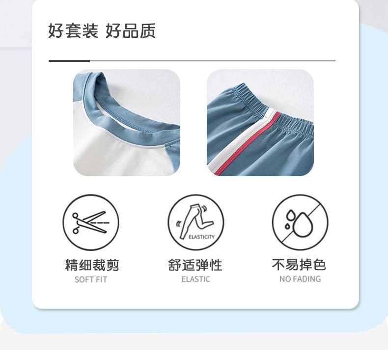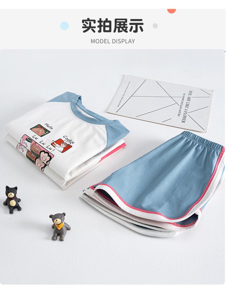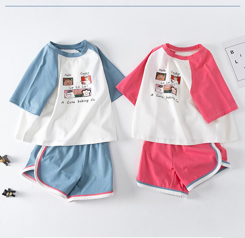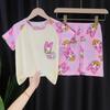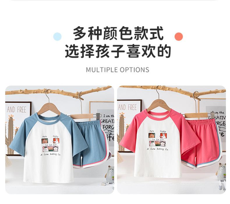 Conjunto de Verano Delgado Casual de Manga Corta y Shorts para Niños y Niñas, Pijama de Algodón Lycra con Dibujos Animados y Contraste de Color para el Hogar