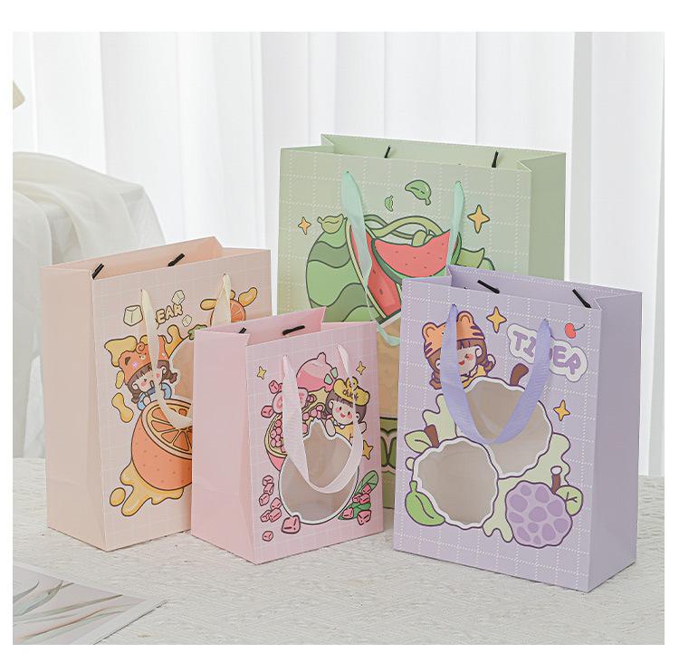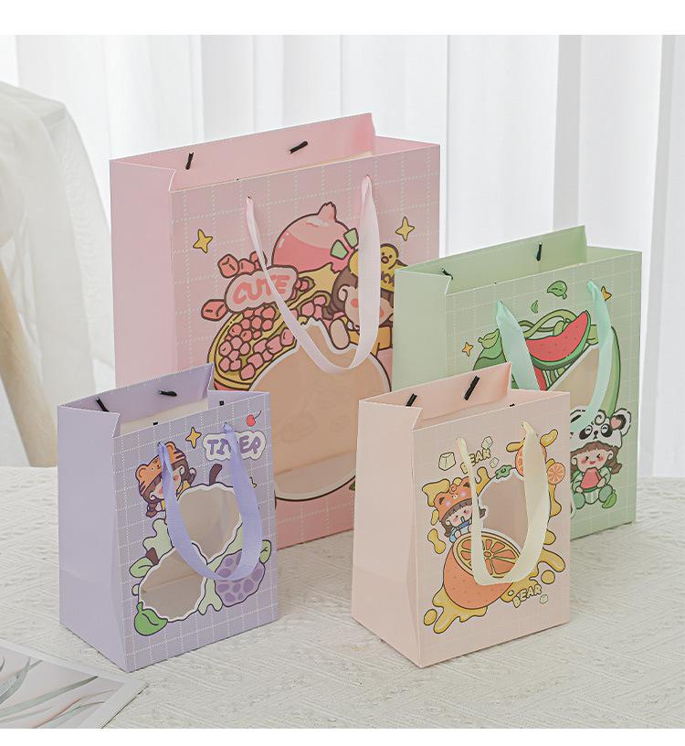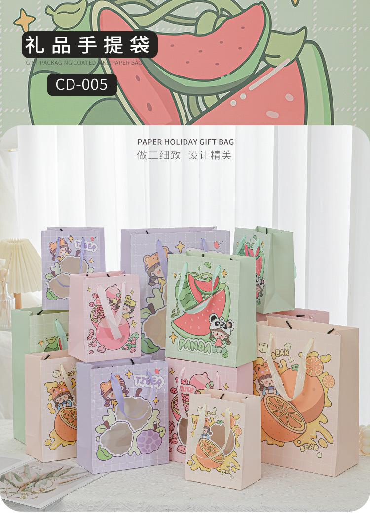 Nueva bolsa de regalo transparente con dibujos animados, bonita bolsa de mano con estampado de frutas, ideal para el Día del Niño.