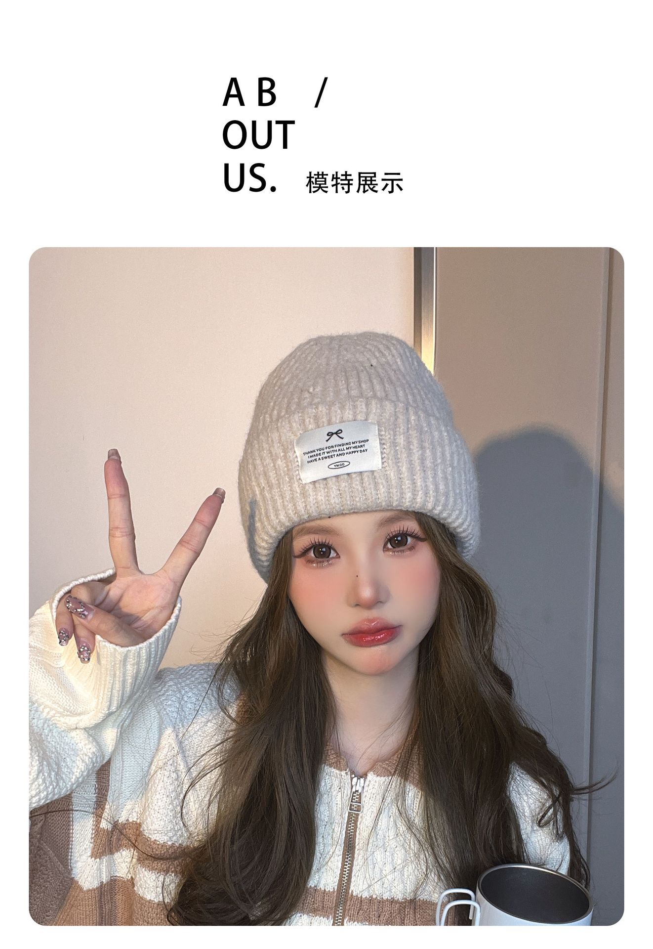 C4310 bow knitted hatDIYbeige, C4310 bow knitted hatDIYkhaki, C4310 bow knitted hatDIYmilk white, C4310 bow kn...