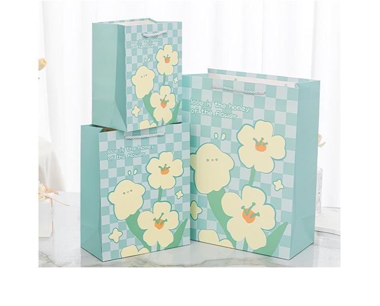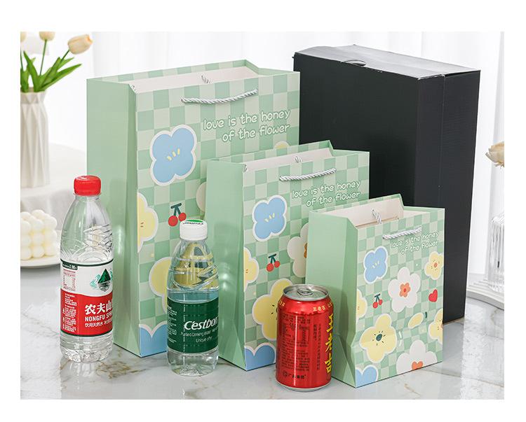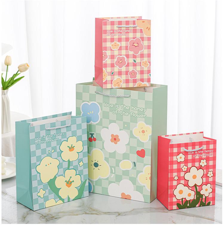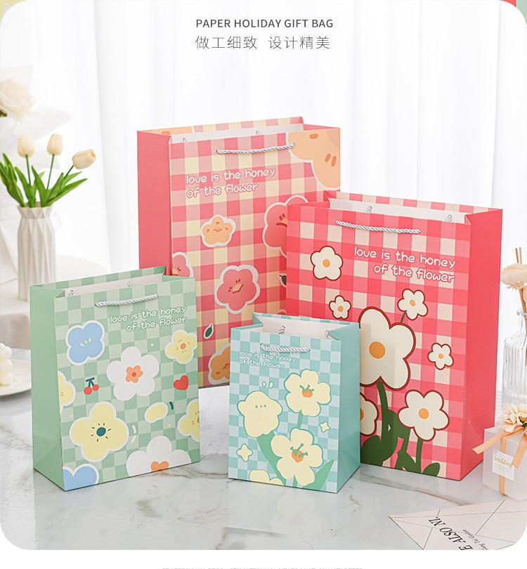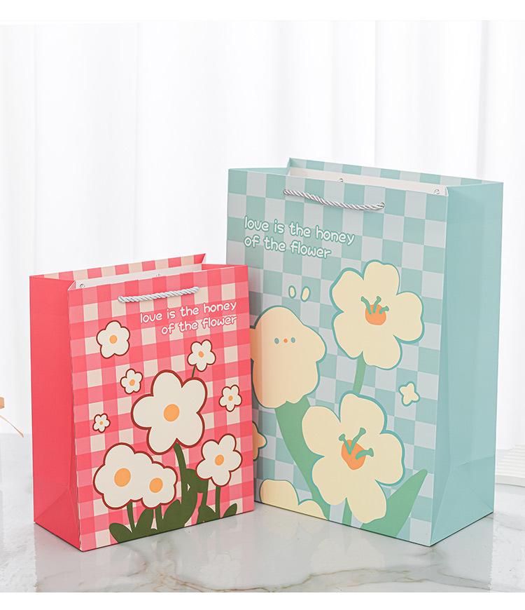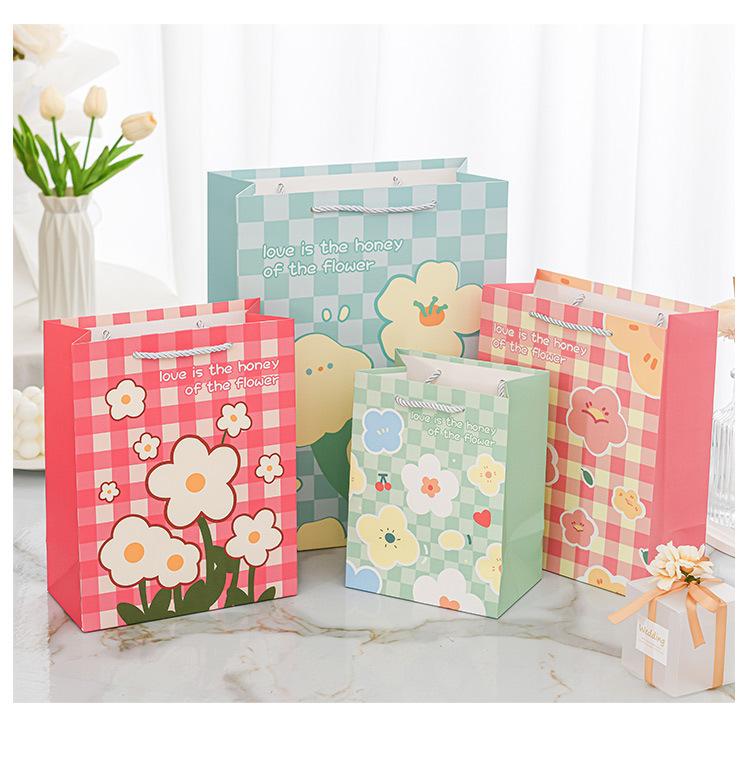 Nueva bolsa de papel portátil de tarjeta blanca con estampado de flores, bolsa de embalaje, linda bolsa de regalo de moda, bolso pequeño y fresco literario
