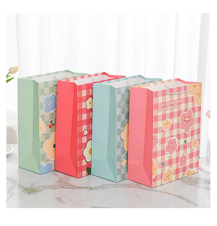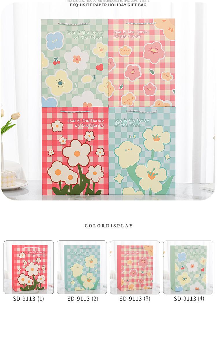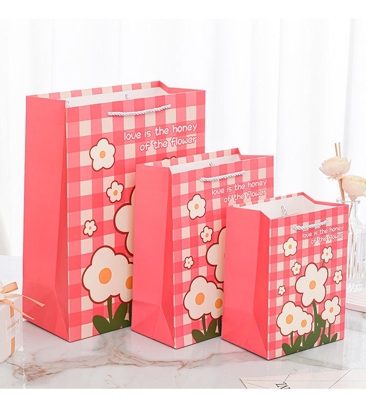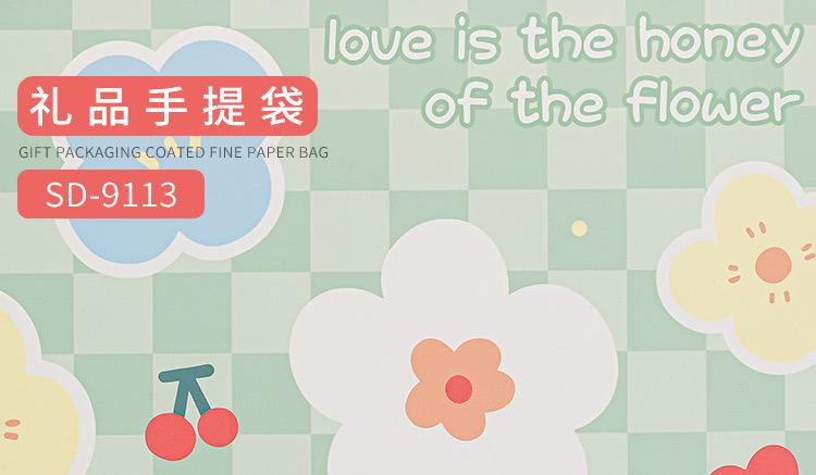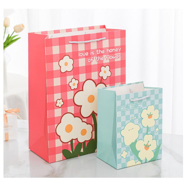 Nueva bolsa de papel portátil de tarjeta blanca con estampado de flores, bolsa de embalaje, linda bolsa de regalo de moda, bolso pequeño y fresco literario