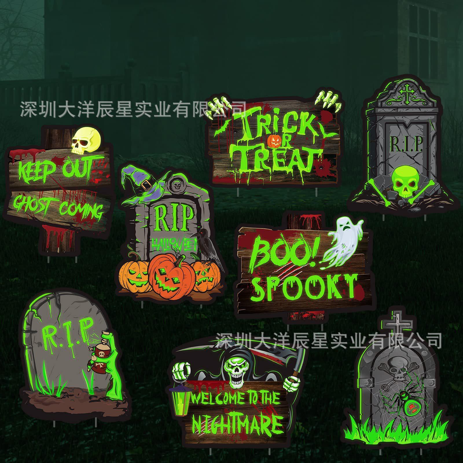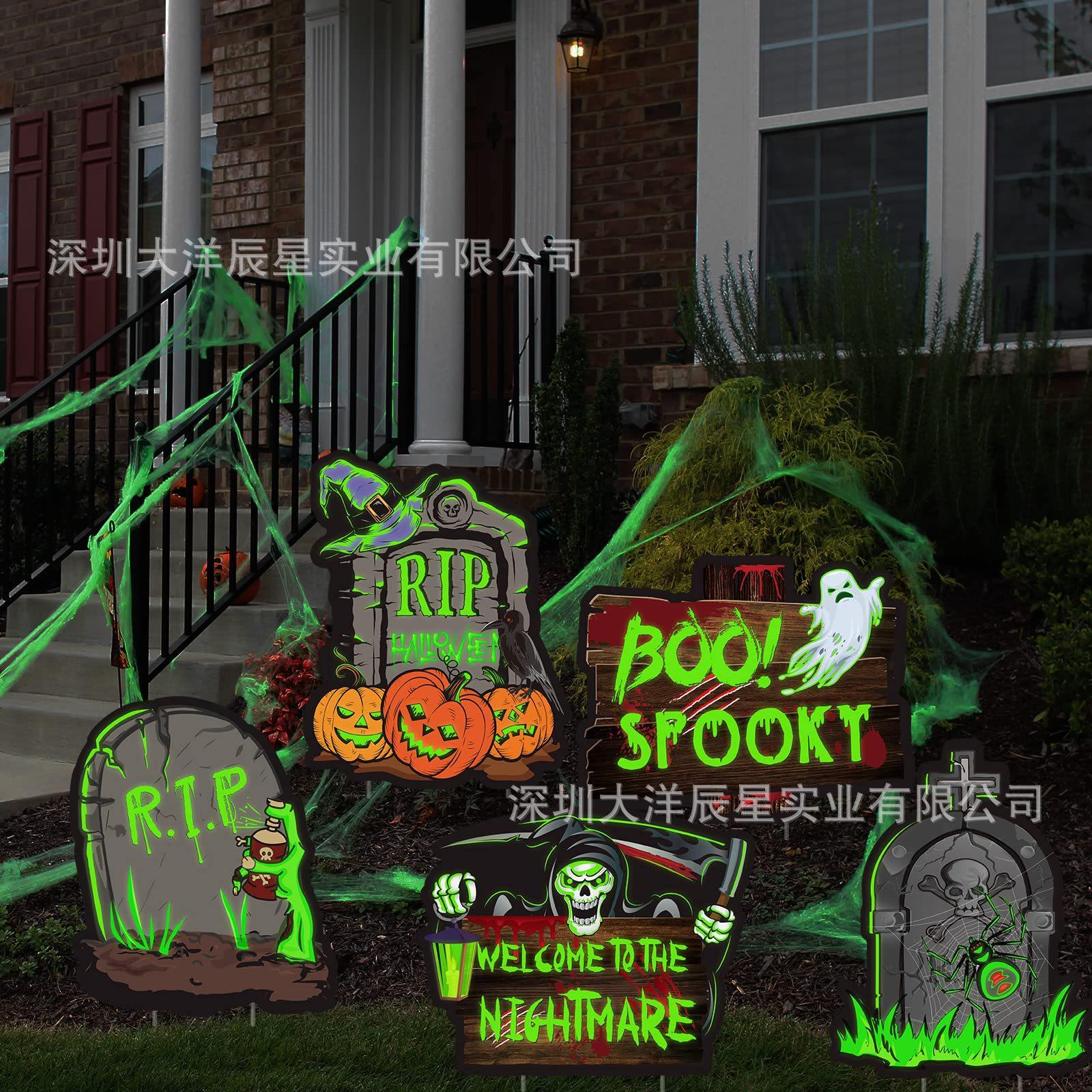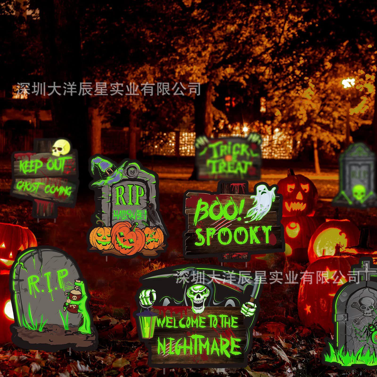 Placa de Halloween transfronteriza para patio, césped exterior, lápida fluorescente, logotipo decorativo de terror de Halloween