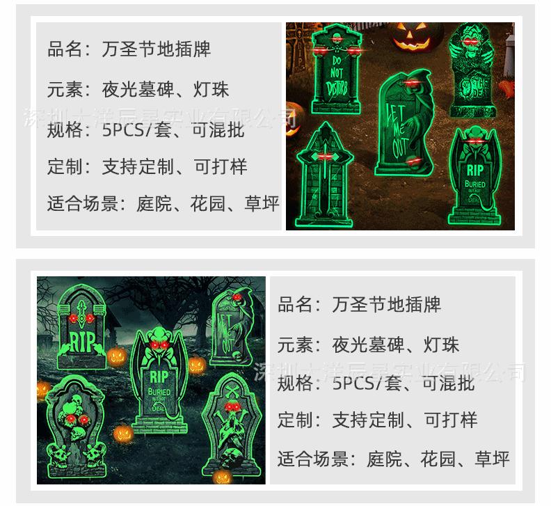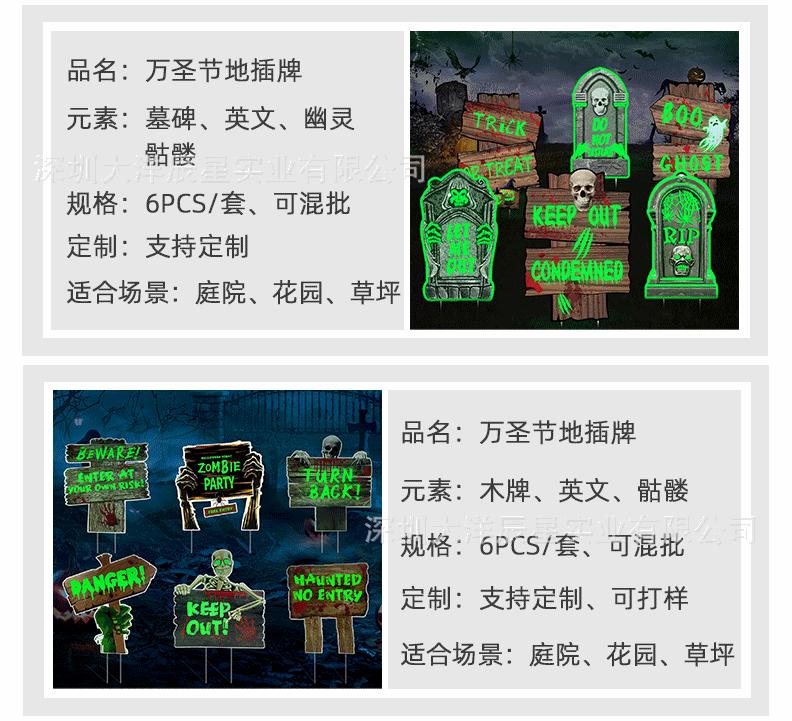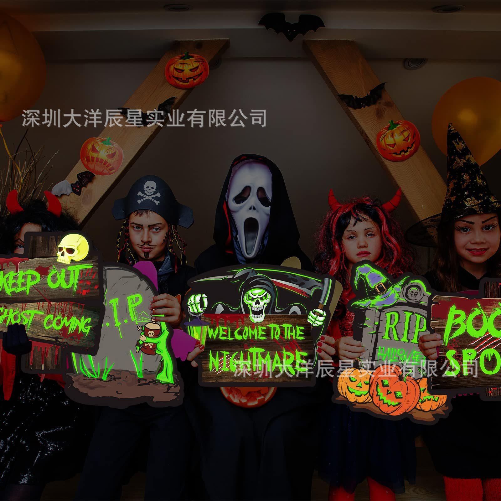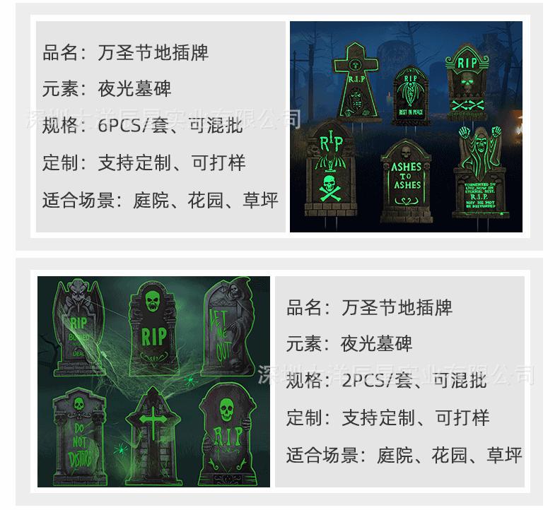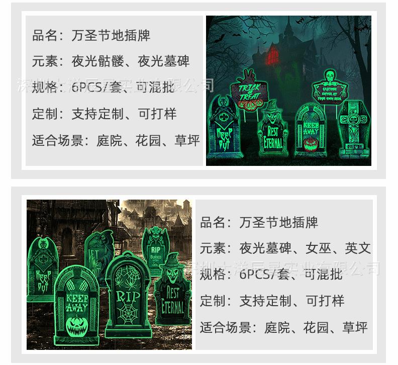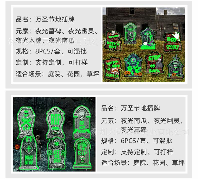 Placa de Halloween transfronteriza para patio, césped exterior, lápida fluorescente, logotipo decorativo de terror de Halloween