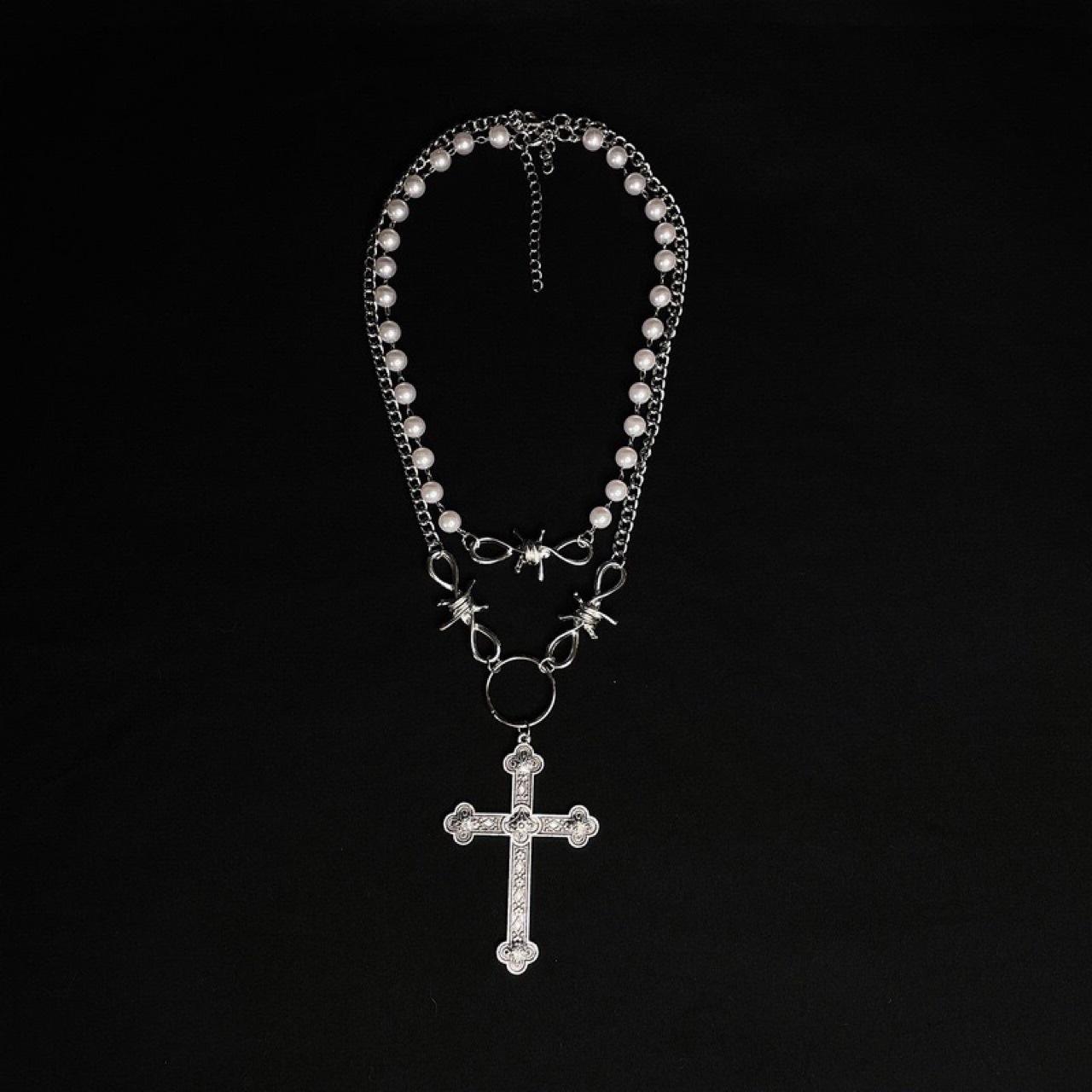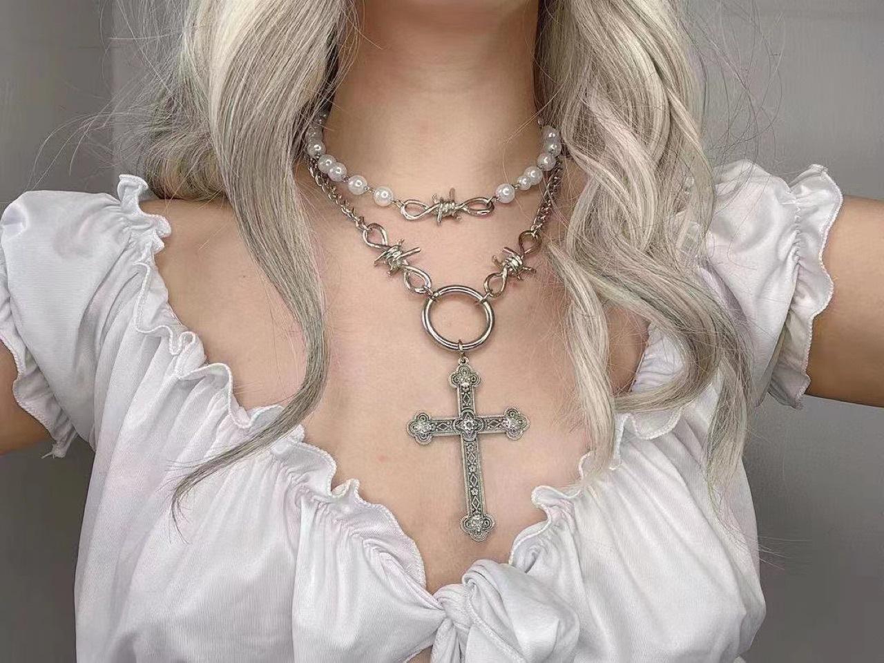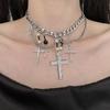 Collar de perlas con la misma cruz Qiya, estilo punk, hip hop, para chica atractiva, dulce y genial, collar de metal, cadena de clavícula, accesorios de joyería