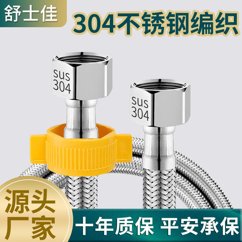 Manguera trenzada de acero inoxidable 304 de 4 puntos entrada de agua fría y caliente tubería de agua metálica calentador de agua para inodoro manguera de agua de alta presión contra roturas