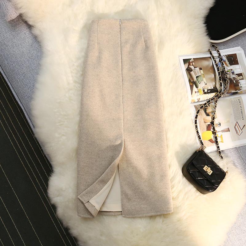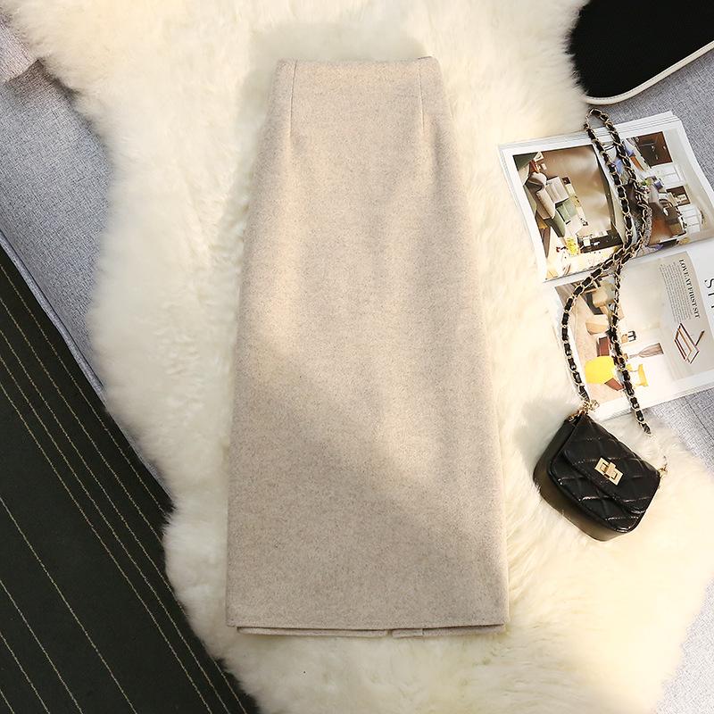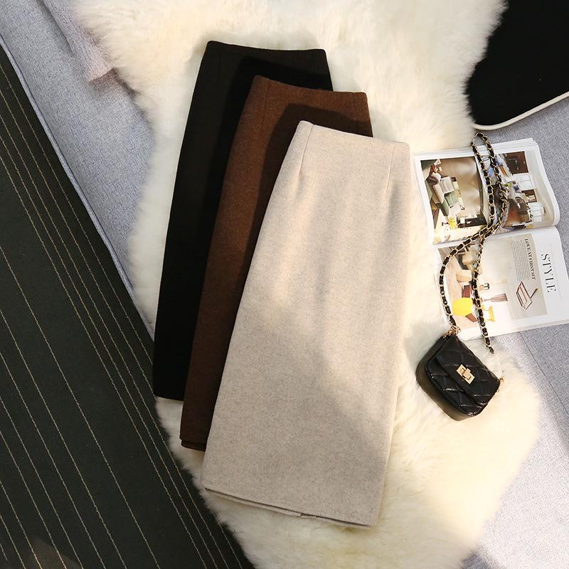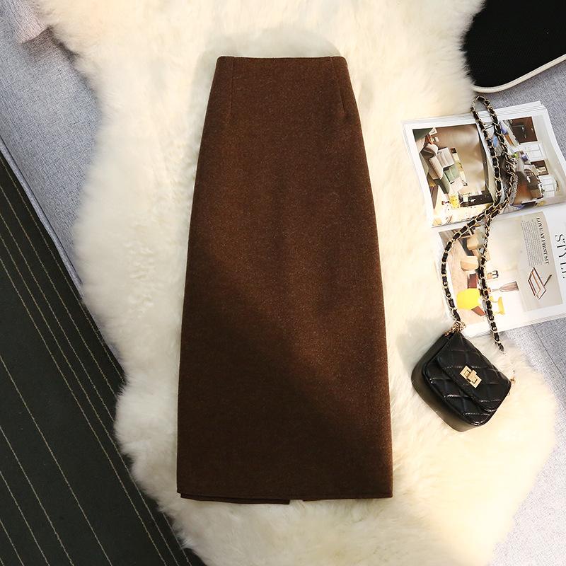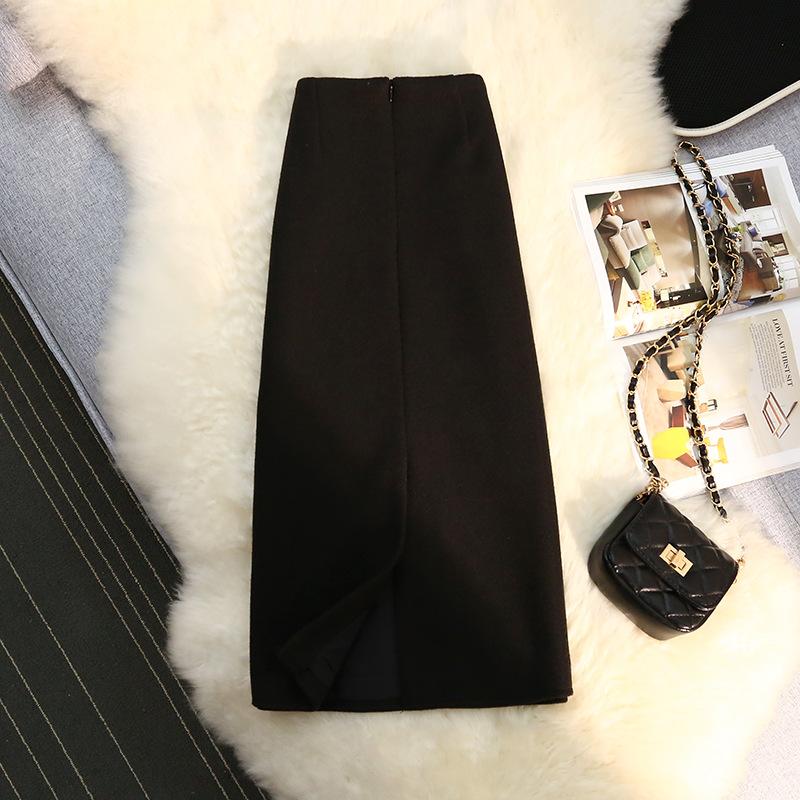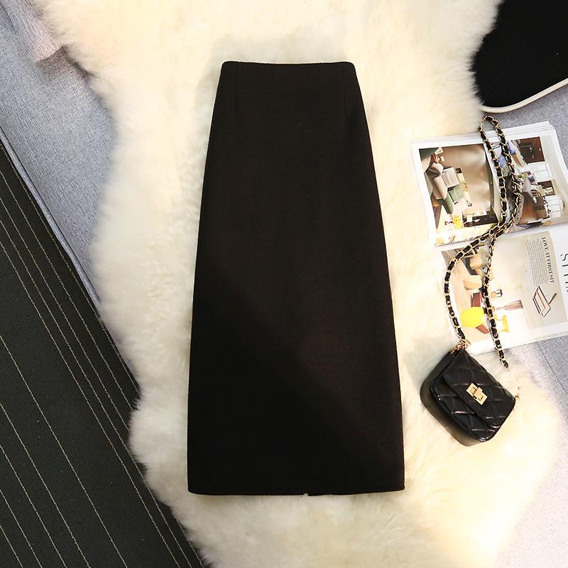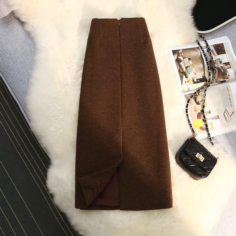 Falda de Lana para Mujer de Largo Medio Primavera, Otoño e Invierno 2025 Engrosada Cintura Alta Abertura Falda Recta de Un Paso Falda Cubre Caderas