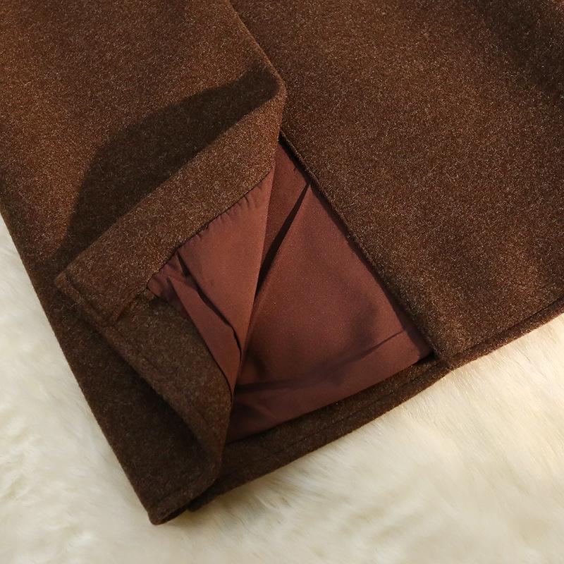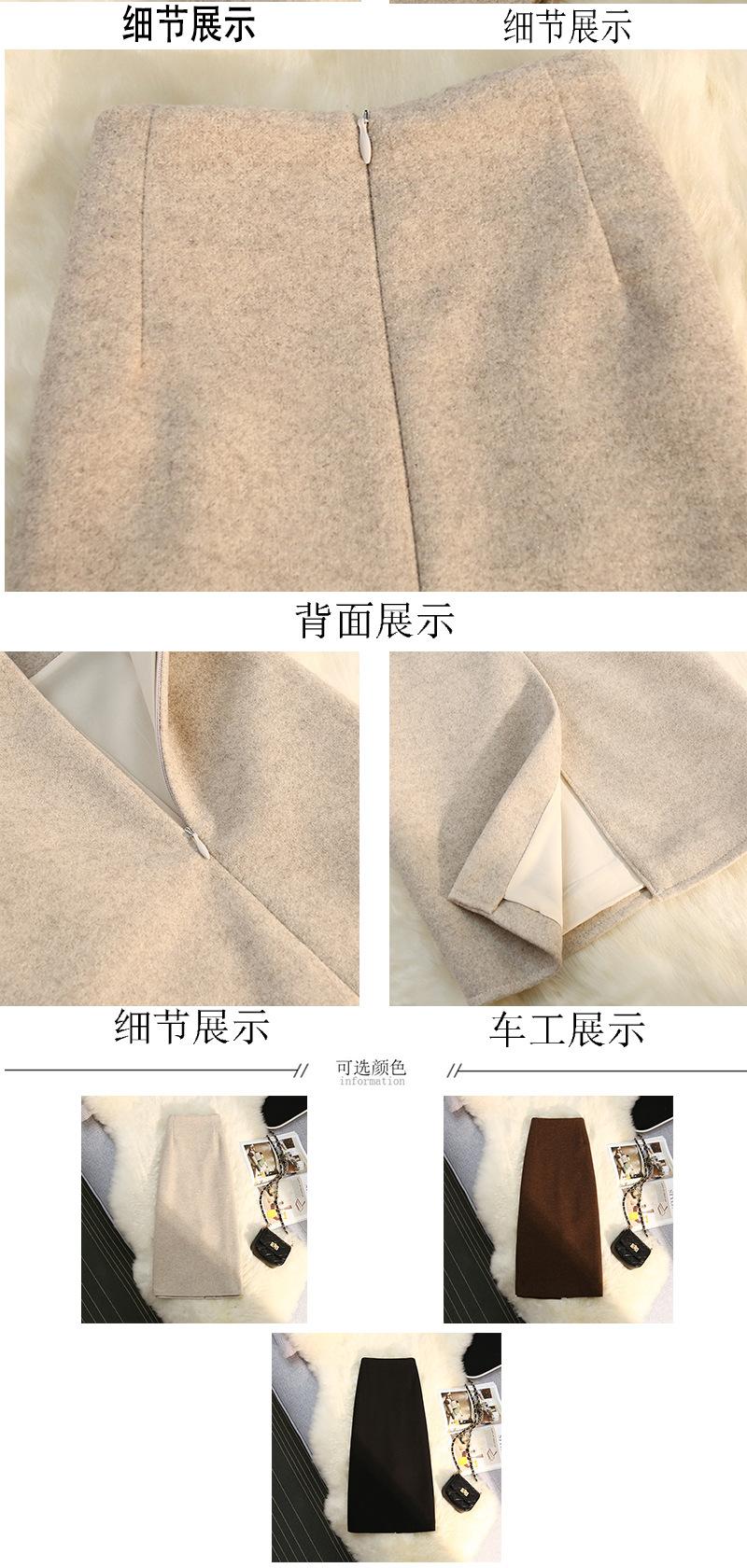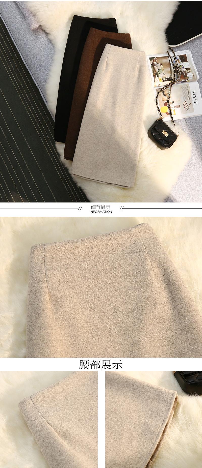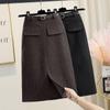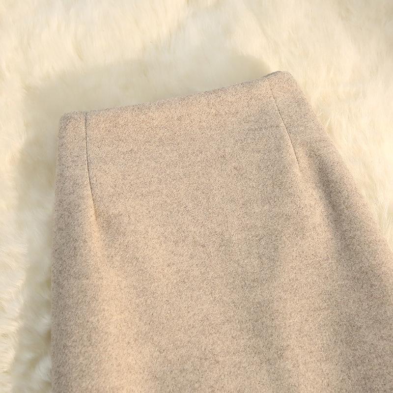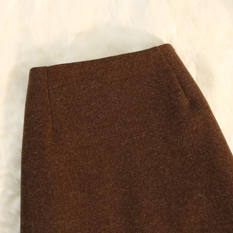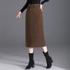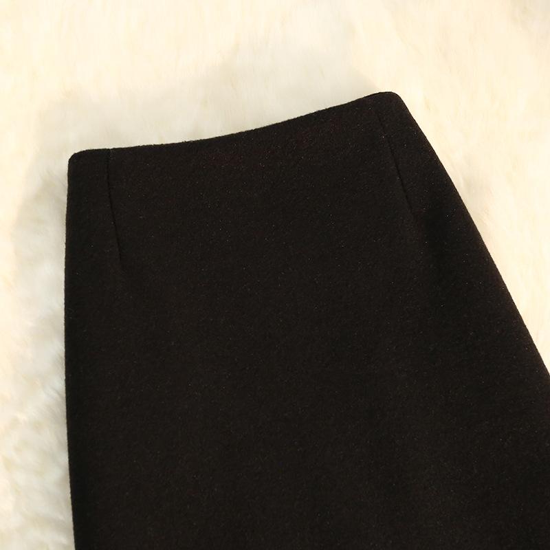 Falda de Lana para Mujer de Largo Medio Primavera, Otoño e Invierno 2025 Engrosada Cintura Alta Abertura Falda Recta de Un Paso Falda Cubre Caderas