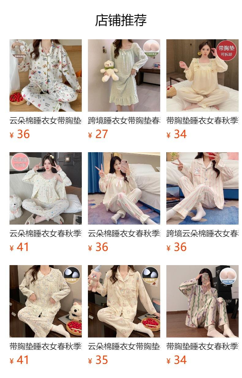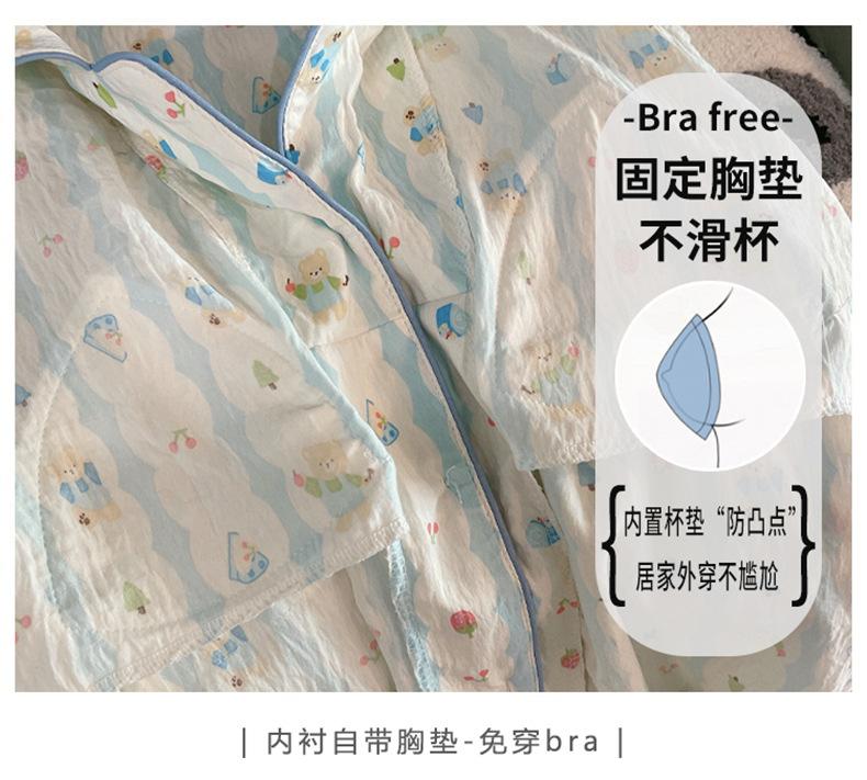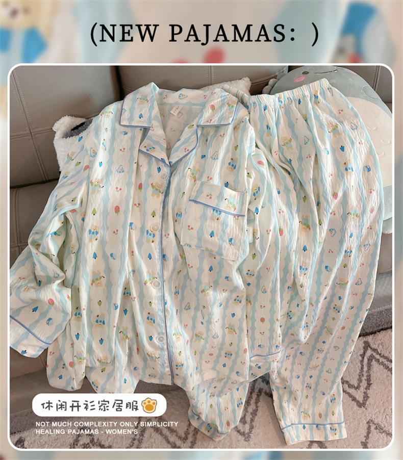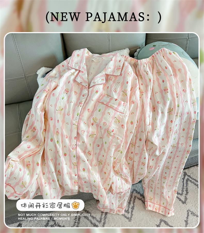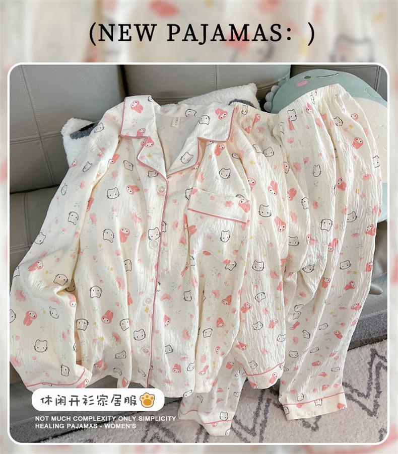 Pijama de algodón de nube para mujer, con almohadillas para el pecho, para primavera y otoño, fino, japonés, de manga larga, holgado, estilo lindo, para el hogar