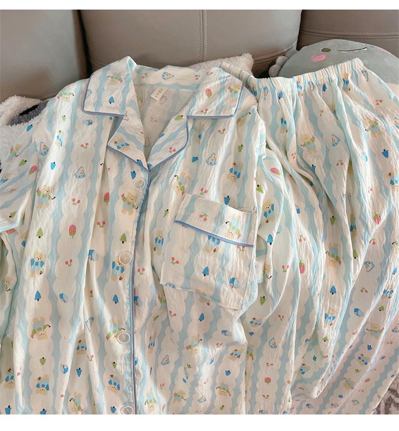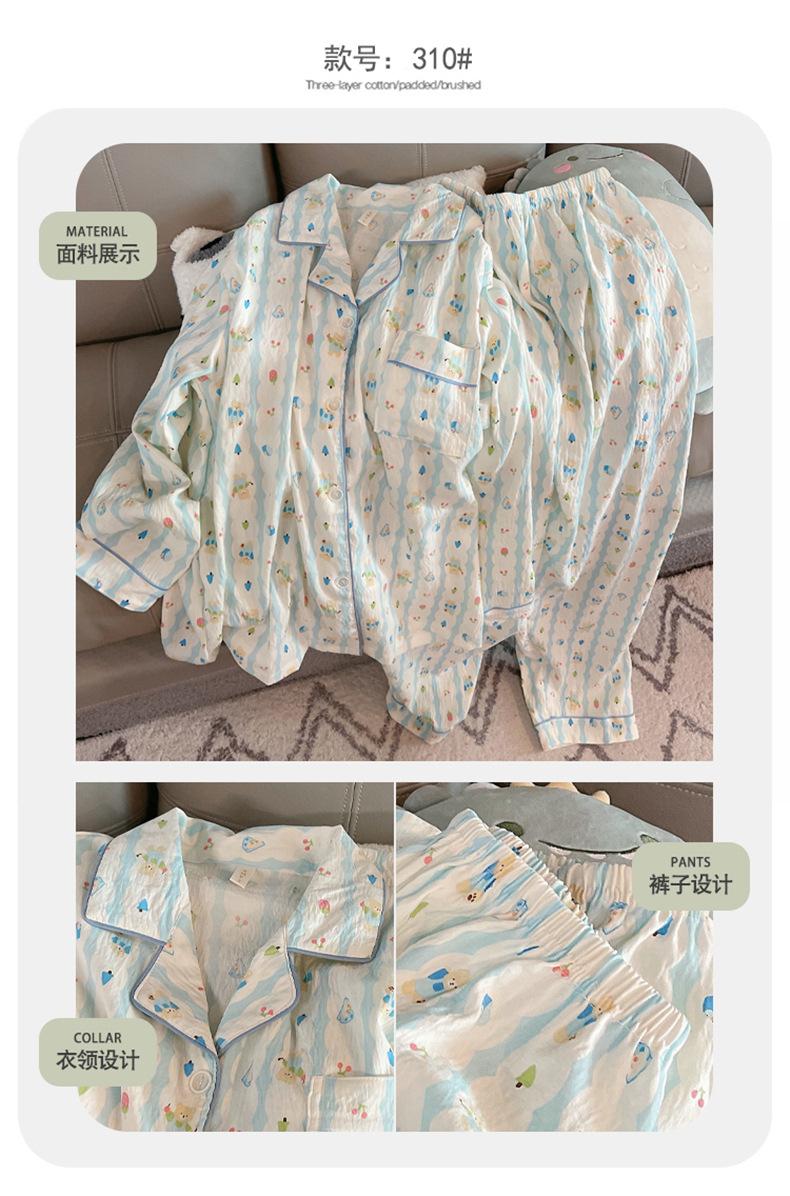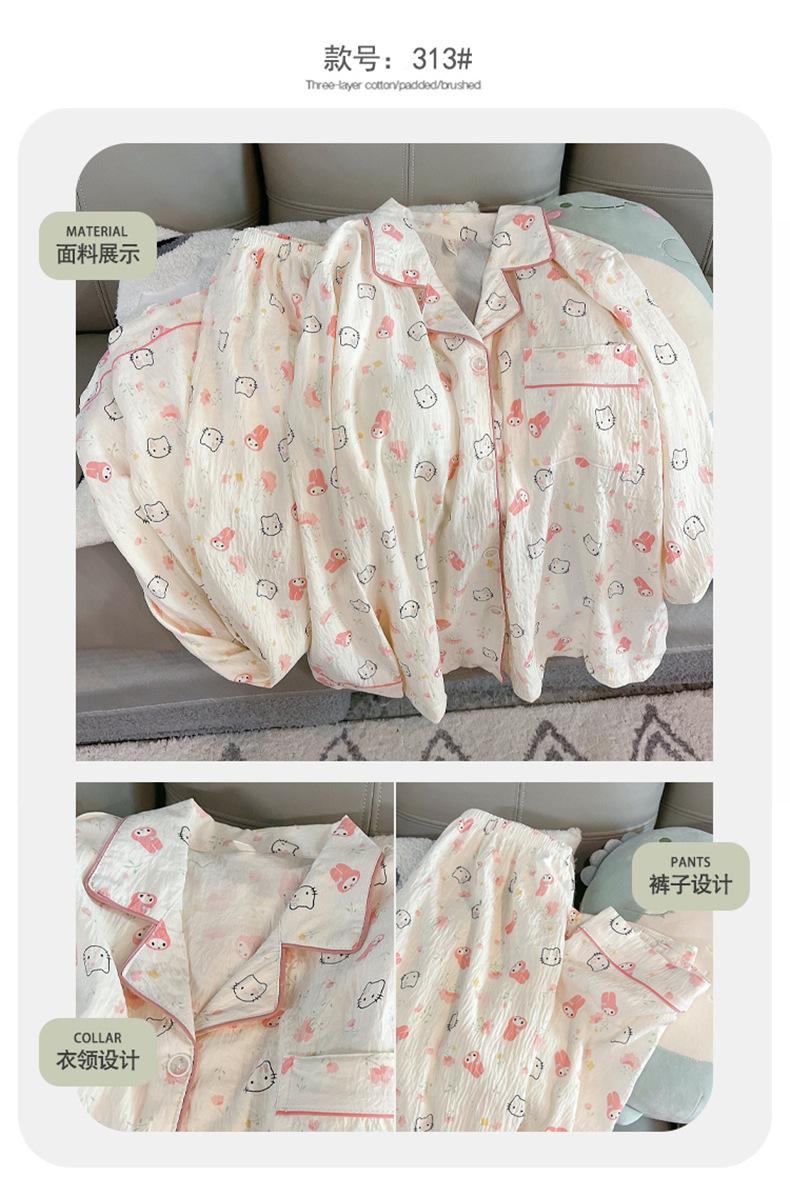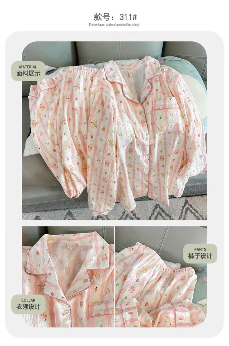 Pijama de algodón de nube para mujer, con almohadillas para el pecho, para primavera y otoño, fino, japonés, de manga larga, holgado, estilo lindo, para el hogar