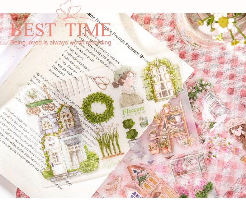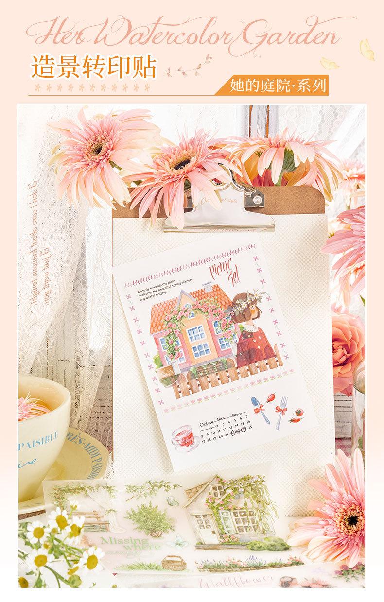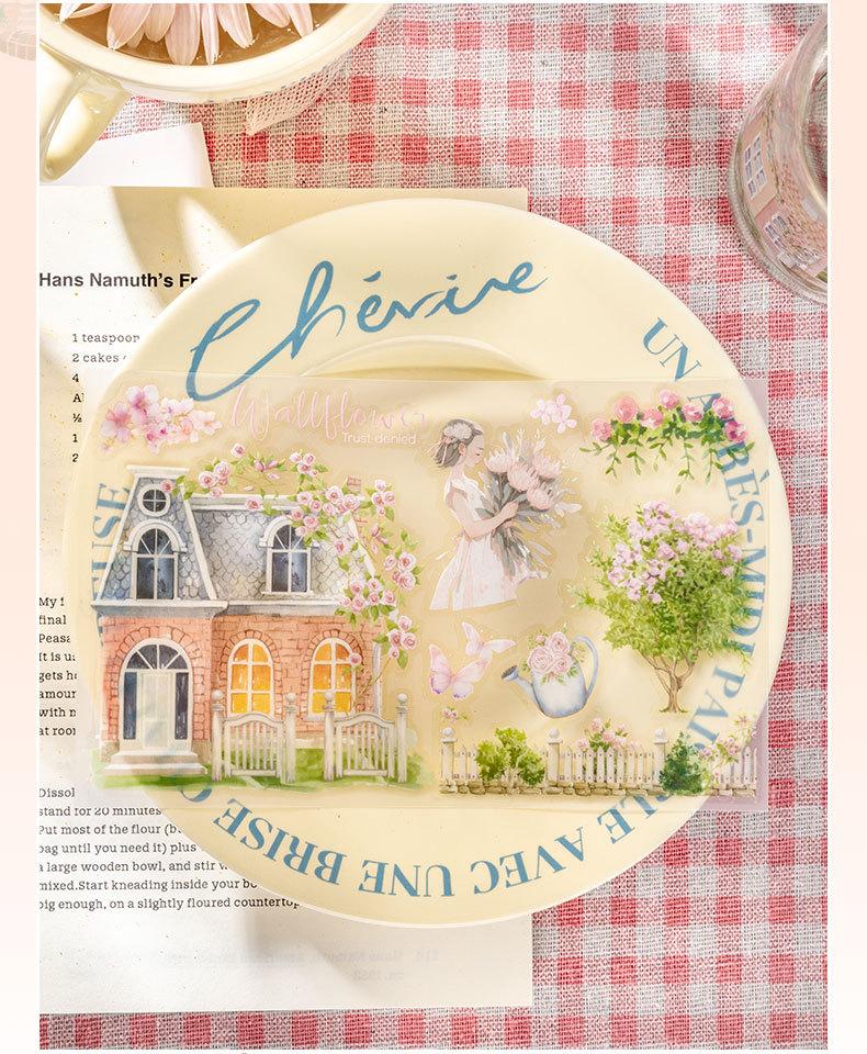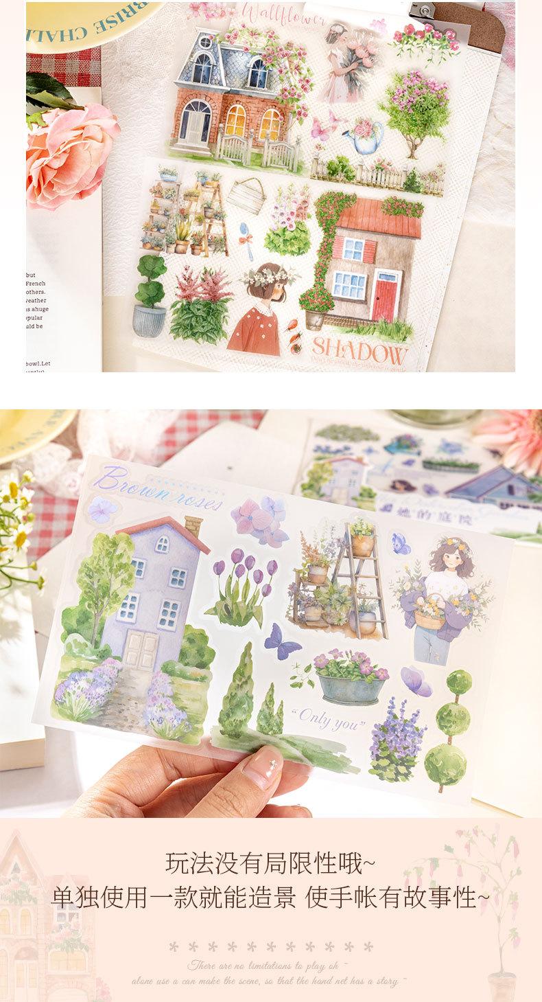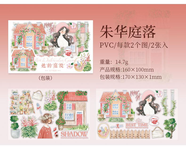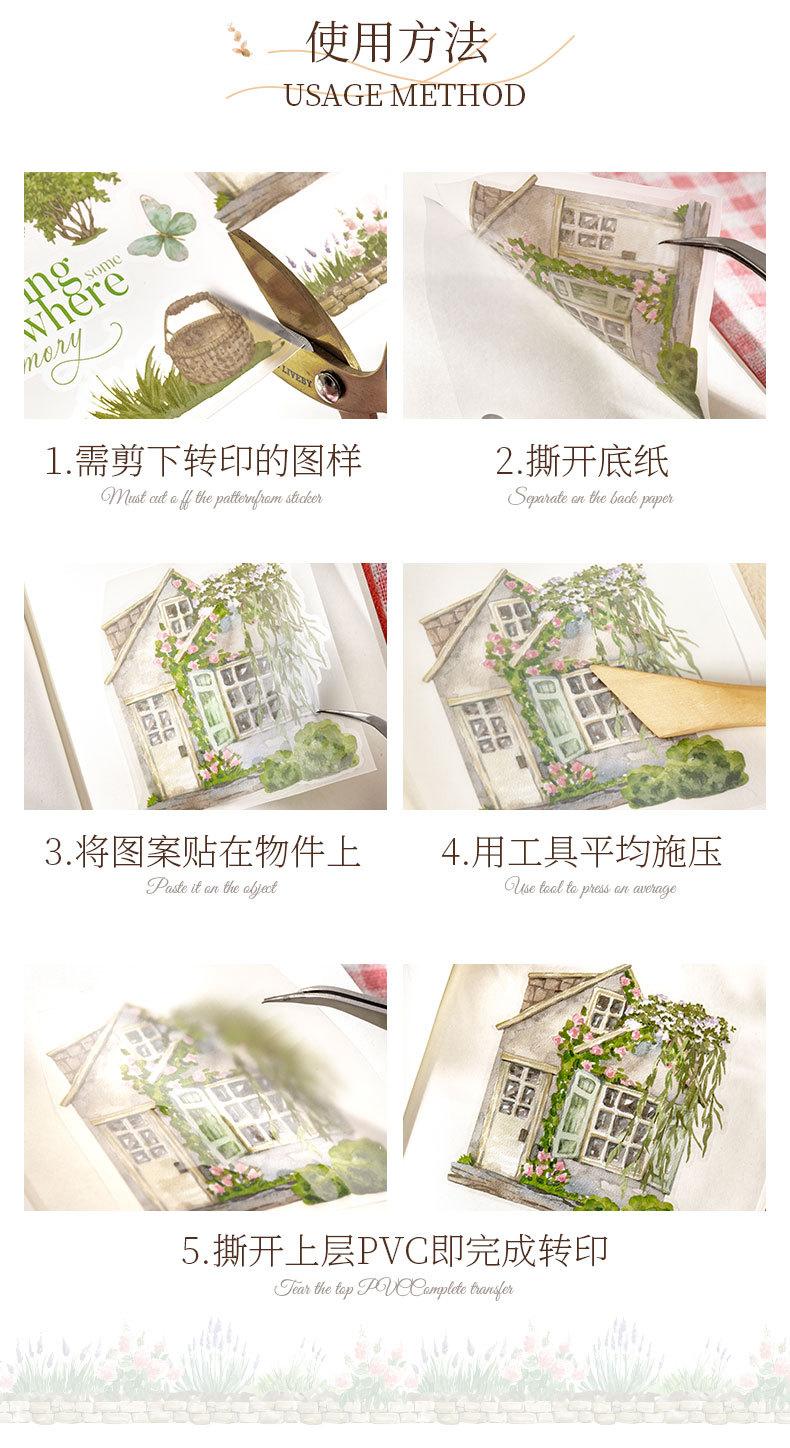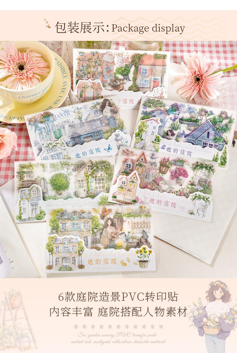 Sticker de Transfer de PVC de Paisaje de Ketchup Girl Serie Su Patio Cuenta de Mano Collage DIY Material Decorativo Sticker