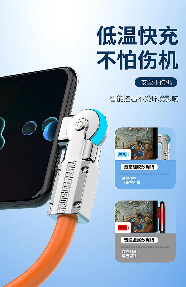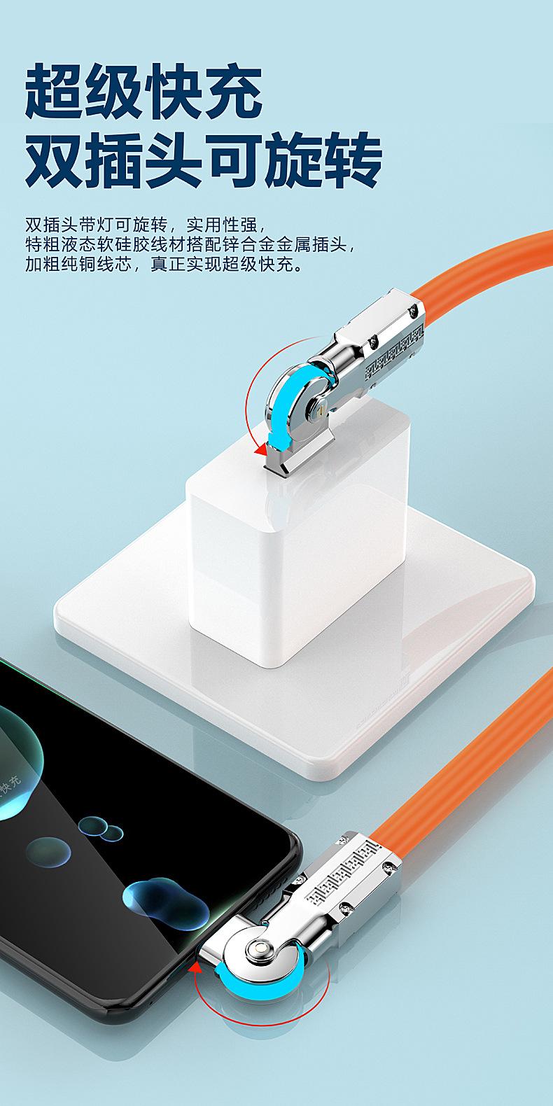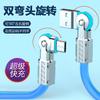 Cable de datos de carga rápida tipo C de doble codo giratorio de línea gruesa con luz para teléfono móvil, cable de carga aplicable para Apple y Android
