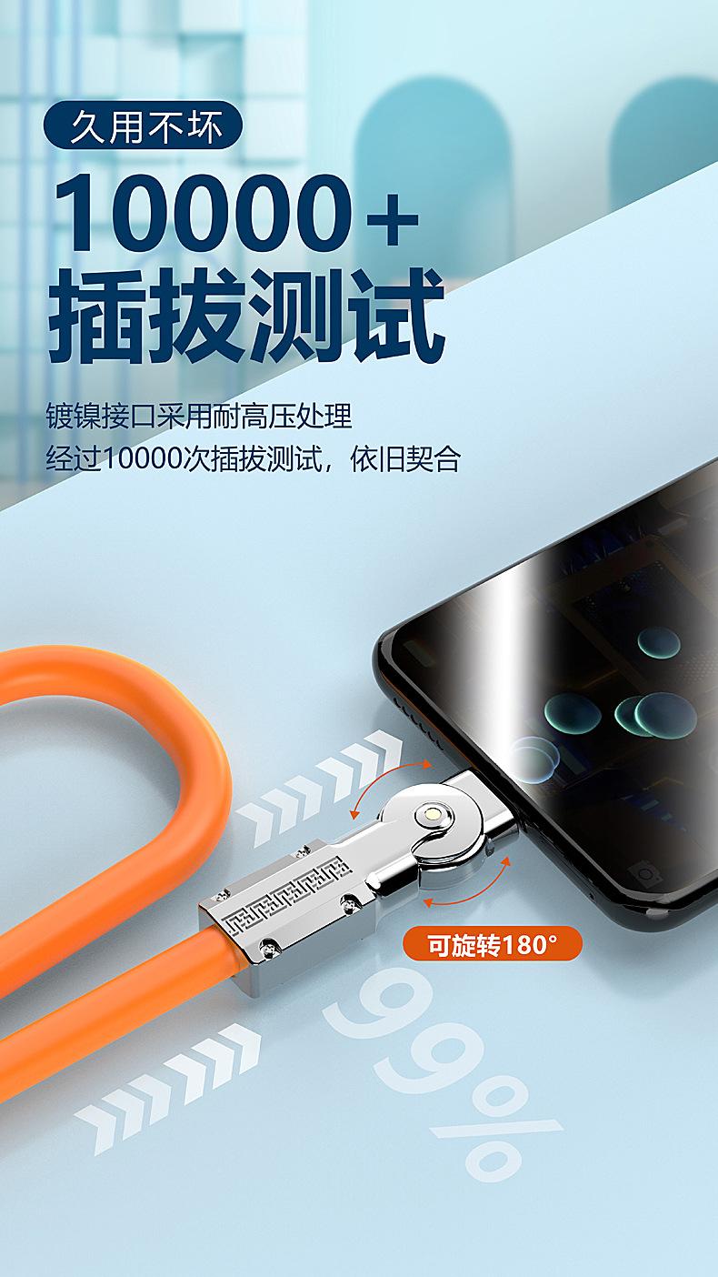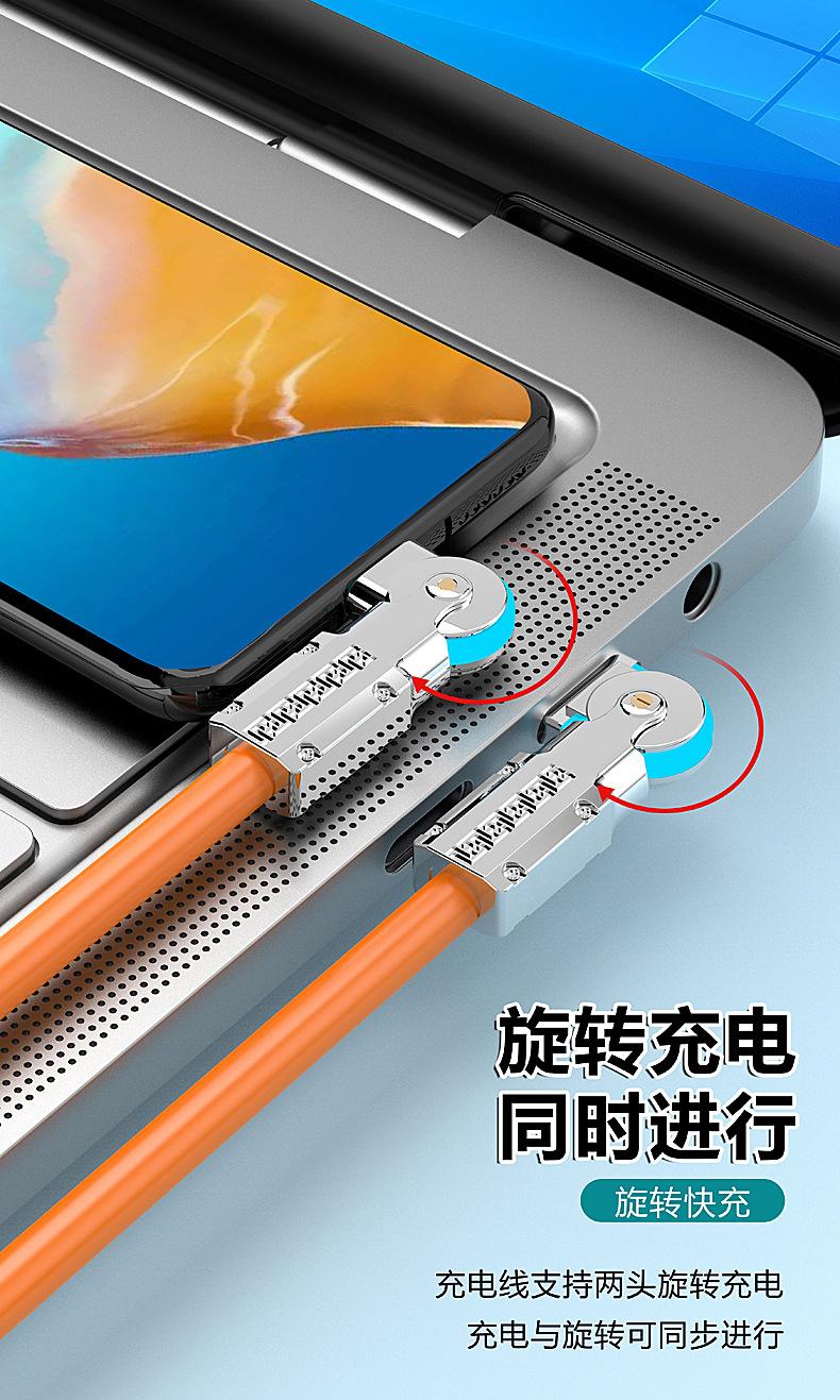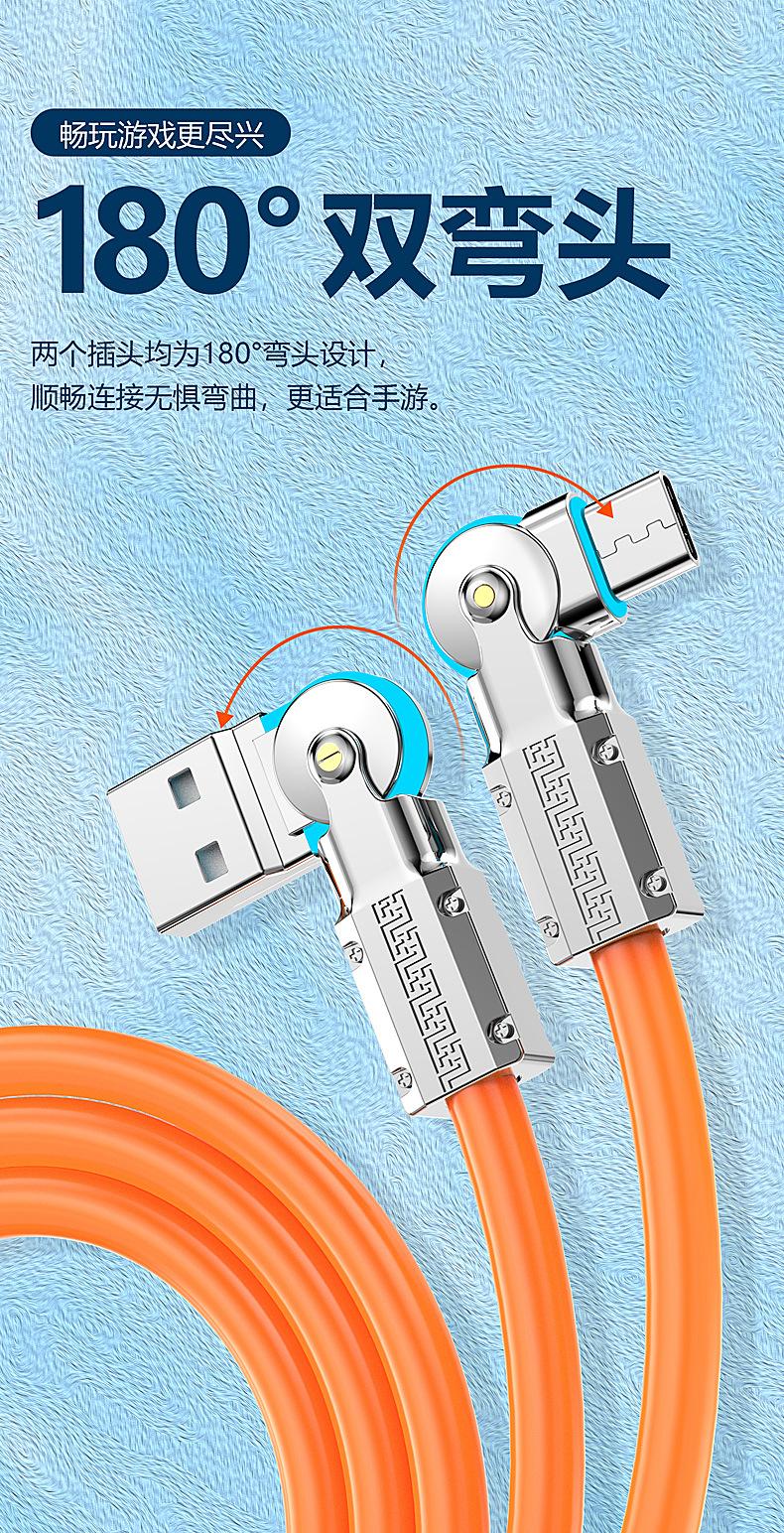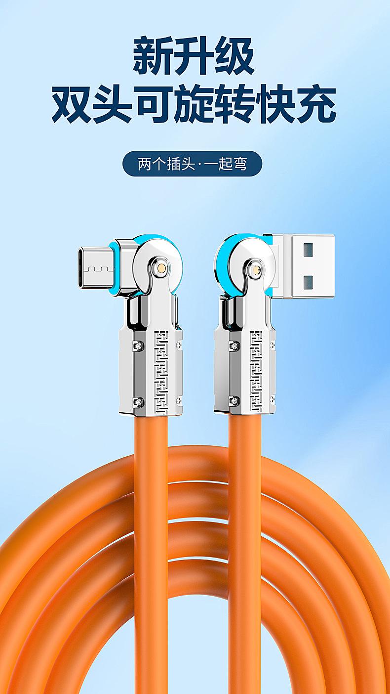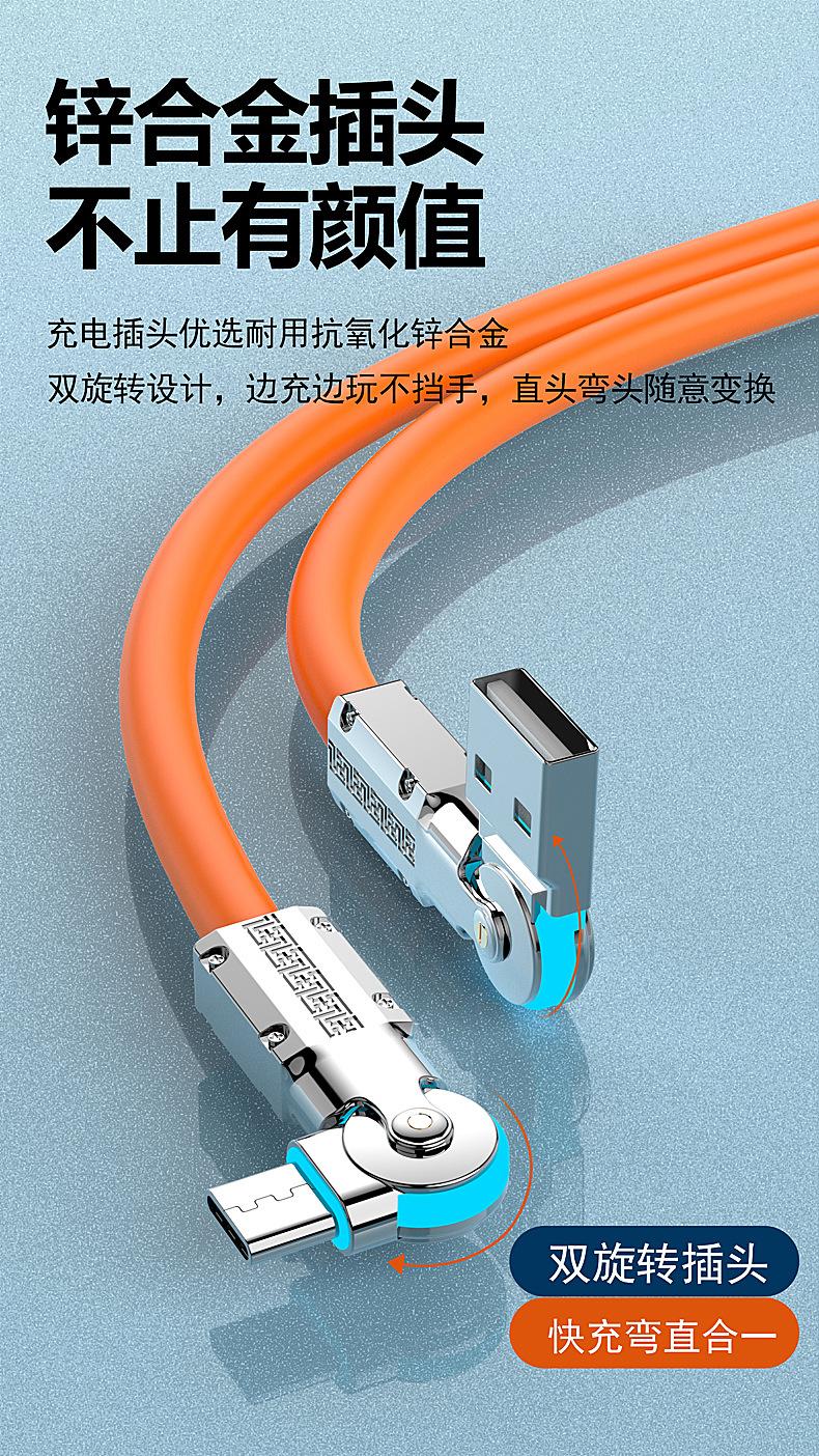 Android micro interface-double elbow rotation [1 m] Orange-fast charging soft rubber thick line