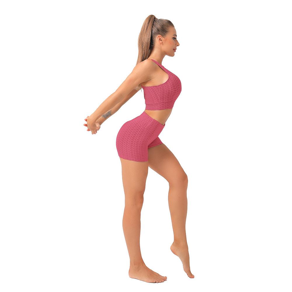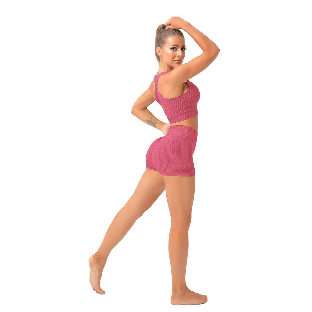 Pantalones de burbuja de tres puntos de venta caliente europeos y americanos, pantalones deportivos de entrenamiento adelgazante ajustados de cadera Peach, pantalones de yoga sexys de verano para correr