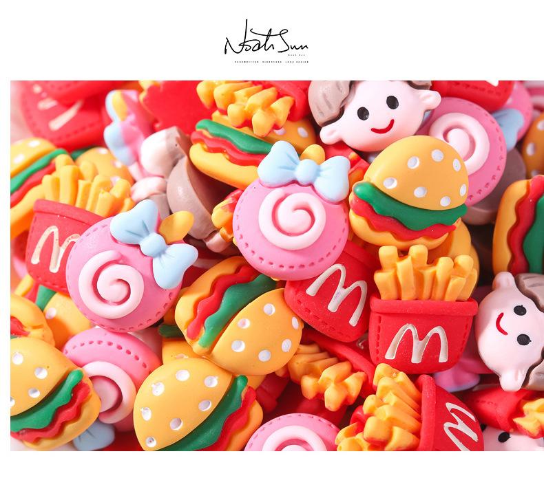 Juguete de simulación de hamburguesa de animales de dibujos animados, serie de resina, pequeños accesorios, joyería, crema, pegamento, horquilla hecha a mano