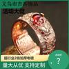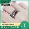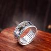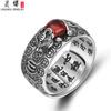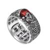 Anillo Pixiu de Plata Tailandesa Retro para Transferencia de Fortuna para Hombres y Mujeres Oro Granate Trendy Mantra de Seis Caracteres Abierto Anillo Antiguo
