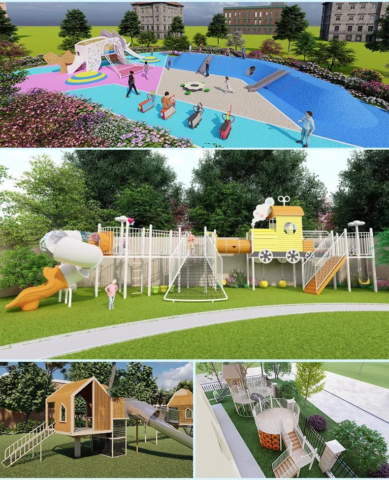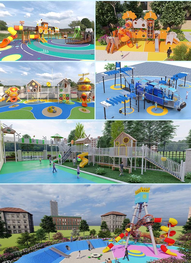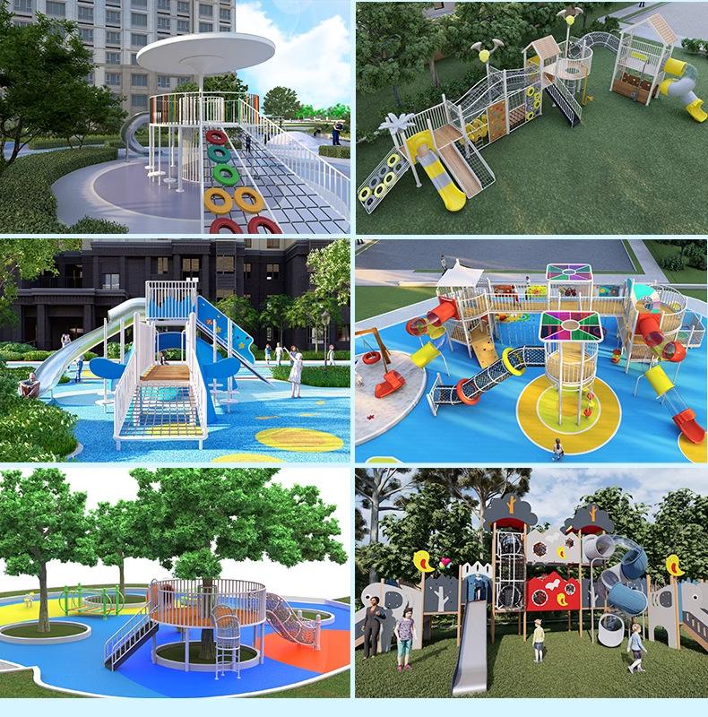 Kiosco de Madera para Jardín de Niños Parque Comunitario Equipo de Juego sin Motor Fabricante de Tobogán de Madera para Niños Tipo Combinación