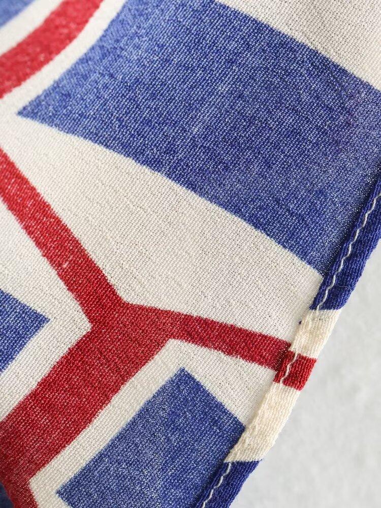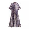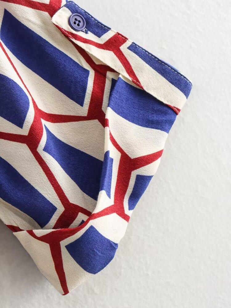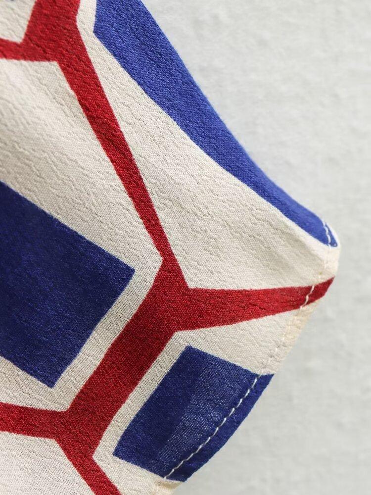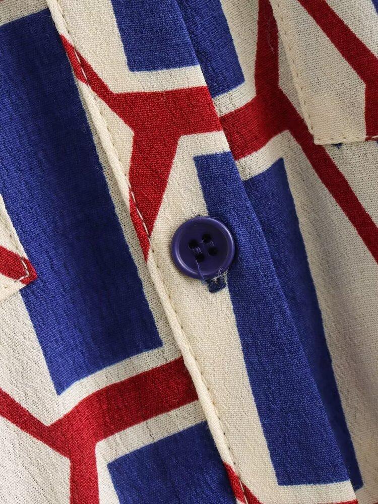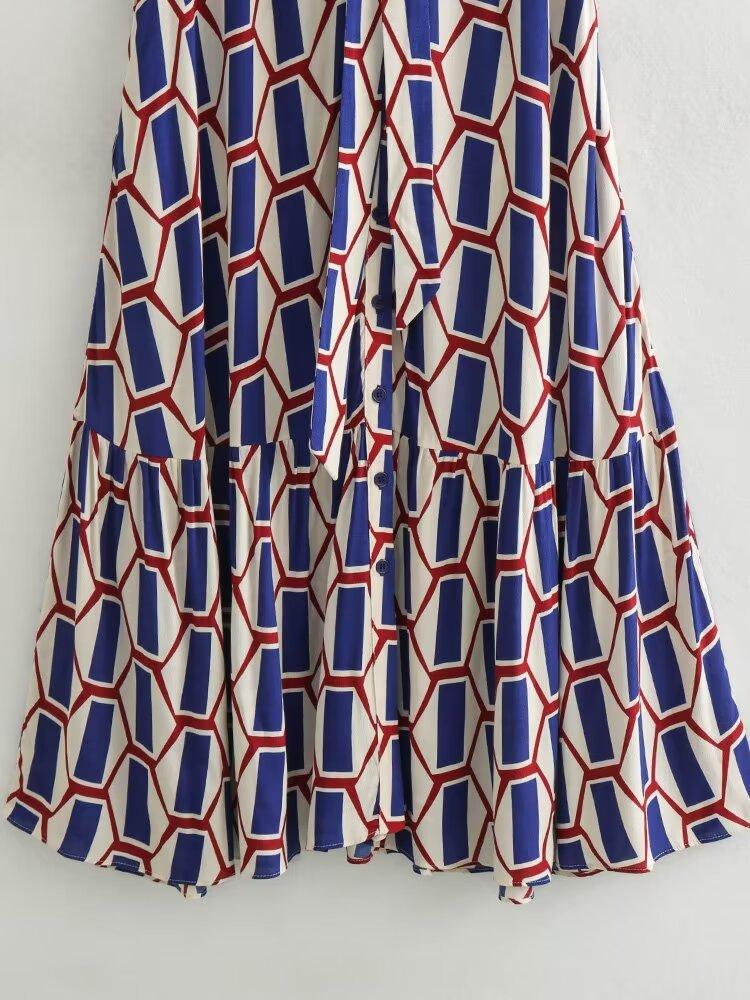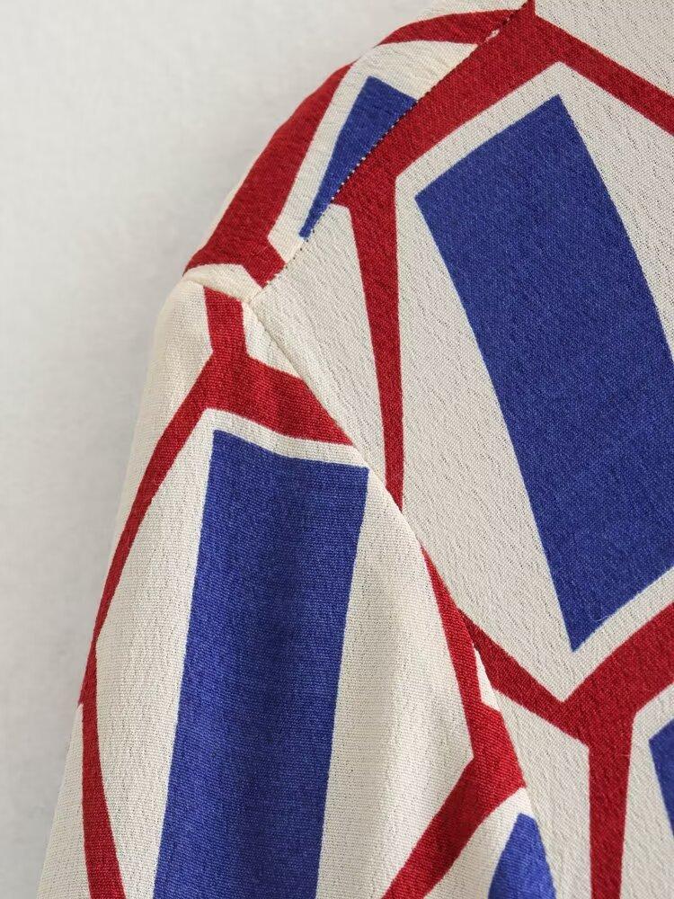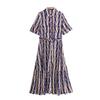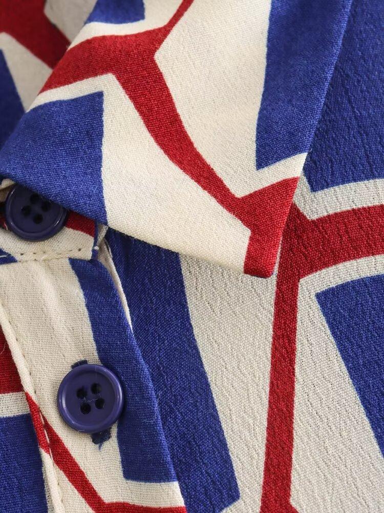 Vestido camisero con cinturón y solapa de manga larga con estampado geométrico, estilo europeo y americano, para mujer, verano 2024