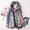 Bufanda de estilo étnico para mujer, de algodón y lino, con borlas que combinan con todo, bufanda larga artística, bufanda fina de verano, protector solar, chal de doble uso.