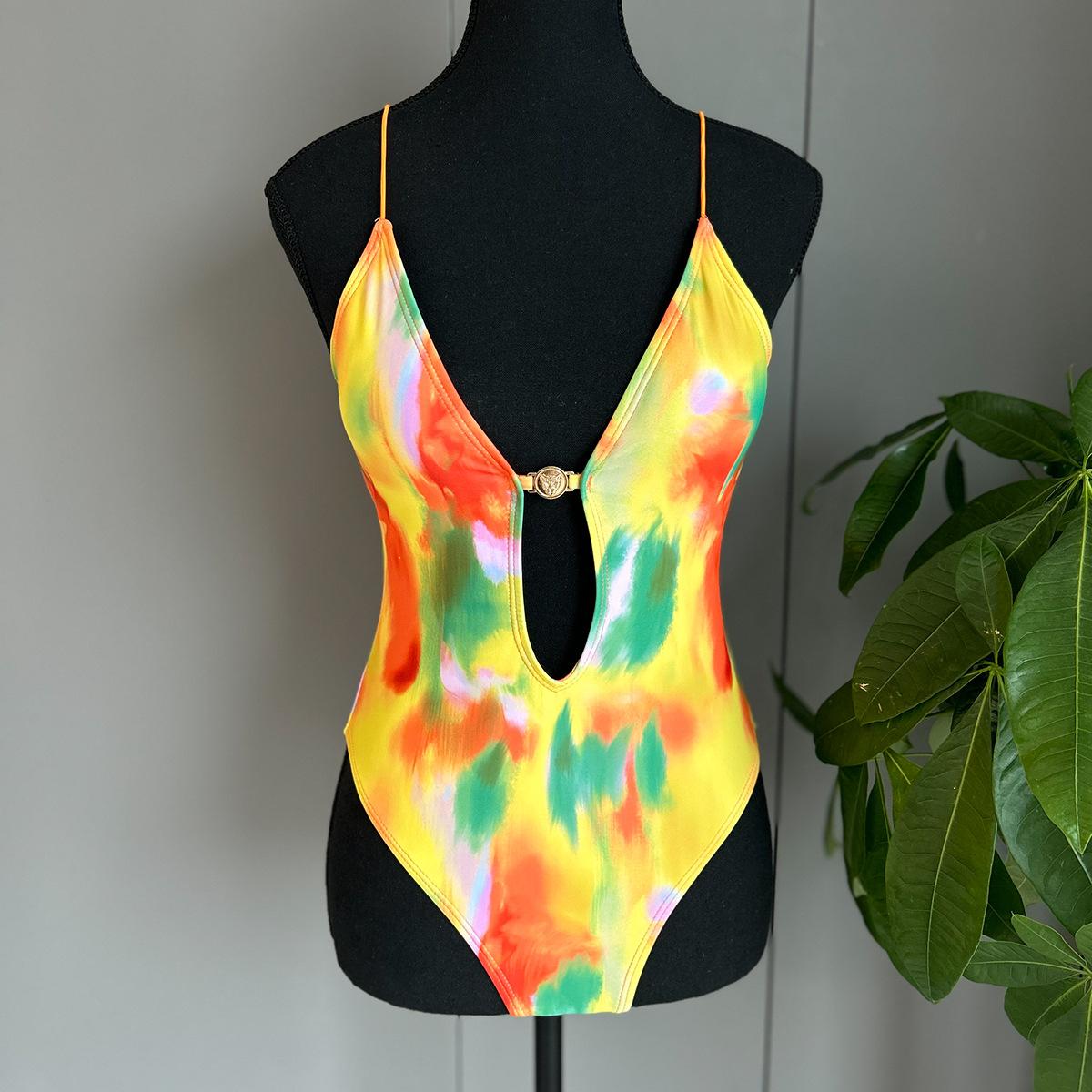 Traje de baño de una pieza 2024 para mujer, nuevo bikini transfronterizo europeo y americano, bikini sexy fruncido para mujer, traje de baño al por mayor.
