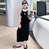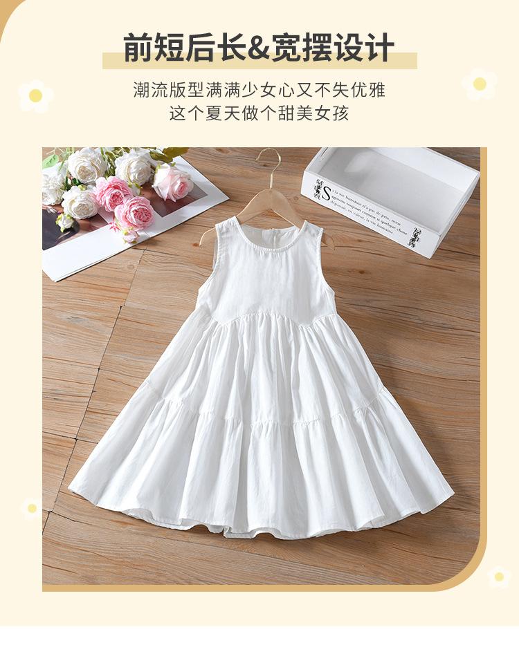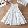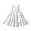Vestido sin mangas para niña, de verano, de algodón puro, blanco, con efecto tie-dye, falda de vacaciones, para niña, con empalme delantero, corto, trasero, largo, falda grande