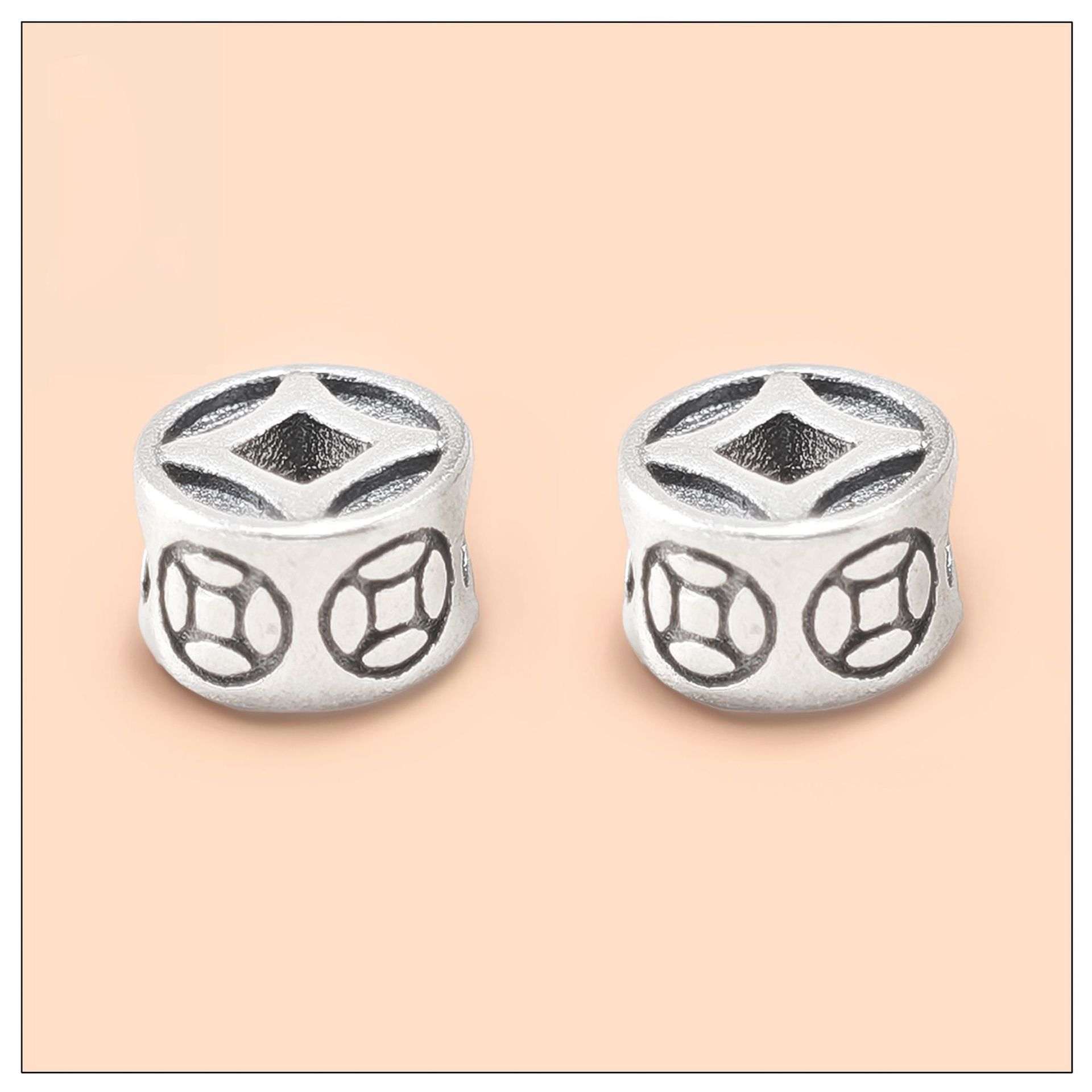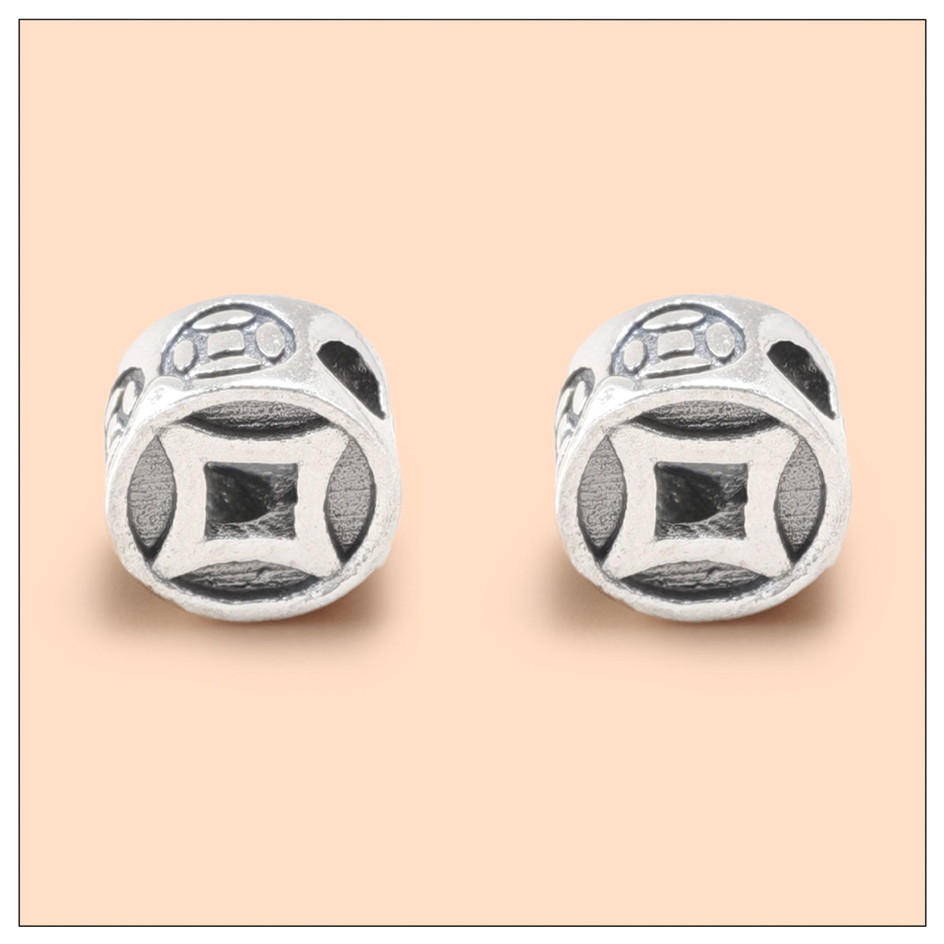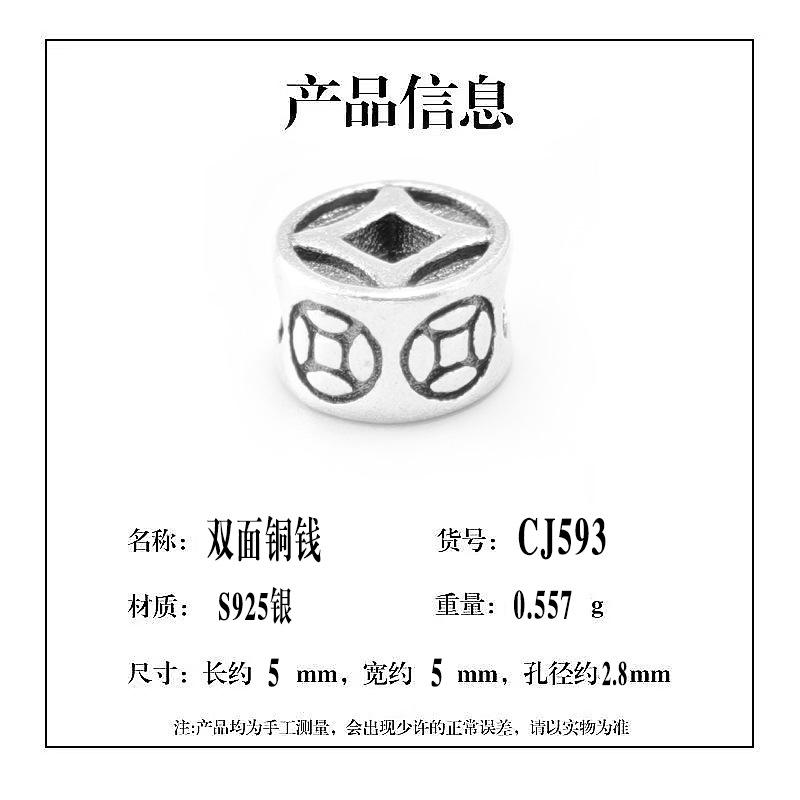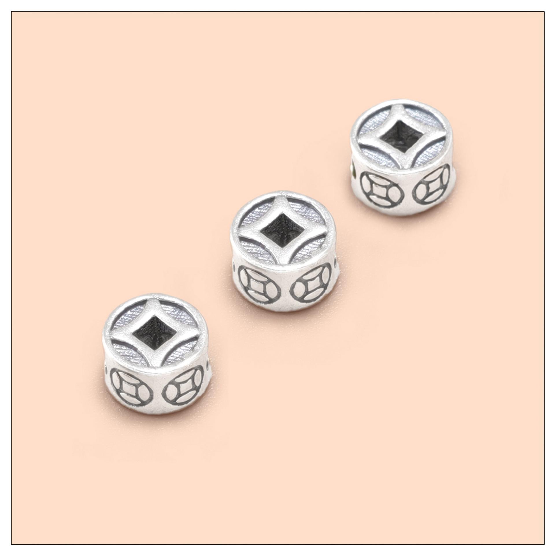 Accesorios de Plata Esterlina S925 Cuentas Sueltas Moneda de Cobre Retro Doble Cara DIY Hecho a Mano Pulsera Cuerda de Mano Collar Joyería con Cuentas