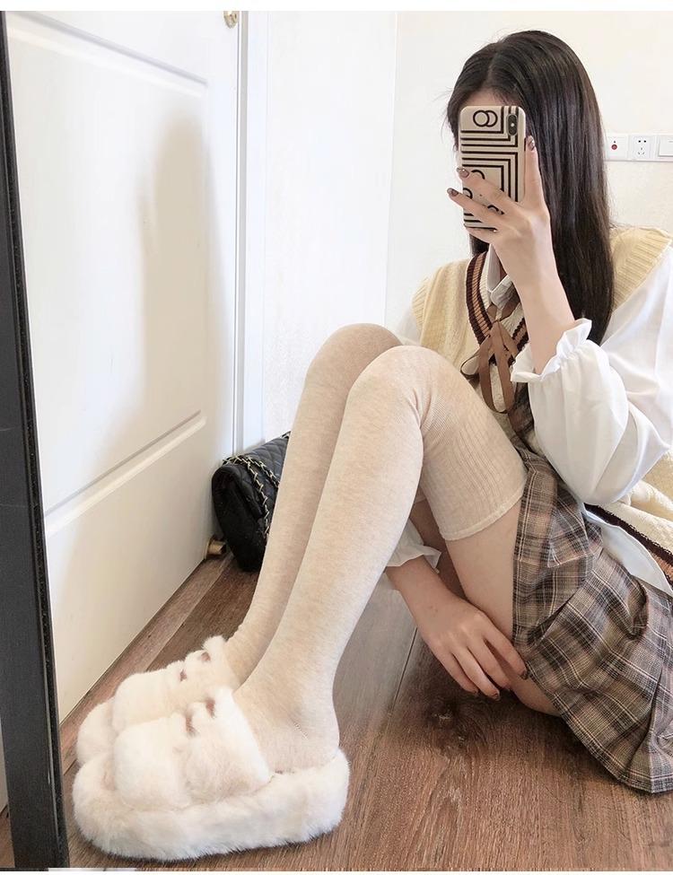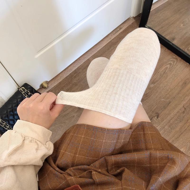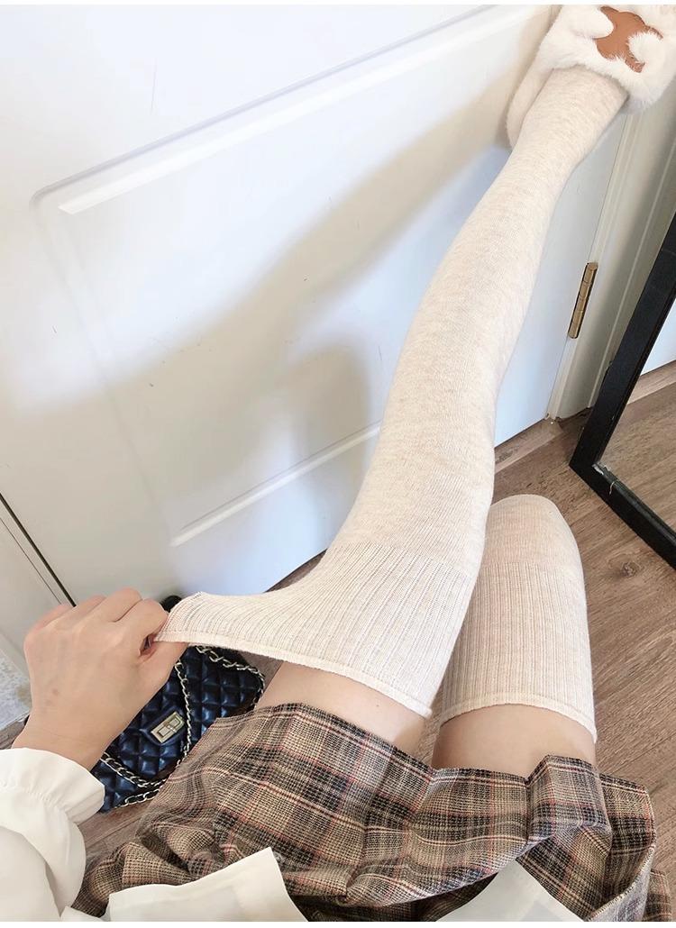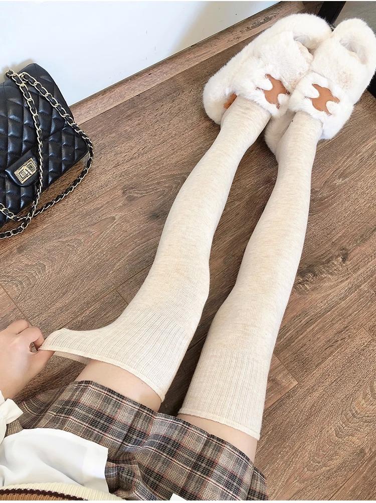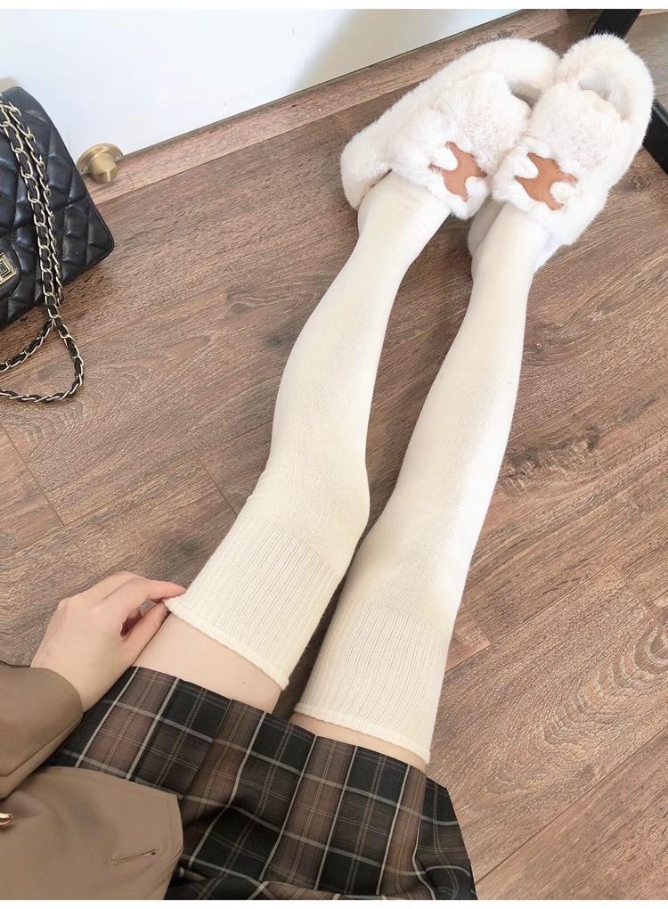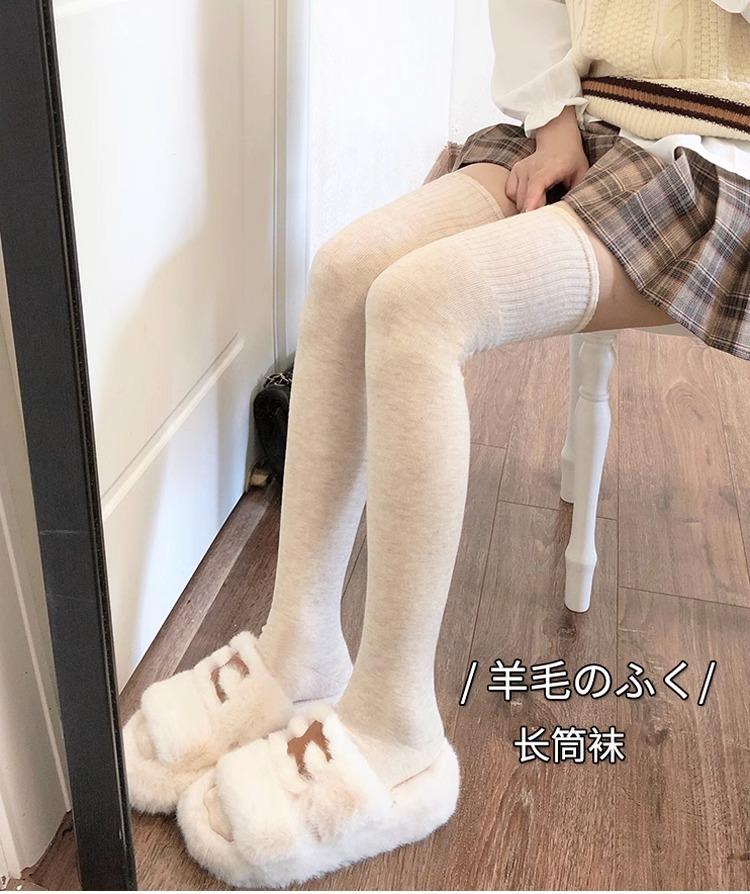 Calcetines hasta la rodilla de lana de otoño e invierno, cachemira gruesa cálida alargada de felpa, estilo japonés dulce universitario simple de color sólido
