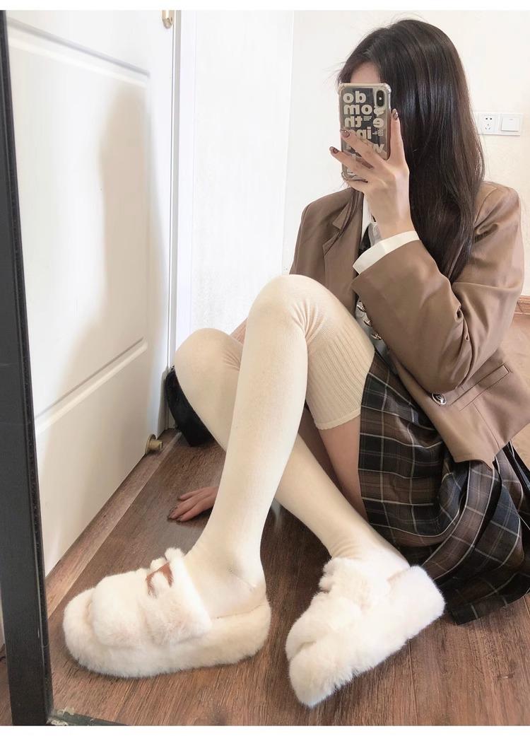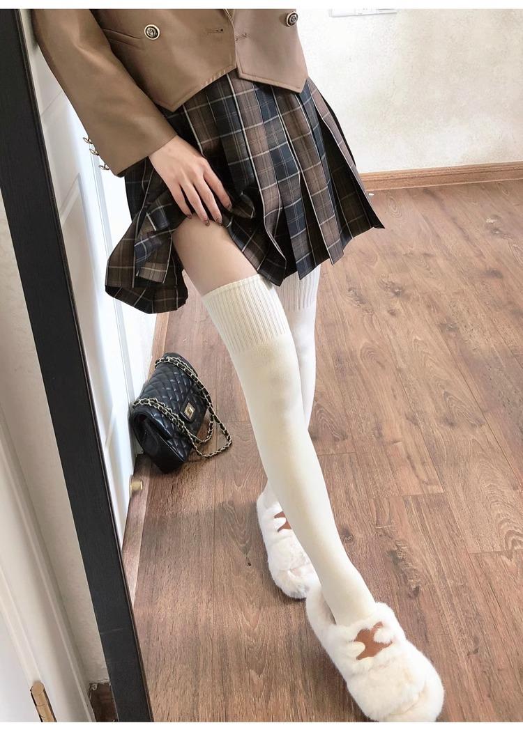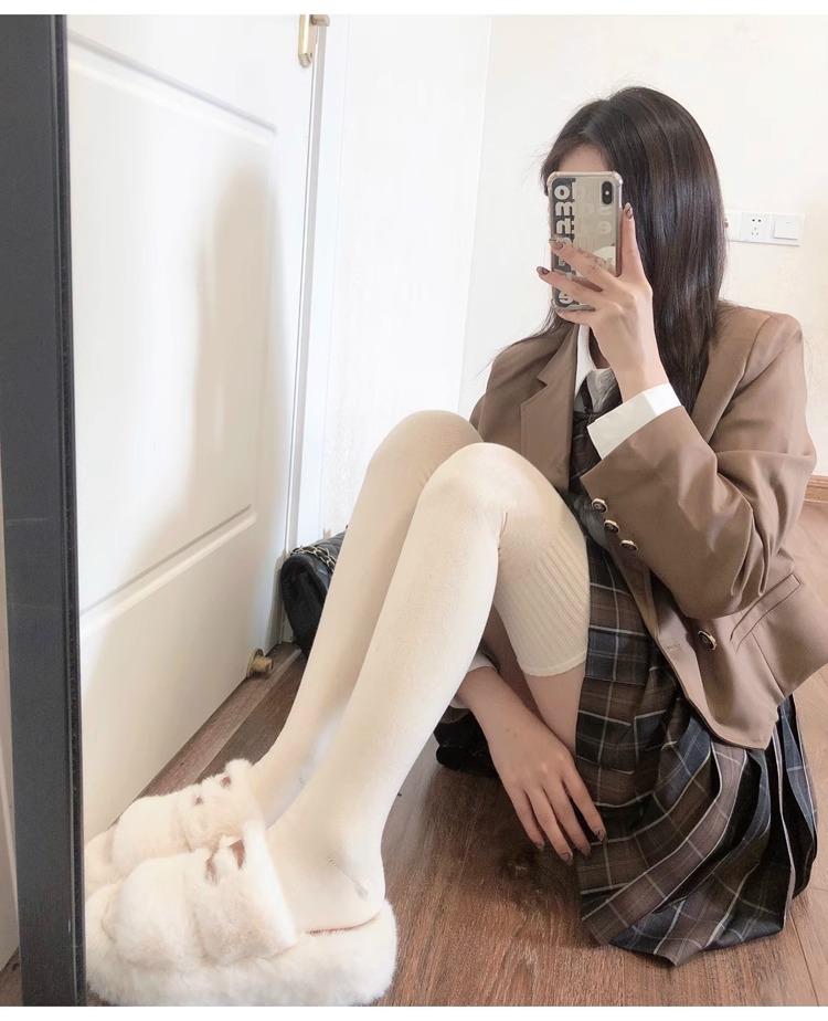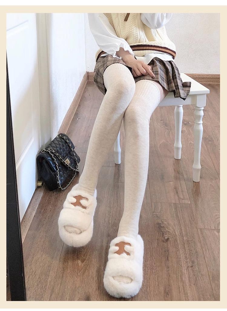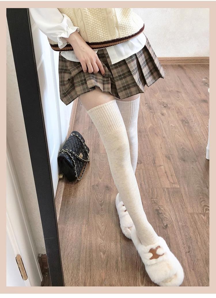 Calcetines hasta la rodilla de lana de otoño e invierno, cachemira gruesa cálida alargada de felpa, estilo japonés dulce universitario simple de color sólido