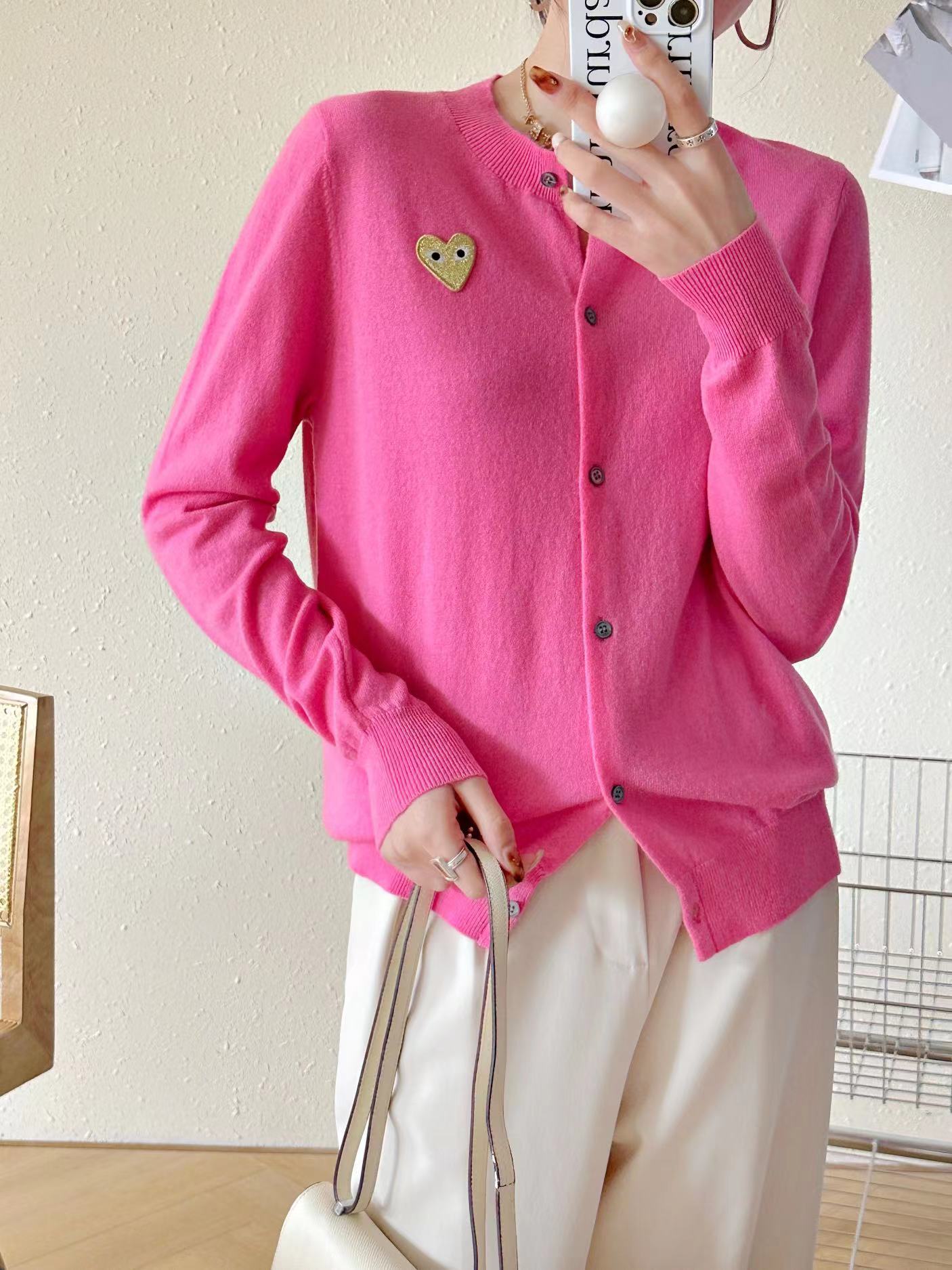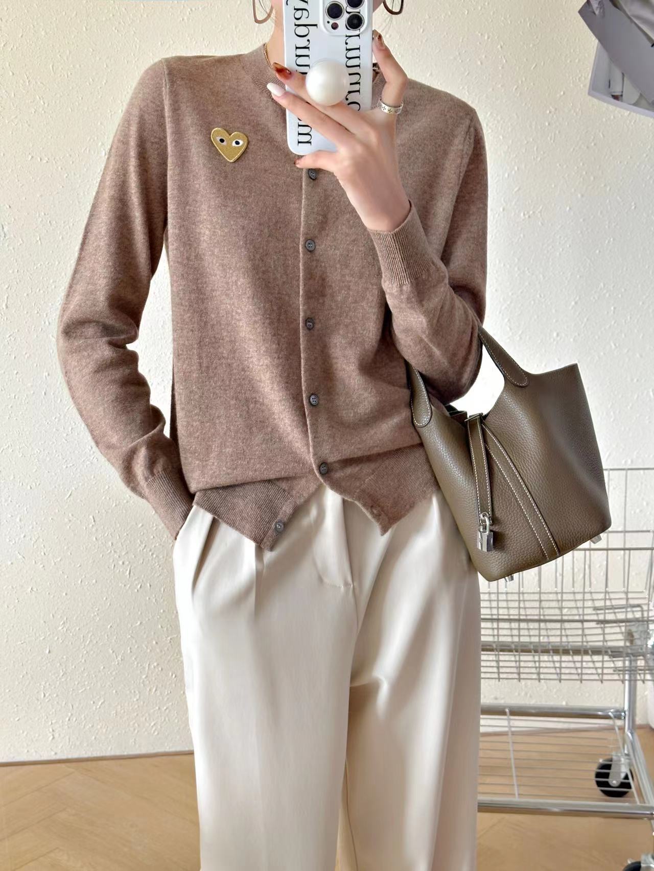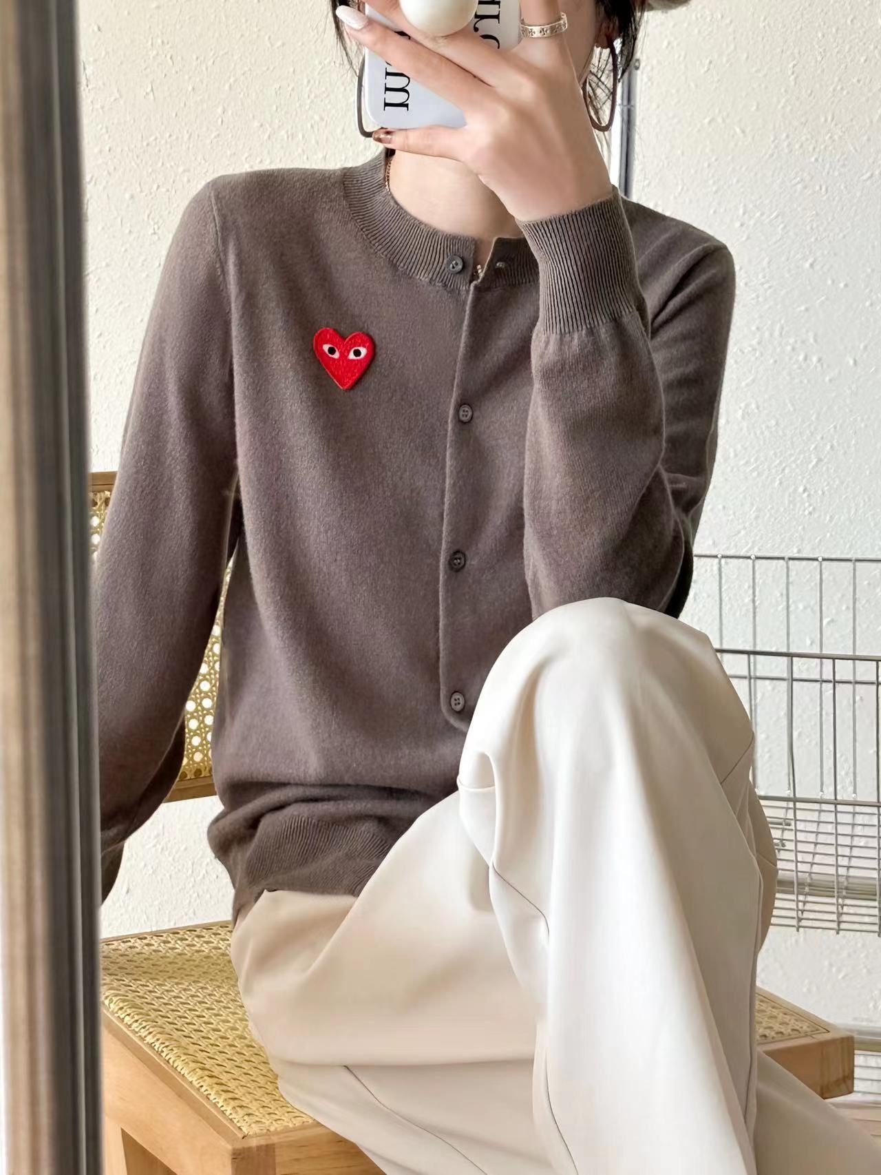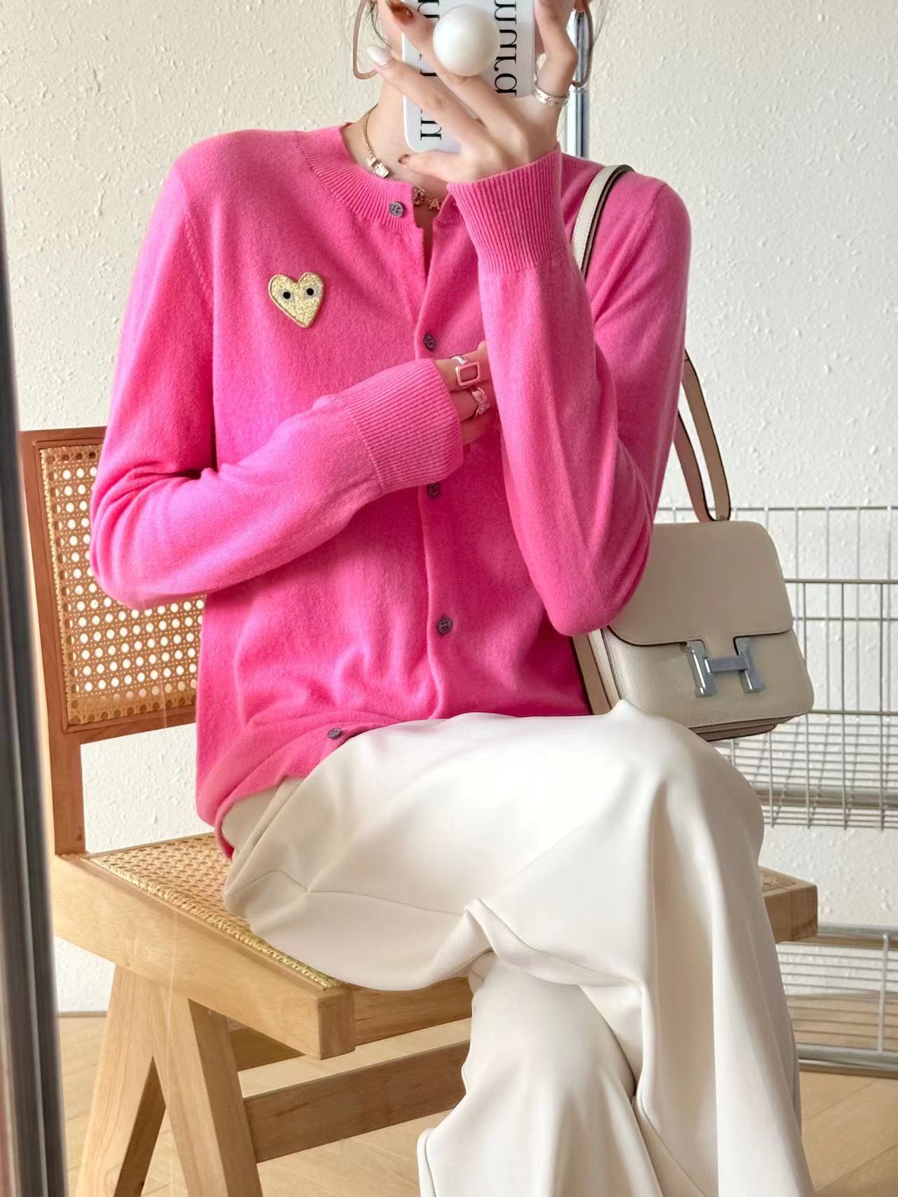 Cárdigan de Corazón de Otoño e Invierno para Mujer, Prendas de Punto de Lana Holgadas y Versátiles, Nuevas Prendas de Punto de Color Puro, Chaqueta Sencilla