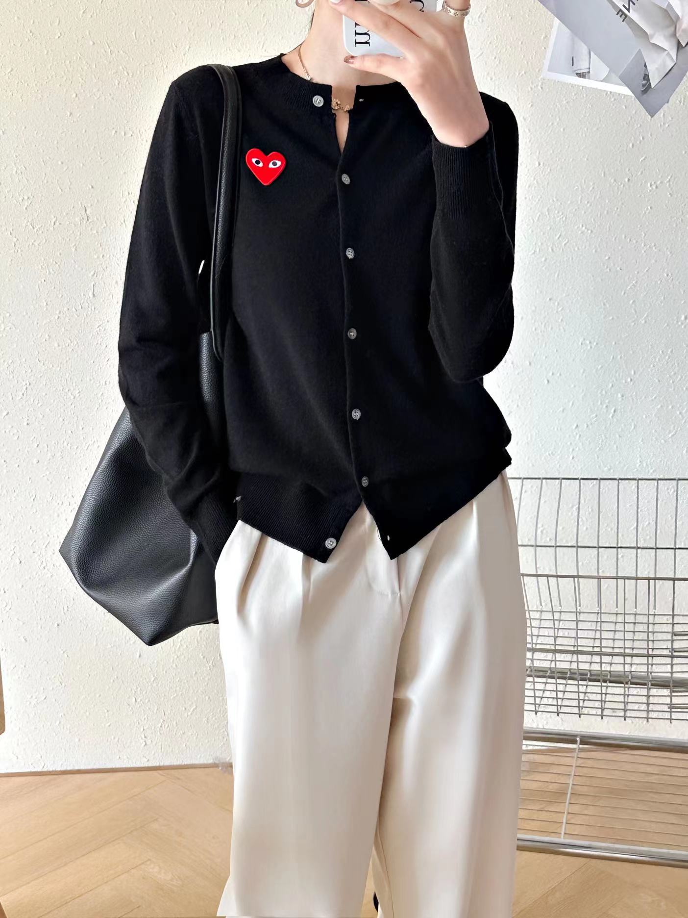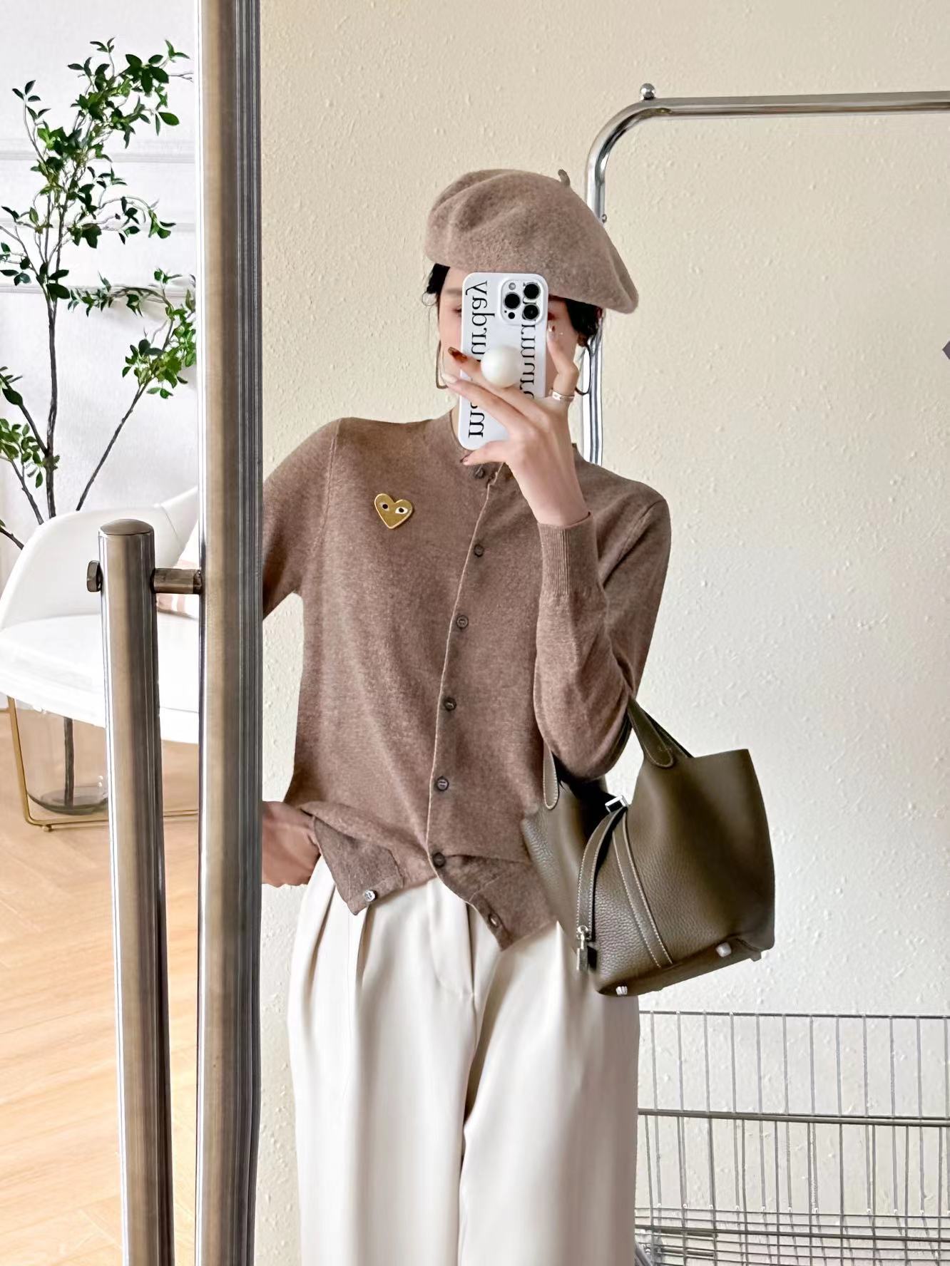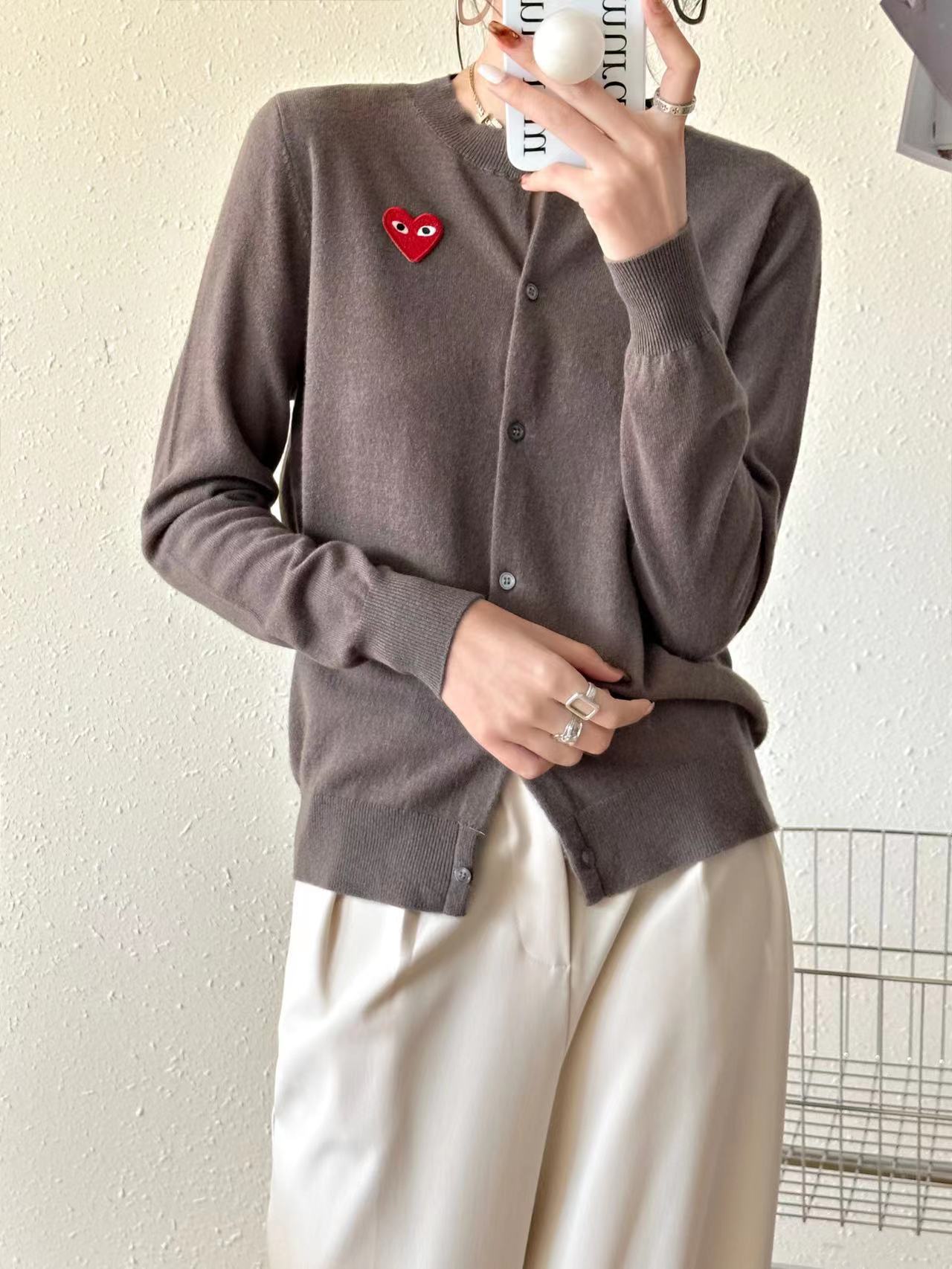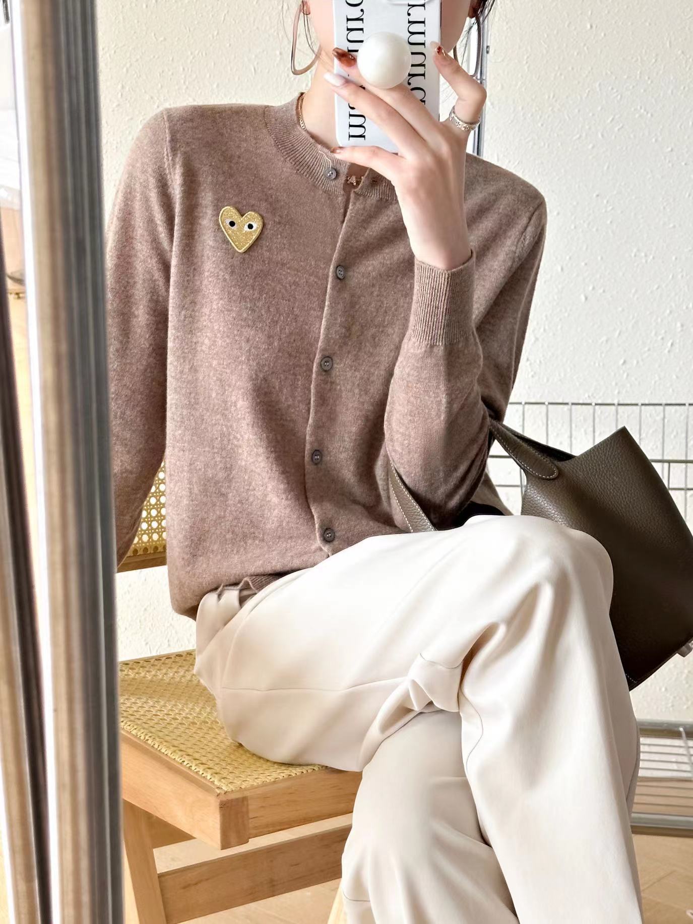 Cárdigan de Corazón de Otoño e Invierno para Mujer, Prendas de Punto de Lana Holgadas y Versátiles, Nuevas Prendas de Punto de Color Puro, Chaqueta Sencilla