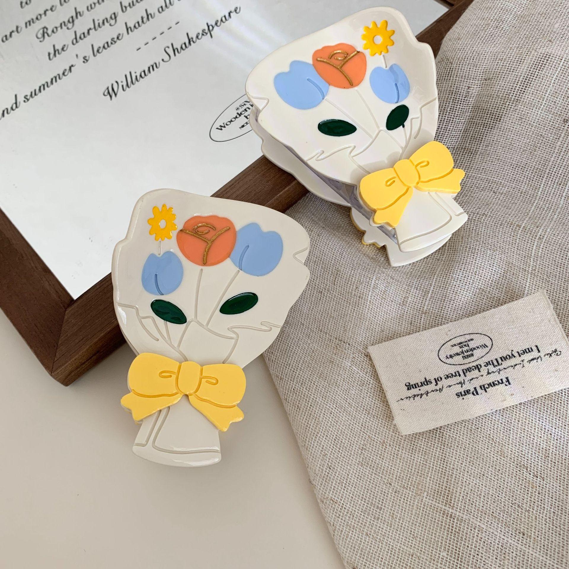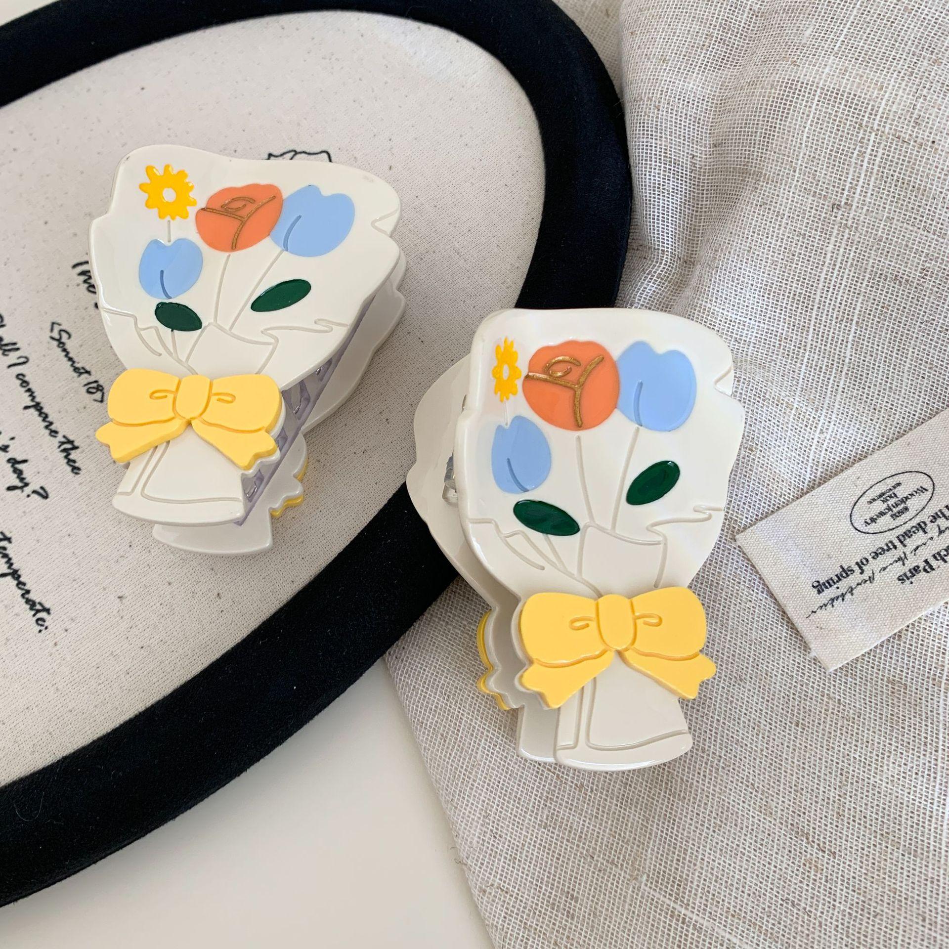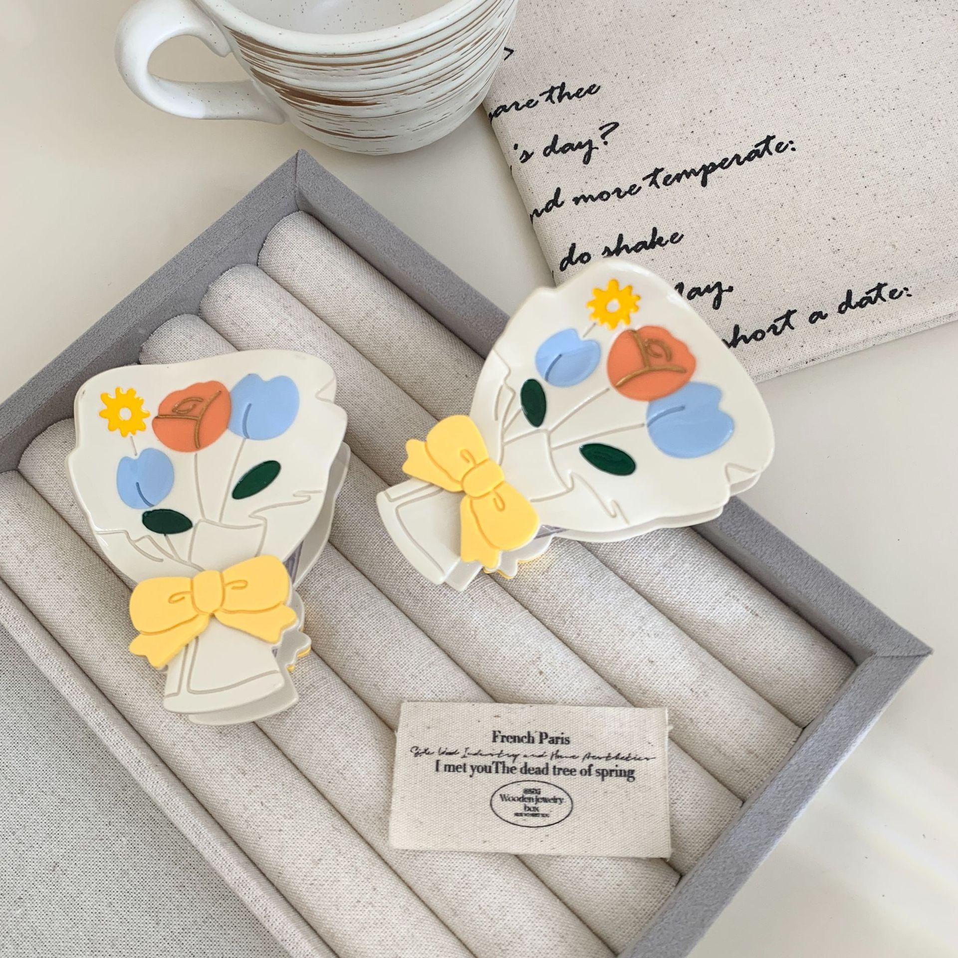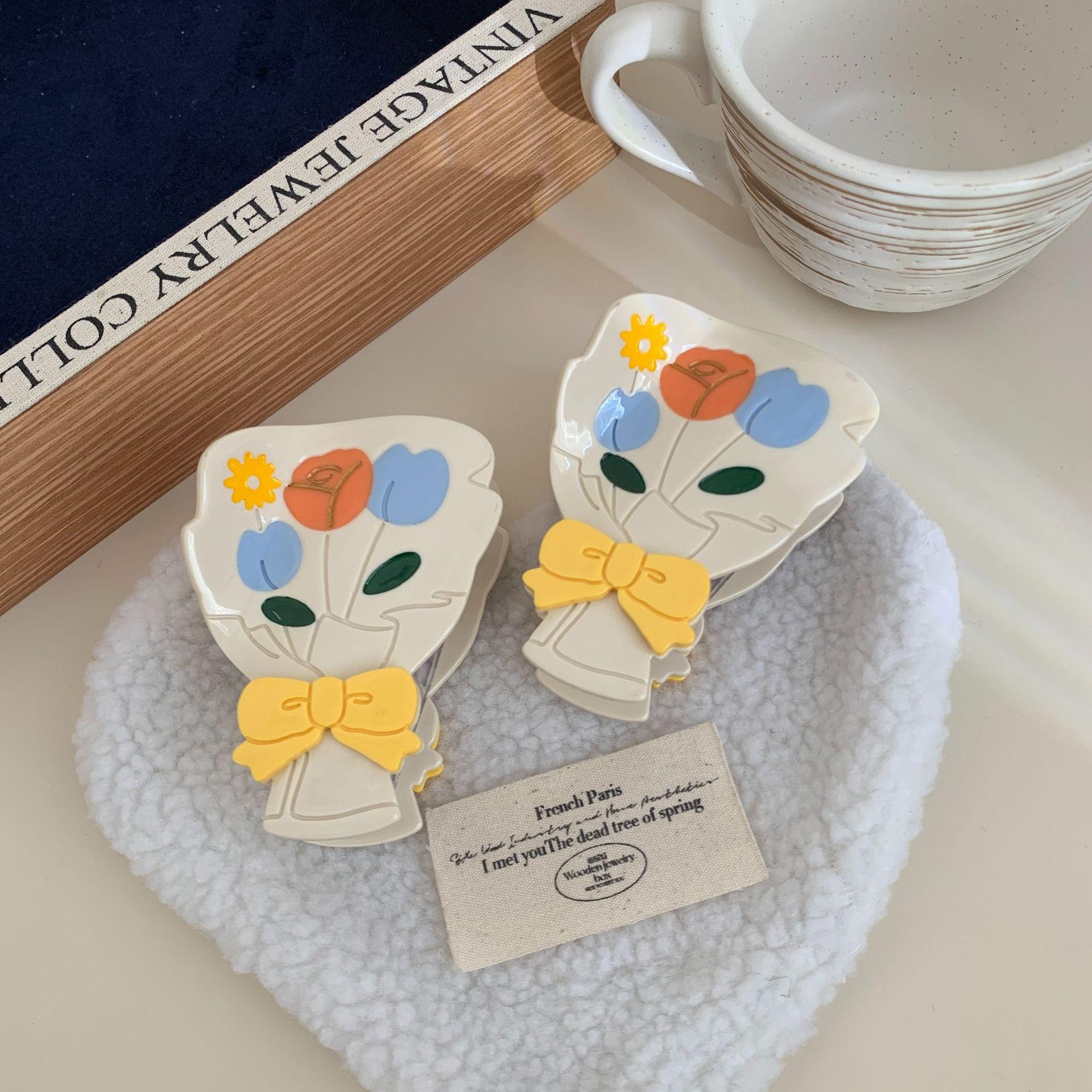 Fresco y Dulce Clip de Agarre de Flor Simple Lazo Color Té con Leche Ácido Acético Agarre para Cabello Trasero Horquilla Nuevos Accesorios para el Cabello