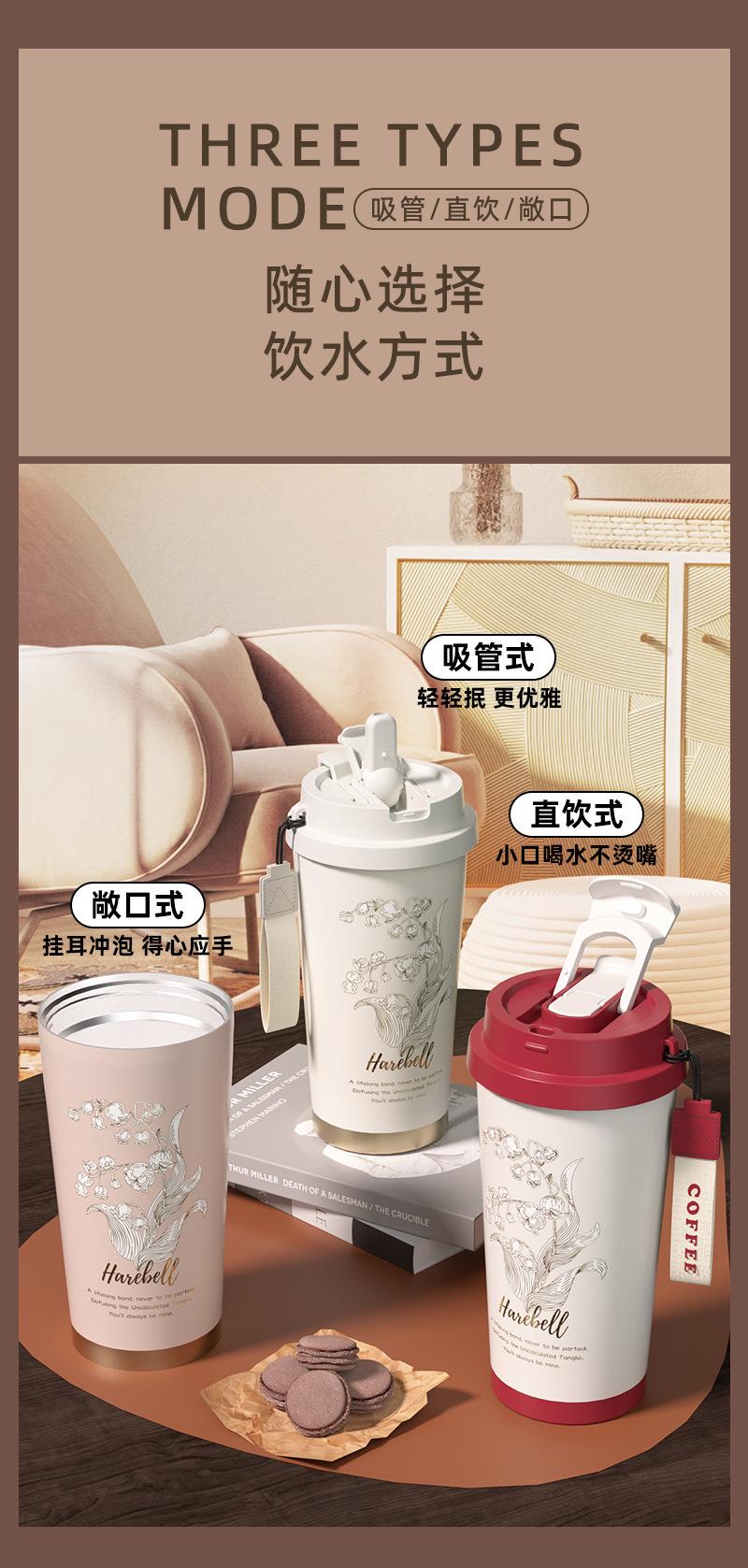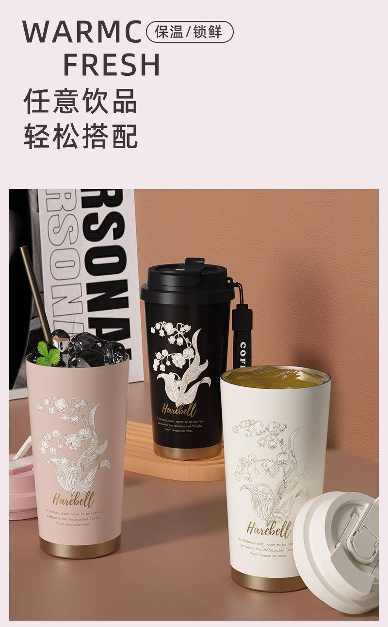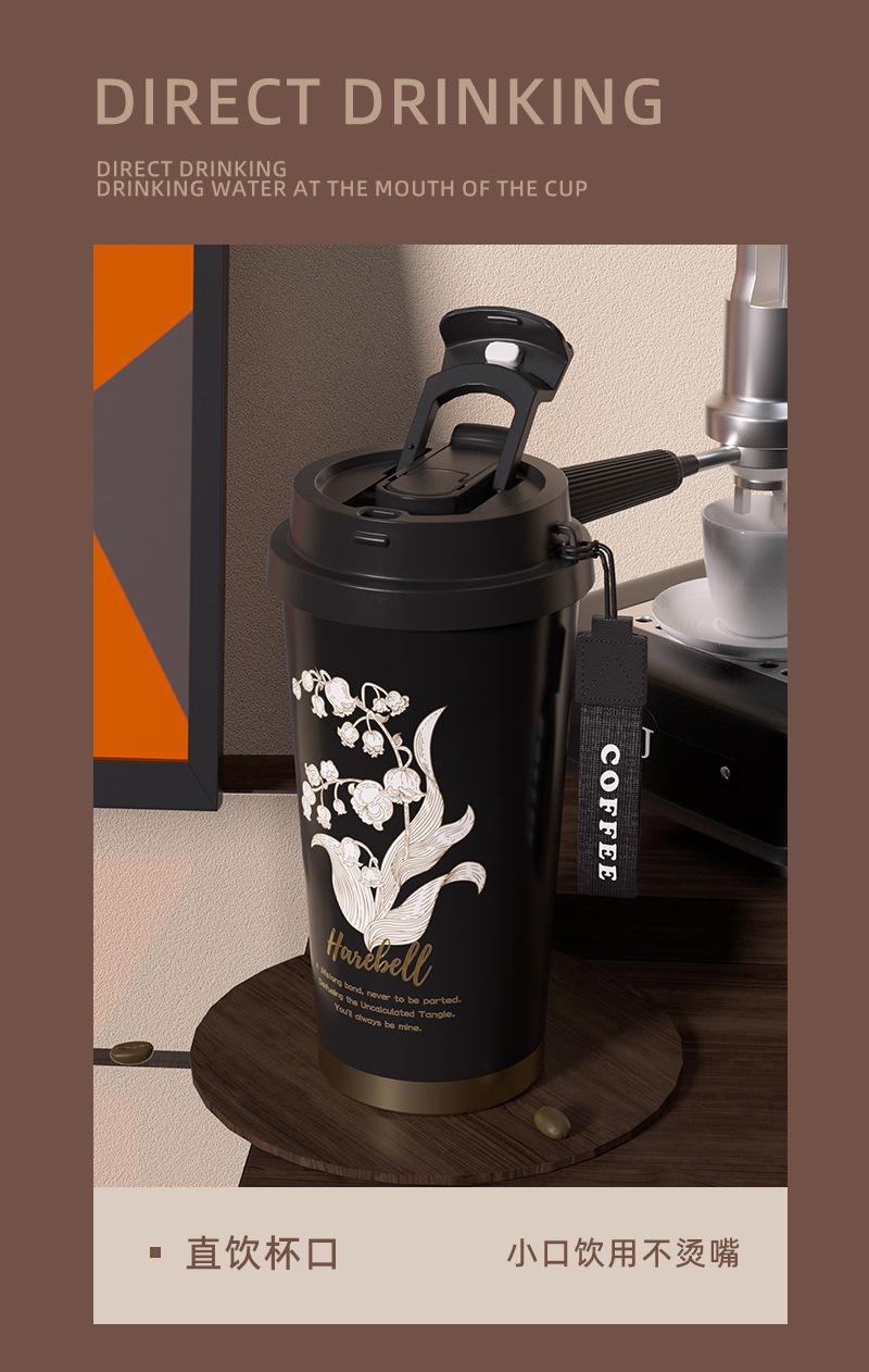 Vaso de Agua de Flores Linglan Vaso Termo Portátil de Lujo Ligero para Niñas Vaso para Café de Doble Bebida de Alto Valor Regalo para Coche Vaso de Agua con Pajita