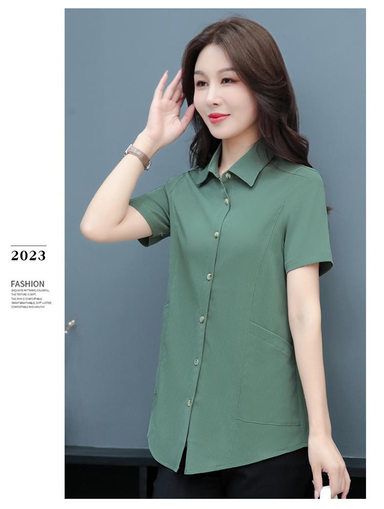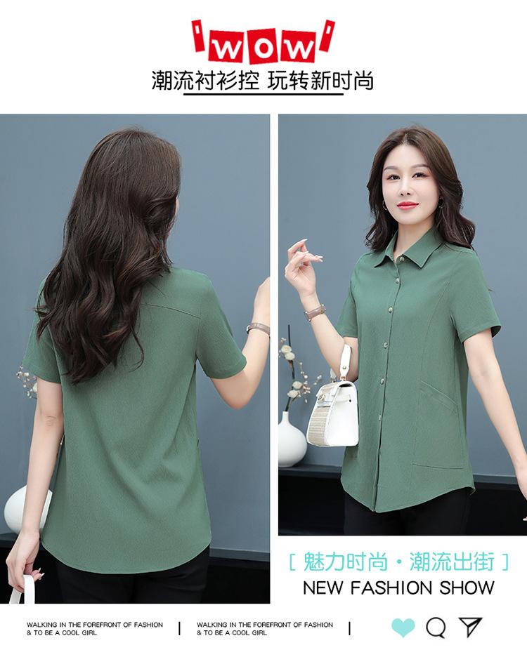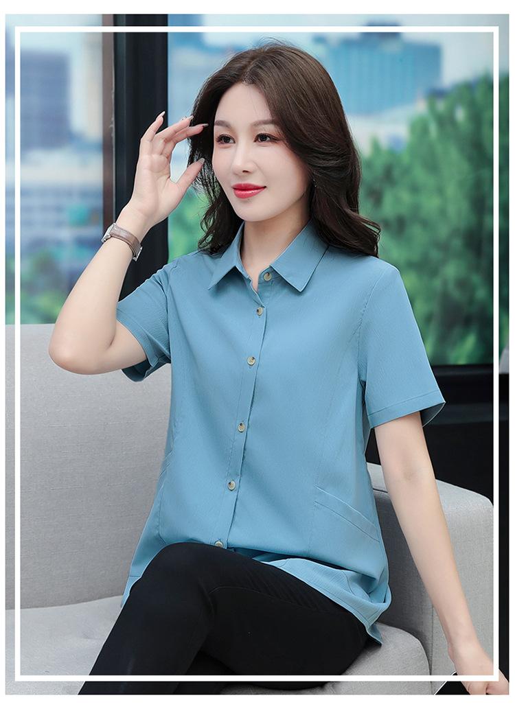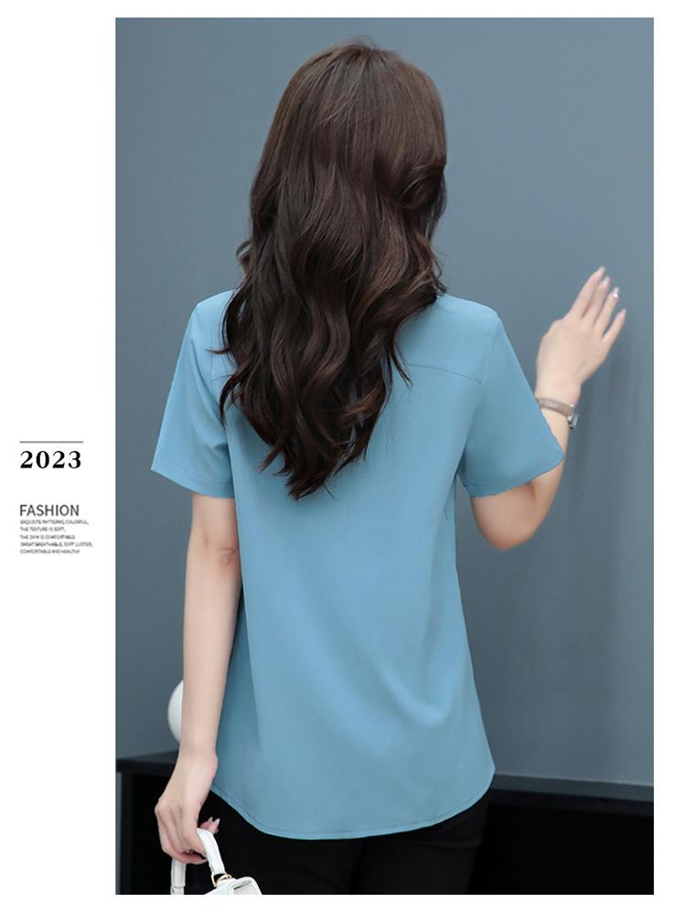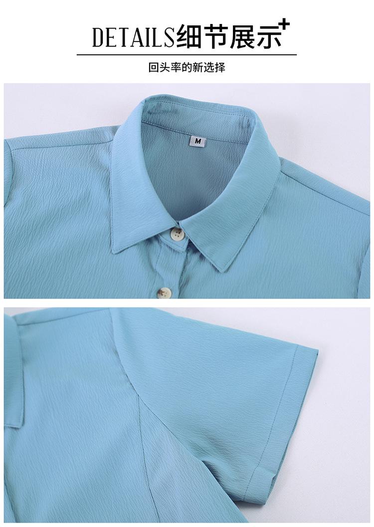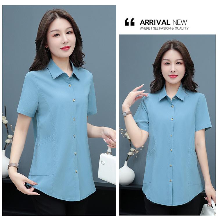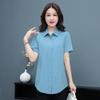 Camisa de gasa de verano para mujer, camisa de manga corta a la moda, adelgazante, de talla grande, camisa azul con parte inferior, blusa holgada