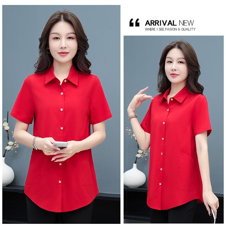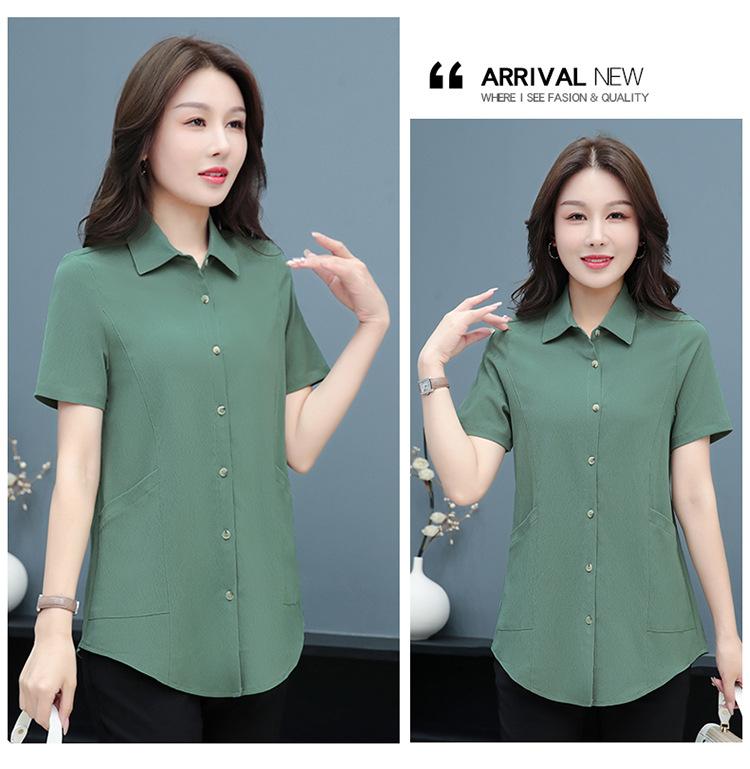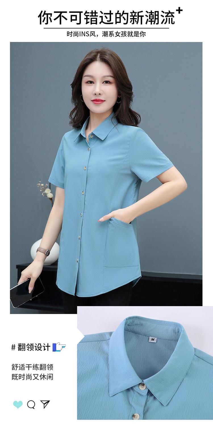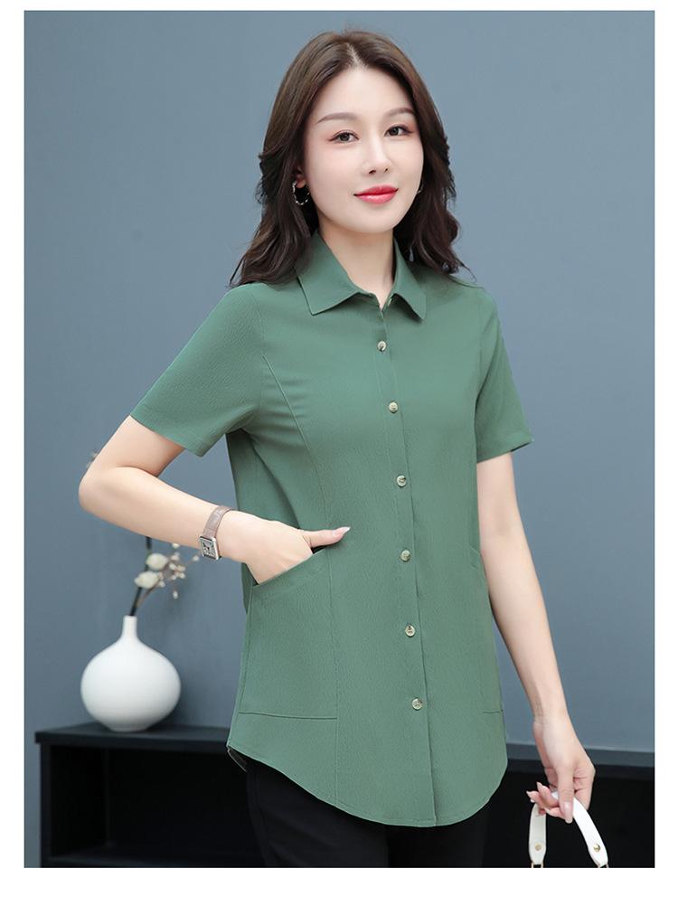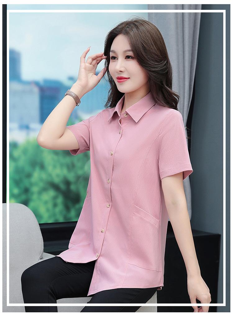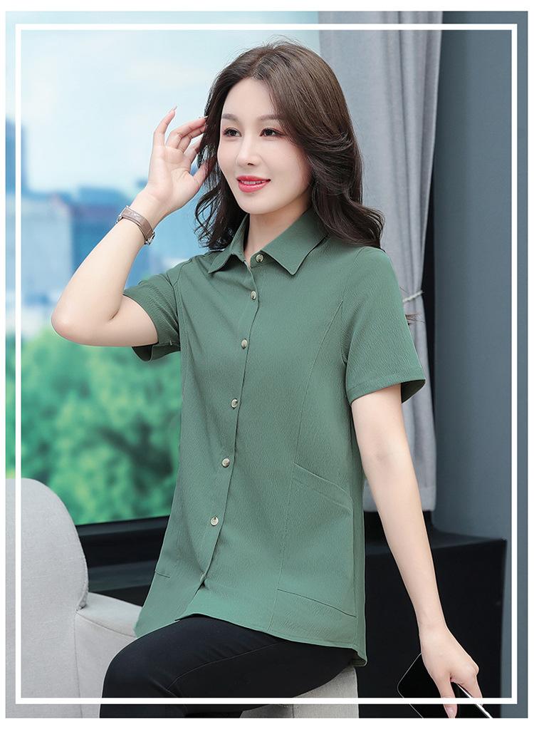 Camisa de gasa de verano para mujer, camisa de manga corta a la moda, adelgazante, de talla grande, camisa azul con parte inferior, blusa holgada