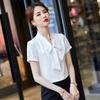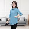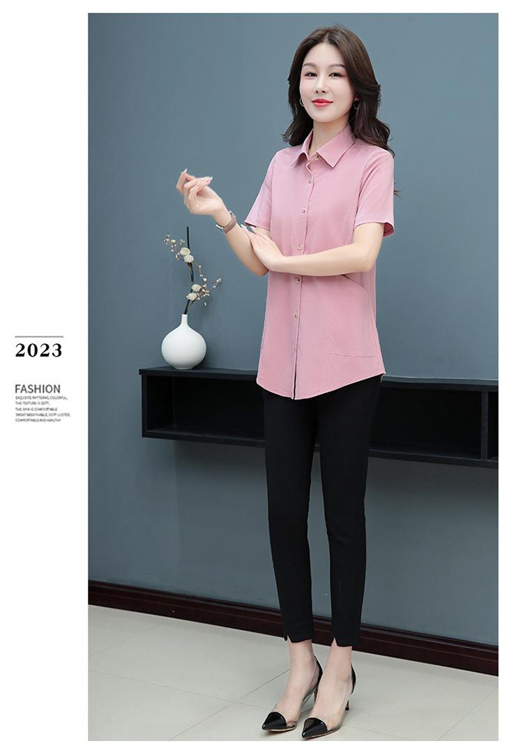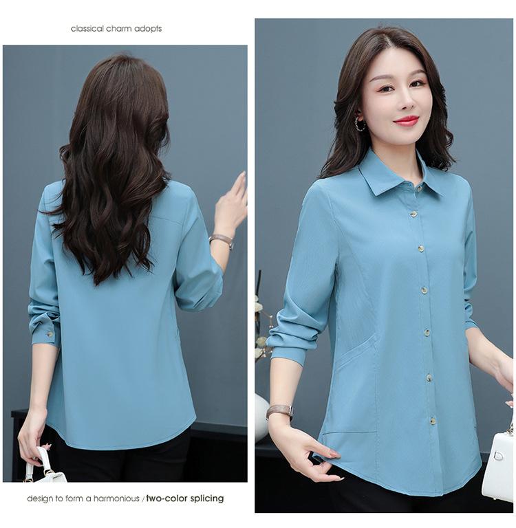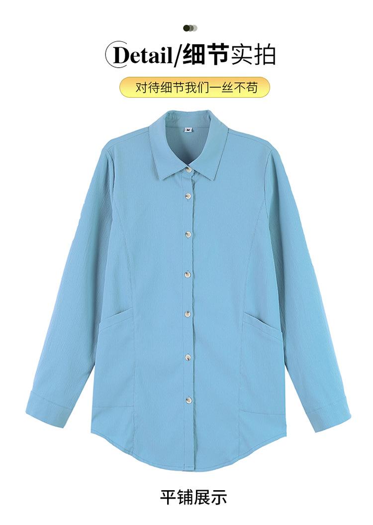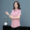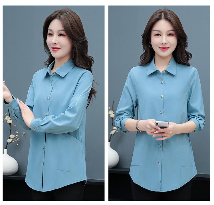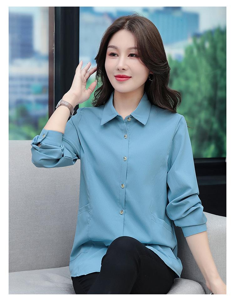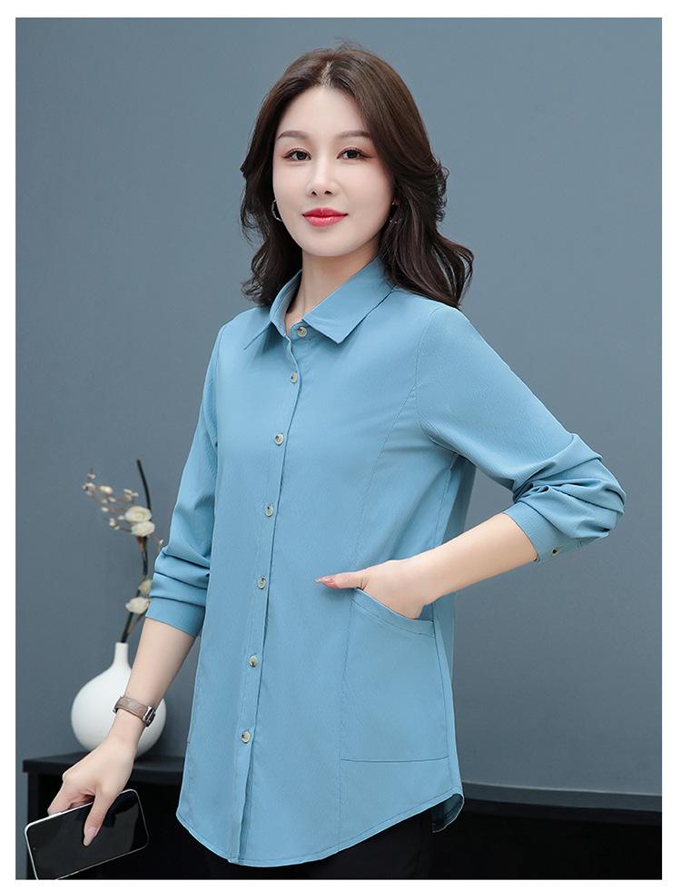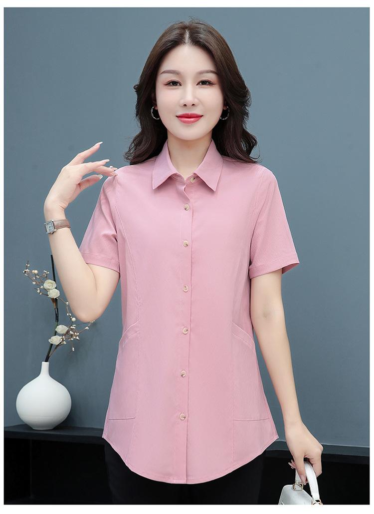 Camisa de gasa de verano para mujer, camisa de manga corta a la moda, adelgazante, de talla grande, camisa azul con parte inferior, blusa holgada