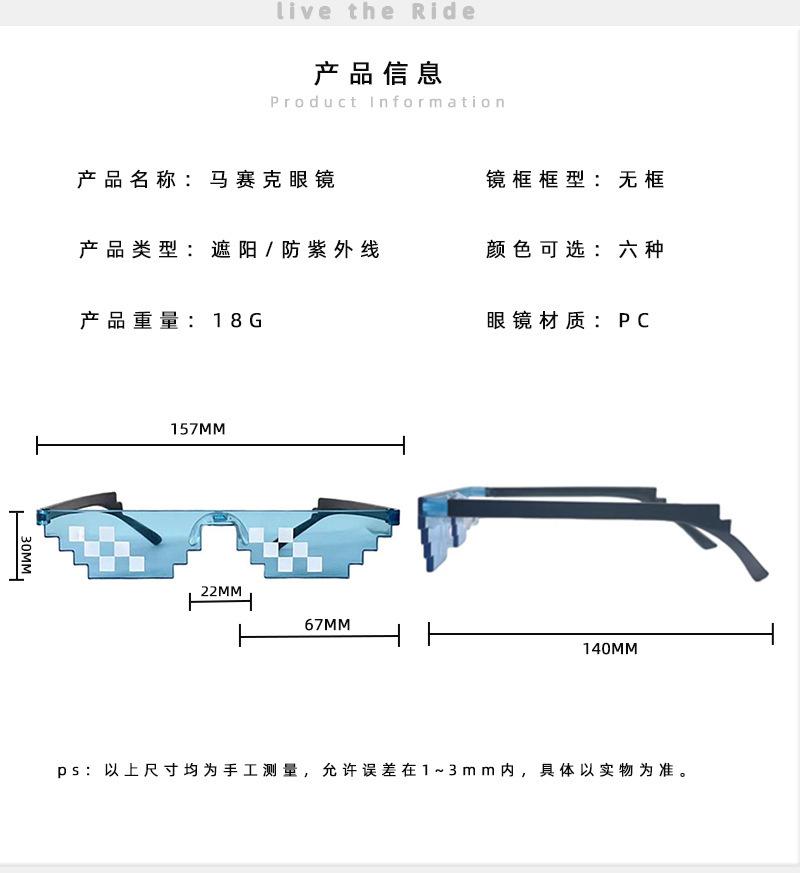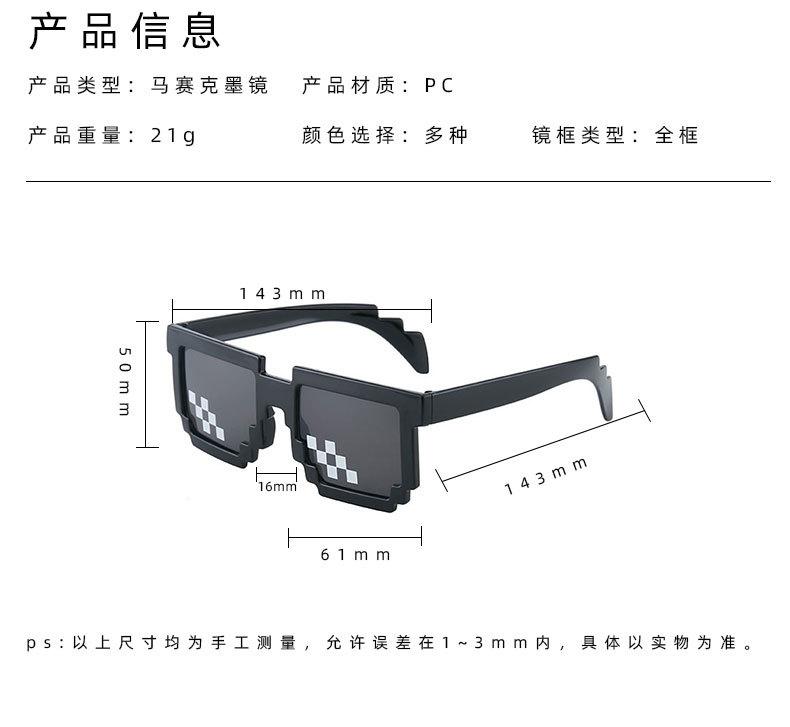 Gafas de mosaico cuadradas de montura grande populares en Tiktok, gafas de sol bidimensionales, atuendo divertido, gafas de sol Magic Pixel