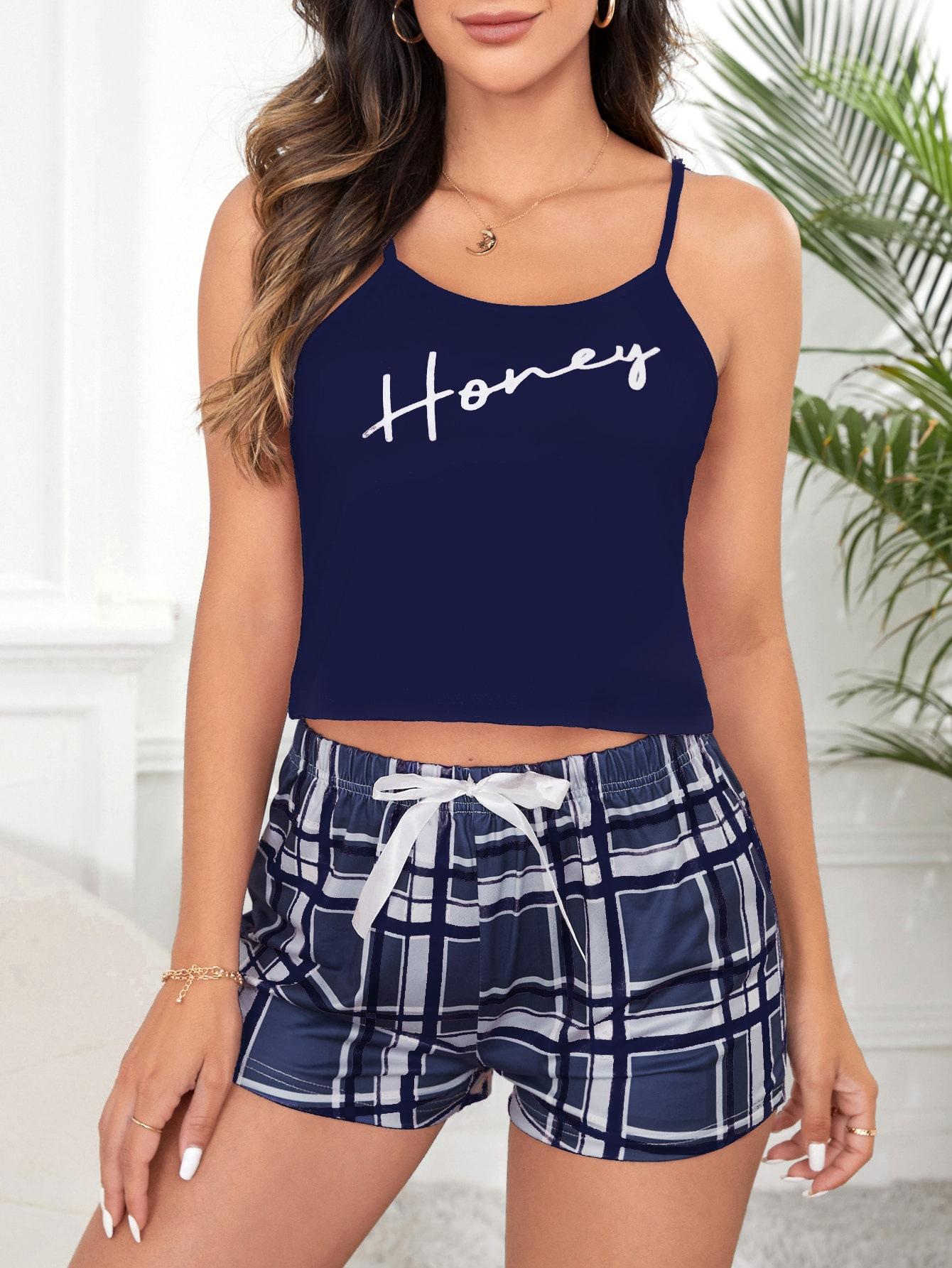 Pijama de comercio exterior transfronterizo de AliExpress para mujer, traje de dos piezas con tirantes y lazo, para verano, Europa y América