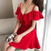 Falda sexy con escote en V profundo y tirantes, elegante y adelgazante, sin espalda, para discoteca, falda para chica sexy de discoteca