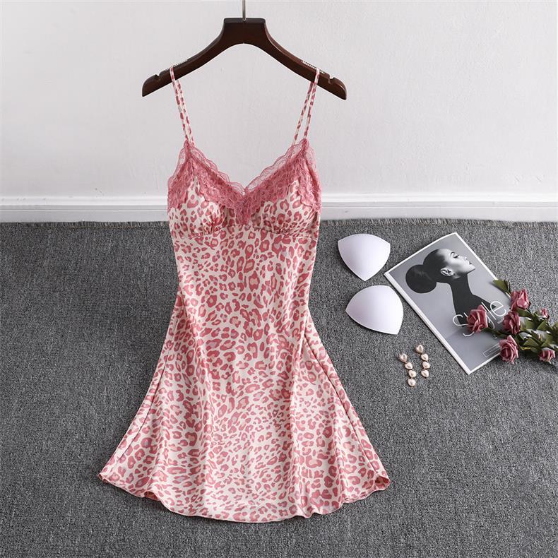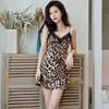 Camisón sexy para mujer, tentación, moda de verano, encaje, hueco, adelgazante, hermoso pijama con tirantes en la espalda, falda con estampado de leopardo