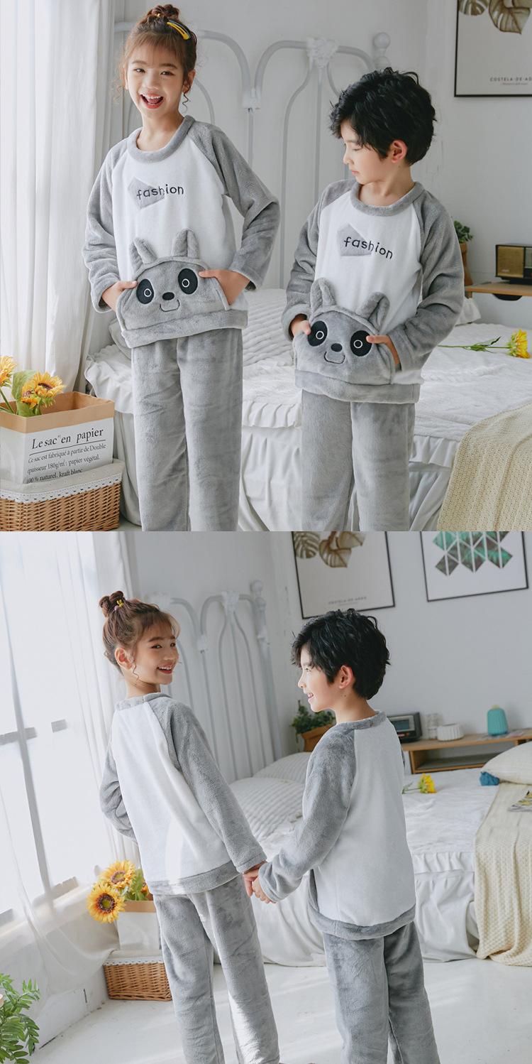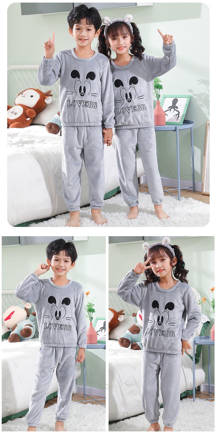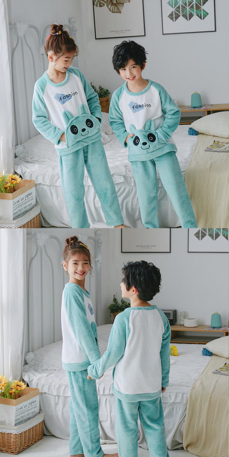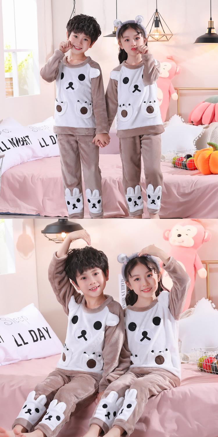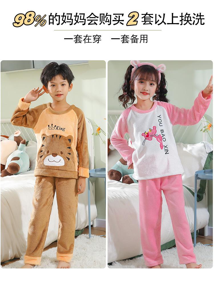 Pijamas de franela para niños, otoño e invierno, de forro polar coral grueso, para niñas y niños.