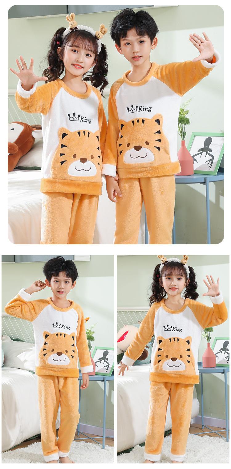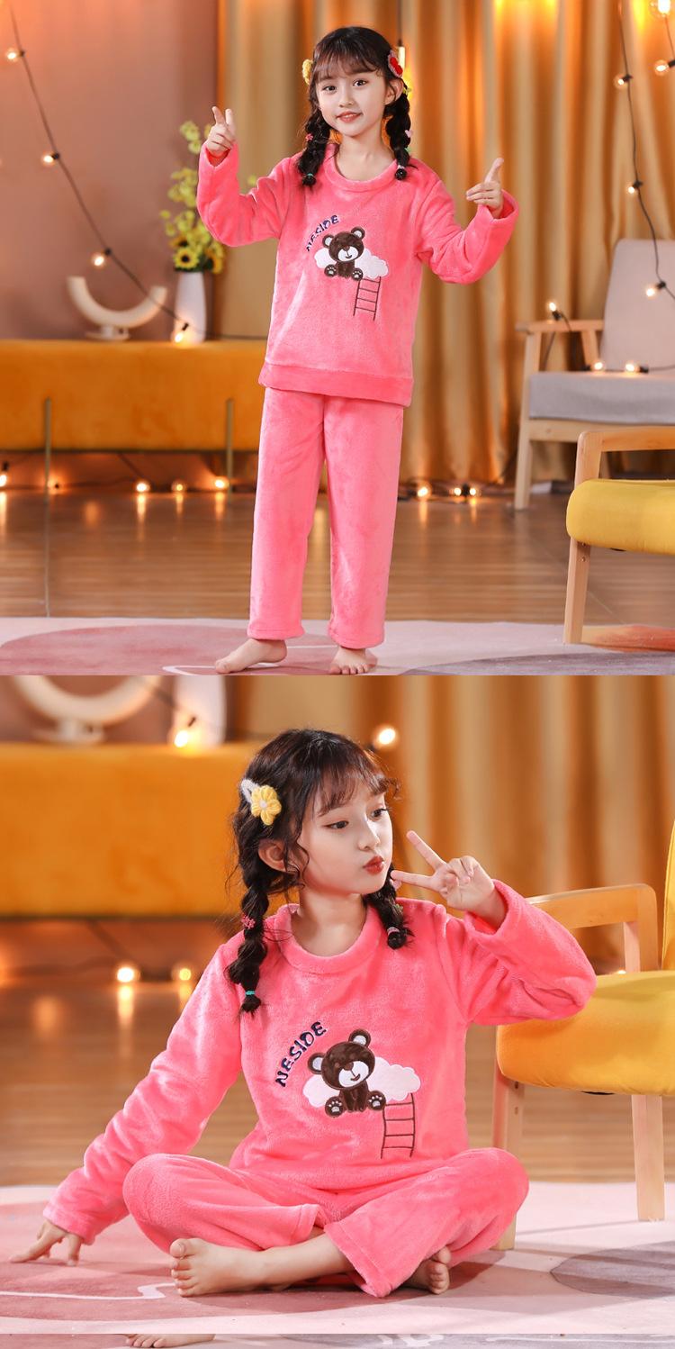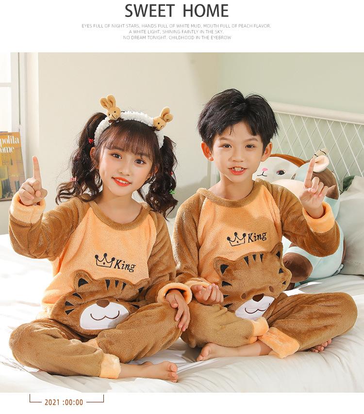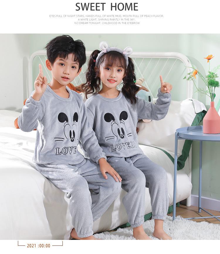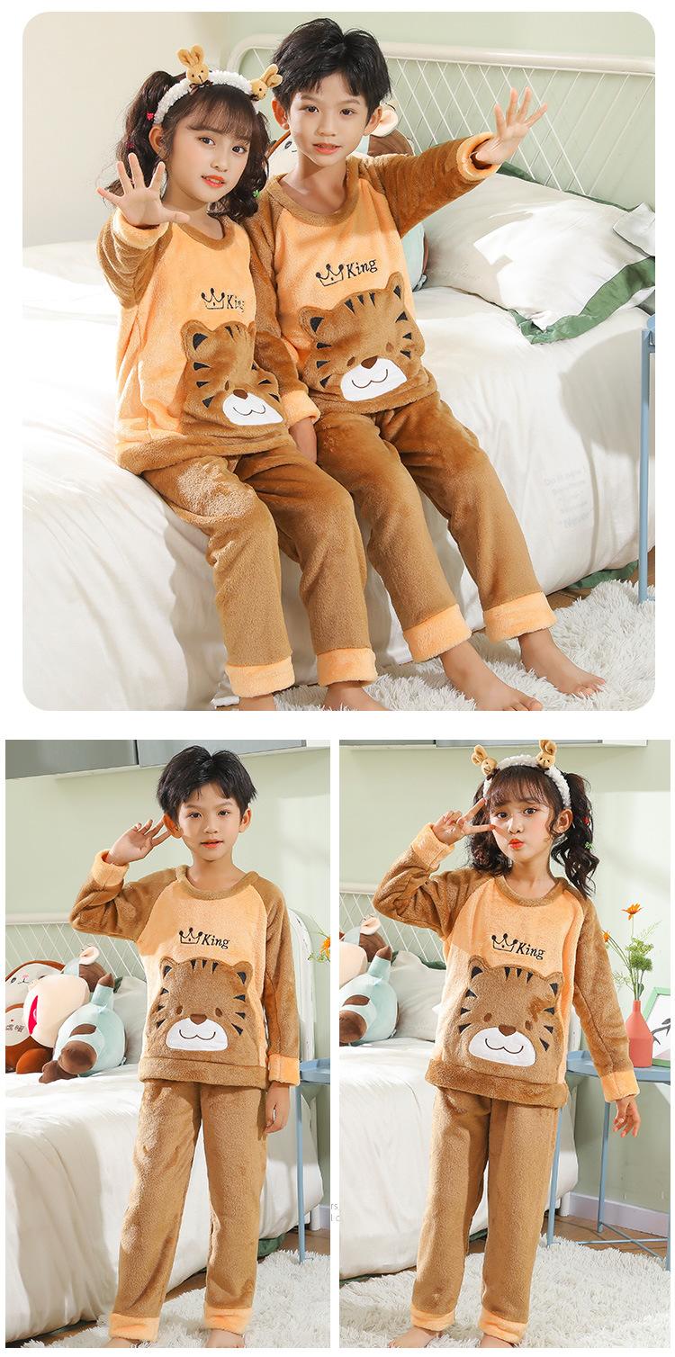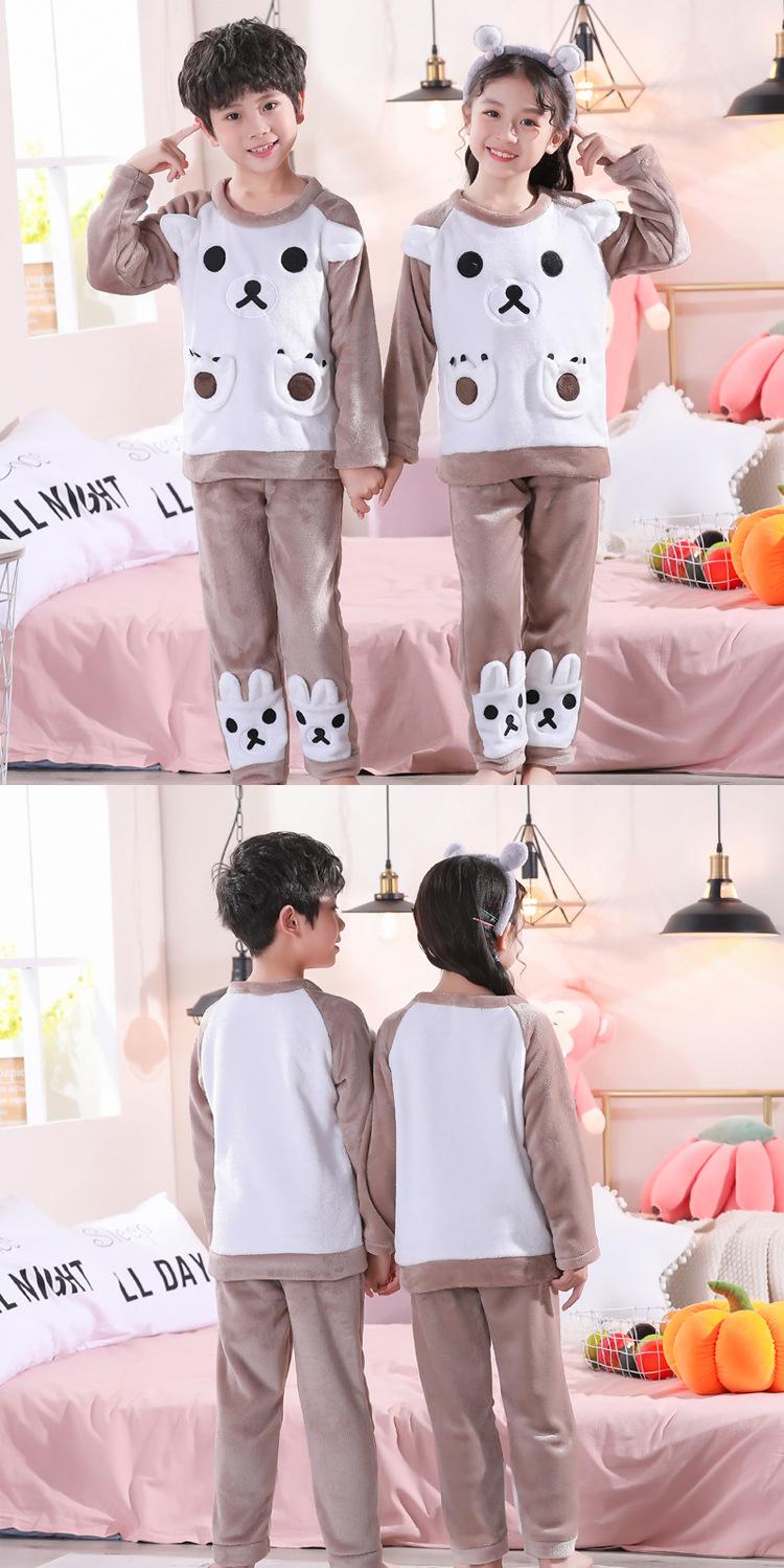 Pijamas de franela para niños, otoño e invierno, de forro polar coral grueso, para niñas y niños.