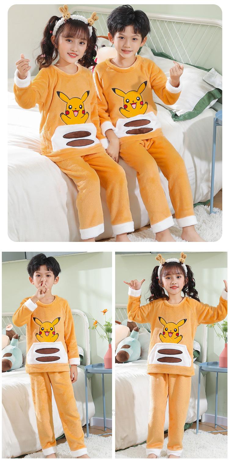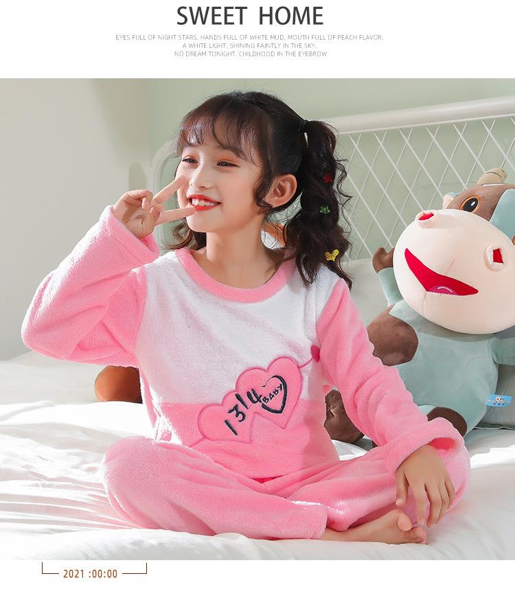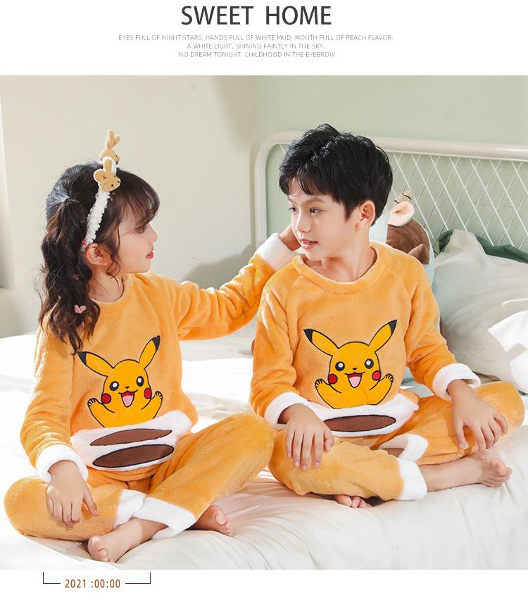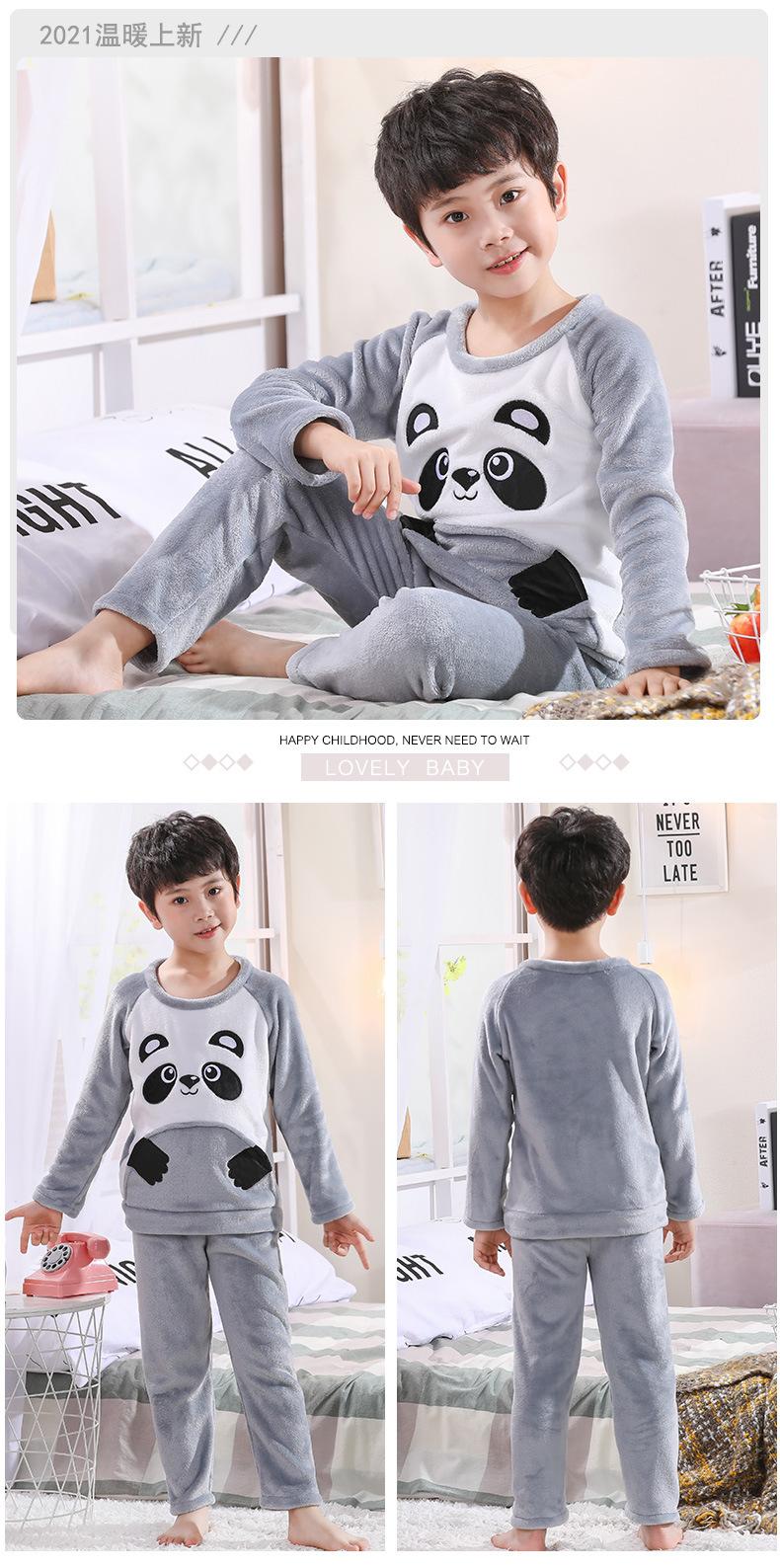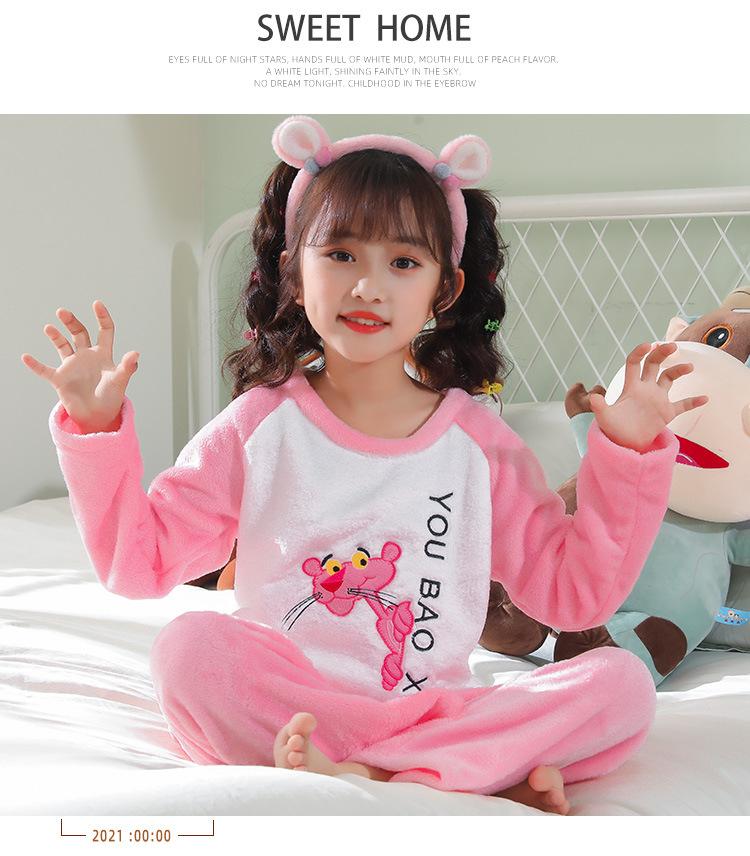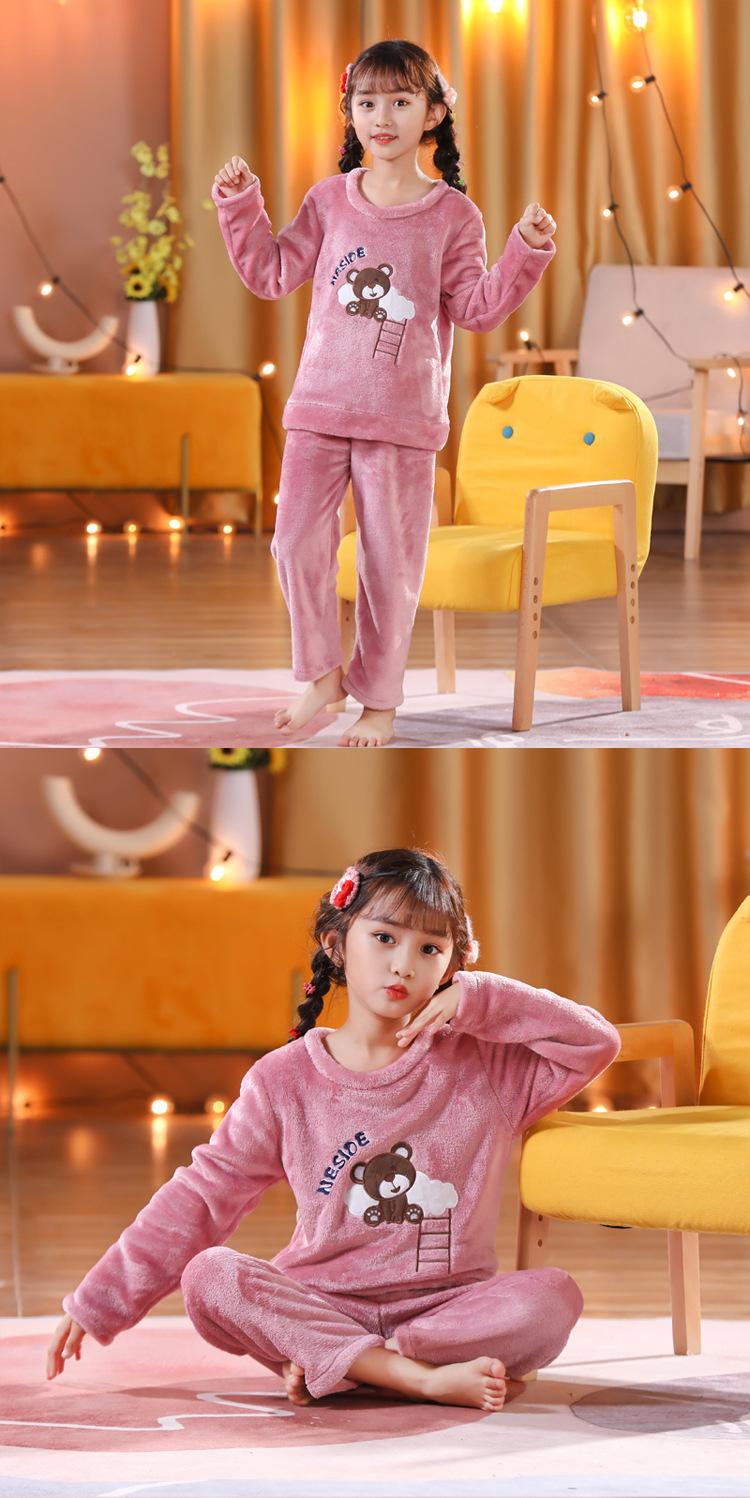 Pijamas de franela para niños, otoño e invierno, de forro polar coral grueso, para niñas y niños.