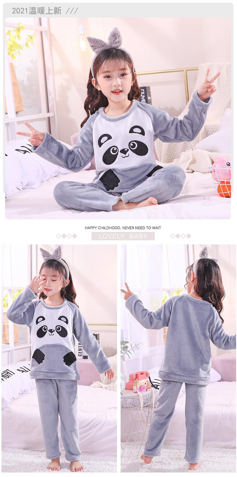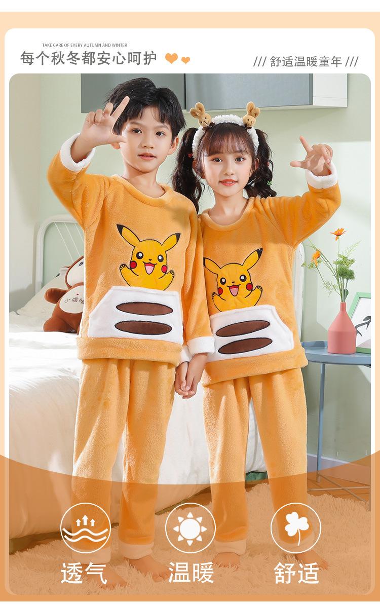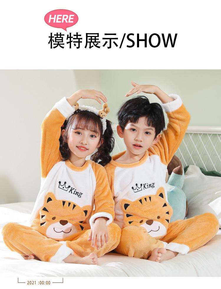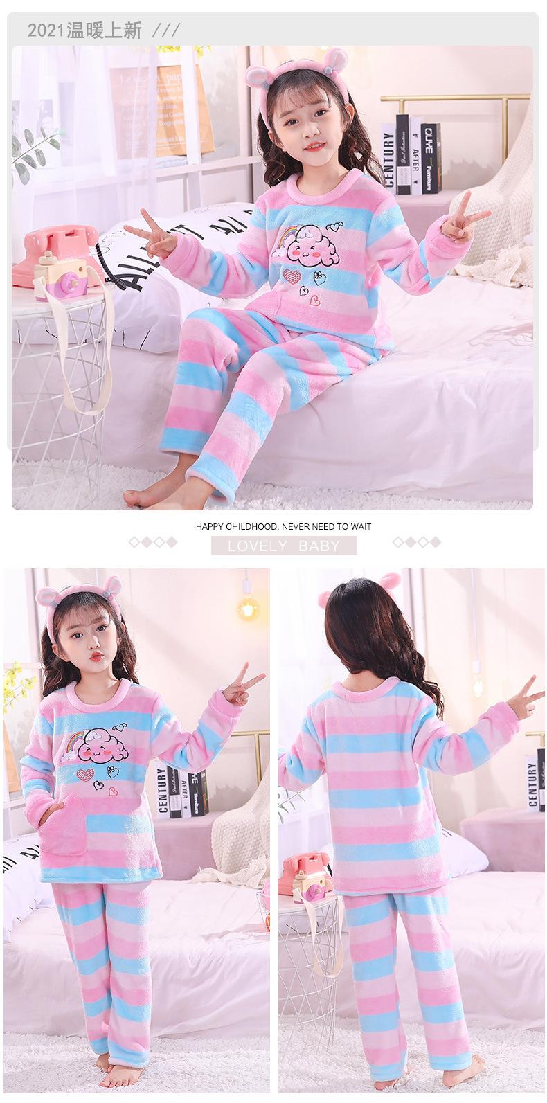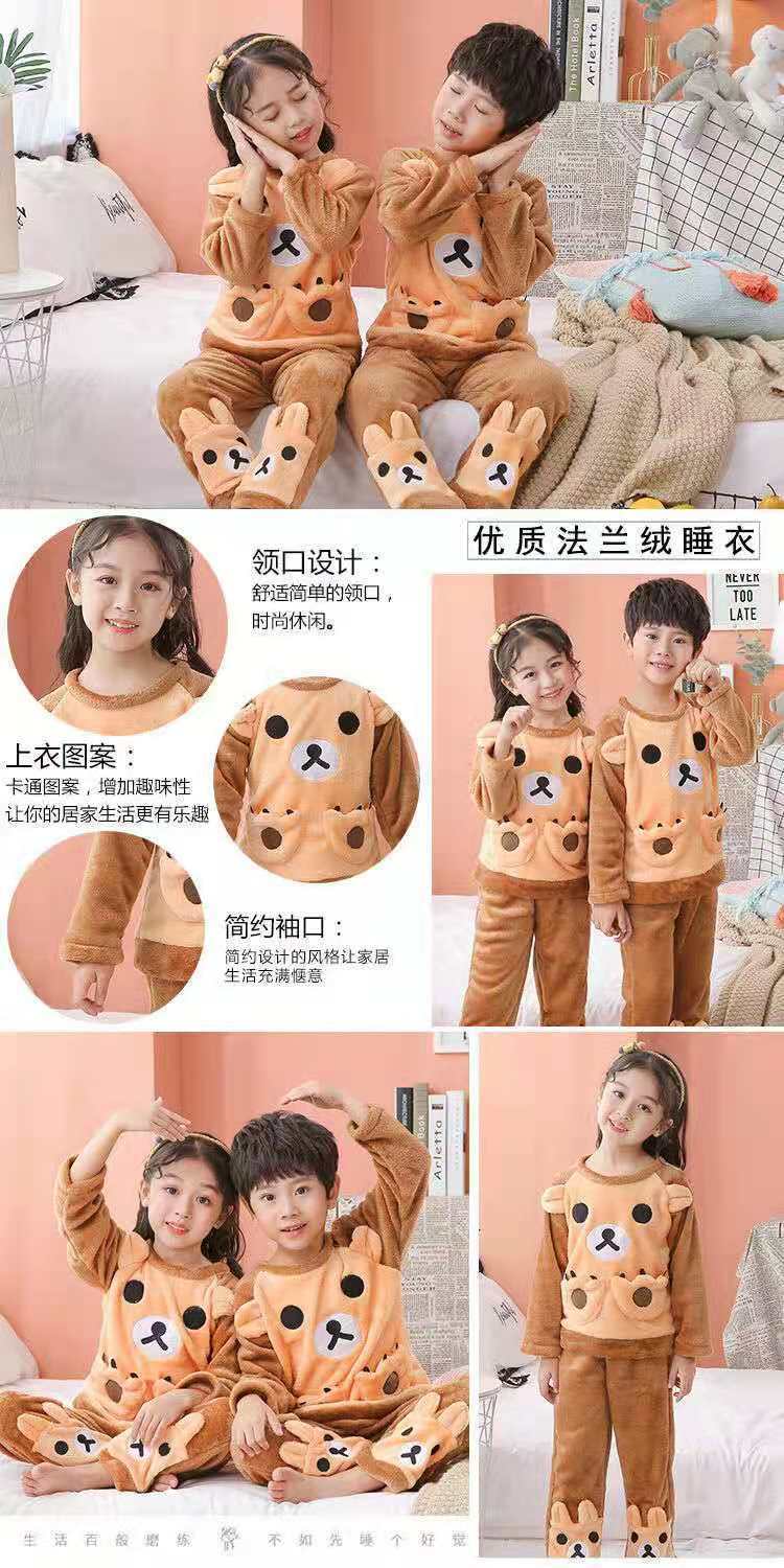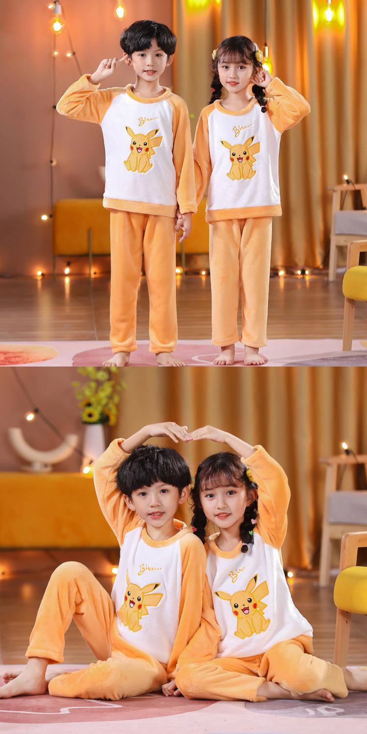 Pijamas de franela para niños, otoño e invierno, de forro polar coral grueso, para niñas y niños.